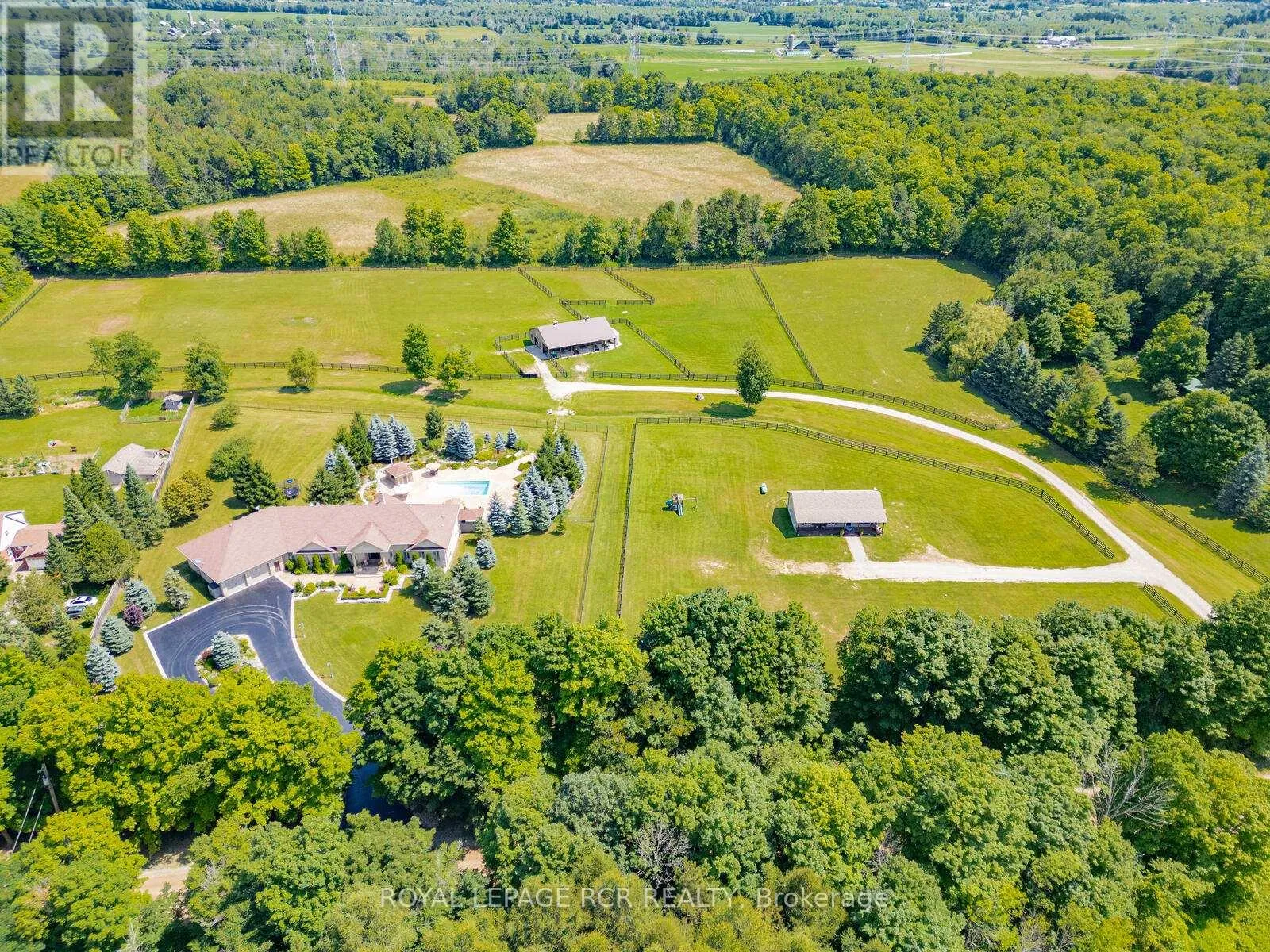 Cross Streets: 4th Line & Erin/Halton Townline. ** Directions: North of Erin/Halton Townline. Welcome to this stunning multi-generational country property situated on 44 acres near Acton. Enter the main house through automated electronic front entry gates. Features of the main house include nearly 5000 sq. ft. of luxury living. Maple kitchen w/ granite countertop and backsplash overlooking a large eat-in area with walk-out to large deck overlooking the pool and backyard. Thermador and Miele s/s appliances. Separate and formal open-concept dining room. Open-concept living room w/ cathedral ceiling and wood burning fireplace. Main floor office. Primary bedroom w/ walk-in closet 4 pc ensuite and walk-out to deck overlooking the 18 x 36 heated salt water pool w/ electric pool cover. Main floor laundry and a second laundry in the basement. Huge 9 car attached garage with access to the house and backyard. Fully finished walk-out basement set up as an in-law suite with full kitchen with granite countertop and centre island, large and bright bedroom with 3 pc semi-ensuite bath, , living , dining and games room and tons of storage. Gorgeous backyard with extensive wrought iron fencing. Multiple dining areas. 10 x 10 pool cabana. Approximate 4000 sq. ft. of stone decking with extensive landscaping and stunning gardens. 12 zone, 60 head sprinkler system for front and rear gardens. New roof 2025. 30 x 60 Gara Farm Structures barn with 6 System Fencing stalls, separate tack room and large hay storage area. 5 large oak-board paddocks with room for more and a separate driveway to the barn. Lots of room to add an indoor arena if desired. Updates include new geo-thermal furnace in 2022, new pool pump 2024, new pool heater and chimney 2023, Miele dishwasher 2024, Miele induction stove-top and wine fridge 2023. Generator for the full main house. The secondary dwelling features 3 +2 bedrooms. 2.5 baths, partially finished basement. Main floor laundry. Large eat-in kitchen. Separate septic system and drilled well. Propane furnace & central air conditioning. Built in 2018. (id:27476)