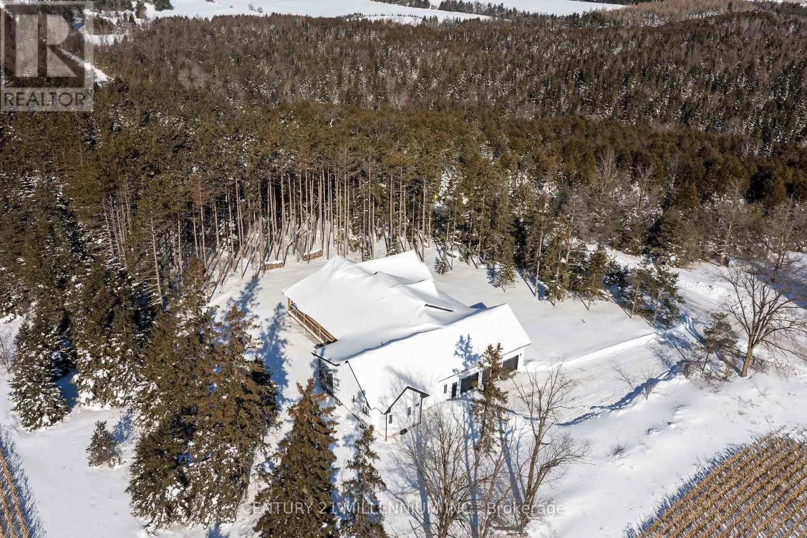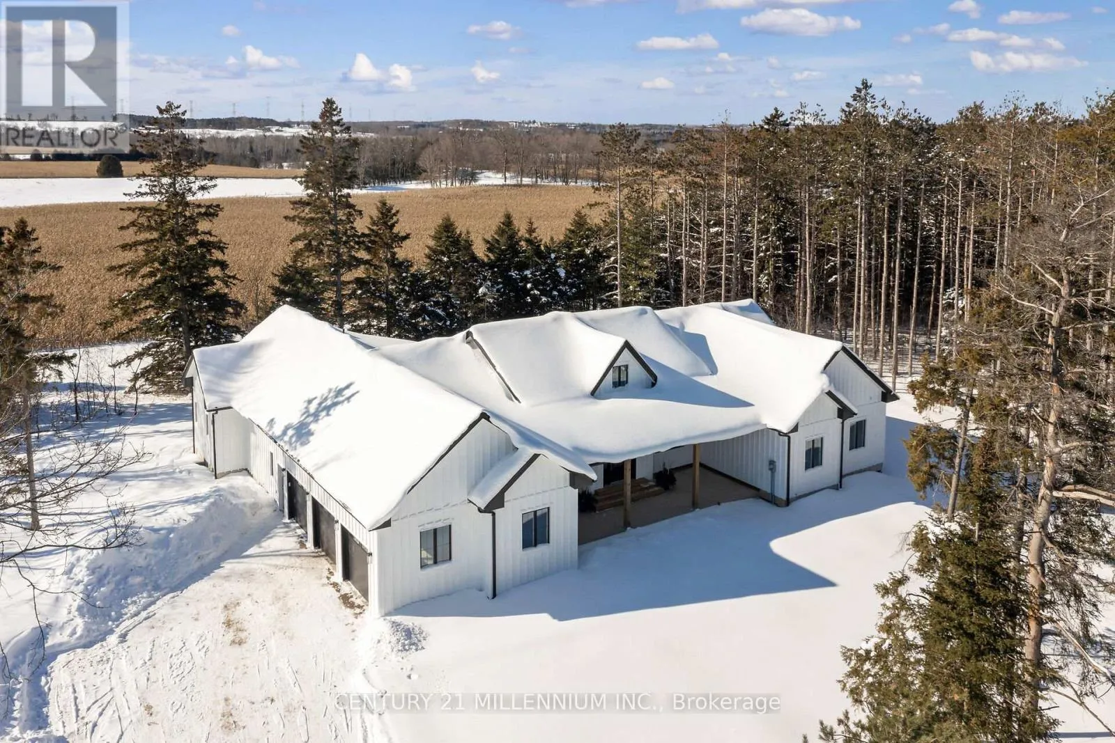 Cross Streets: Fifth Line/124. ** Directions: 124, north on Fifth LIne, house on the west side. When Modern Farm House is touched with elegance and sophistication you are presented with 5450 Fifth Line. This nearly 3000 sq ft custom bungalow is crafted to ensure the exterior meets the interior. Relaxed country warmth, with clean lines, soaring ceilings and thoughtful finishes throughout. You'll be captivated by the 1300 sq foot great room with 21' cathedral ceiling plus living, dining and kitchen all blended in harmony. The floor to ceiling fireplace focal point, is wrapped with built-ins and a hemlock barn beam mantle. The white oak engineered hardwood in soft neutral tones, flows throughout this masterpiece. The kitchen features a 11' island with seating for 5 and an under counter farm house sink showing off the quartz countertop. High end 6 burner gas 4' stove/oven combo with thoughtfully placed pull out pantry drawers and a functional pot filler. Just off the entry from the 3-car garage is a generous mudroom, laundry and powder room to keep daily life organized. The primary suite is tucked away, offering a quiet retreat with views of the trees and a walkout to the 65' wrap around deck. Get ready for the ensuite with 2 partner vanities, freestanding soaker tub and double walkway into the natural light shower. Then meander into the huge walk-in closet all ready for your inspiration. Additional bedrooms are thoughtfully separated with their own Jack and Jill bathroom, and the 4th with its own ensuite, giving it so many uses. The basement with its soaring 9' ceilings and large windows is a canvas ready for your creativity. On the outside you will celebrate a 2-acre treed lot, where you are able to breathe, create gardens or that backyard oasis, complete with pool and outdoor kitchen, surrounded by the covered deck. It is close to town, but you are able to watch the sun rise with your morning coffee and the sun set with your glass of shiraz. This bungalow offers 'everything you need' today, while remaining practical and timeless for years to come. (id:27476)