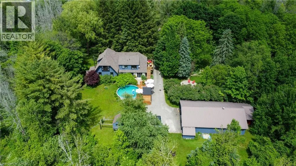 Turn off County Rd 22 onto 10th line. Discover unparalleled privacy on this remarkable, stress melting, 8 acre retreat, where nature and lifestyle blend seamlessly in your private escape â a place the owners describe as their very own resort. With no neighbors in sight, youâll enjoy the tranquility and seclusion of this amazing oasis creating a feeling of being worlds away â yet close enough for everyday convenience. This property offers an exceptional living experience, surrounded by walking trails perfect for year round adventures, close to snowmobile trails and many off road adventure opportunities. The options for this property are only limited by your imagination, from potential hobby farm, ATV trails, housing an existing business, start your own or just enjoy the beauty of nature. The centerpiece of this property is the stunning four-bedroom, three bathroom (2+1) one of a kind custom side split home. A striking spiral staircase takes center stage, adding architectural charm. The natural light floods every corner, creating a warm and inviting ambiance. While the top floor balcony invites you to savor your morning coffee amidst trees and picturesque views. The expansive primary suite offers abundant storage and space with endless potential to create your own spa like ensuite. Entertain effortlessly in the spacious living areas or take the gathering outdoors to the above ground heated pool deck and bar. Car enthusiasts and hobbyists will marvel at the shop with a double car garage in addition to the 400 sqft workshop and similar size âstableâ area that can be used as additional storage or to keep animals. This is more than a home, itâs a private sanctuary where you can immerse yourself in nature and create unforgettable memories. Whether youâre exploring the trails, hosting friends and family, or simply unwinding in your own oasis, 5794 Tenth Line is truly unlike any other. (id:27476)