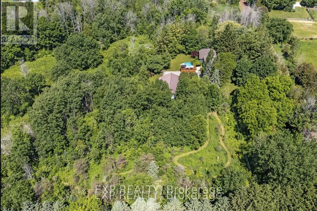 Cross Streets: Wellington Rd 22 / 10 Line. ** Directions: Turn off County Rd 22 onto 10th line. Discover unparalleled privacy on this remarkable, stress melting, 8 acre retreat, where nature and lifestyle blend seamlessly in your private escape a place the owners describe as their very own resort. With no neighbors in sight, you'll enjoy the tranquility and seclusion of this amazing oasis creating a feeling of being worlds away yet close enough for everyday convenience. This property offers an exceptional living experience, surrounded by walking trails perfect for year round adventures, close to snowmobile trails and many off road adventure opportunities. The options for this property are only limited by your imagination, from potential hobby farm, ATV trails, housing an existing business, start your own or just enjoy the beauty of nature. The centerpiece of this property is the stunning four-bedroom, three bathroom (2+1) one of a kind custom side split home. A striking spiral staircase takes center stage, adding architectural charm. The natural light floods every corner, creating a warm and inviting ambiance. While the top floor balcony invites you to savor your morning coffee amidst trees and picturesque views. The expansive primary suite offers abundant storage and space with endless potential to create your own spa like ensuite. Entertain effortlessly in the spacious living areas or take the gathering outdoors to the above ground heated pool deck and bar. Car enthusiasts and hobbyists will marvel at the shop with a double car garage in addition to the 400 sqft workshop and similar size stable area that can be used as additional storage or to keep animals. This is more than a home, its a private sanctuary where you can immerse yourself in nature and create unforgettable memories. Whether you're exploring the trails, hosting friends and family, or simply unwinding in your own oasis, 5794 Tenth Line is truly unlike any other. (id:27476)