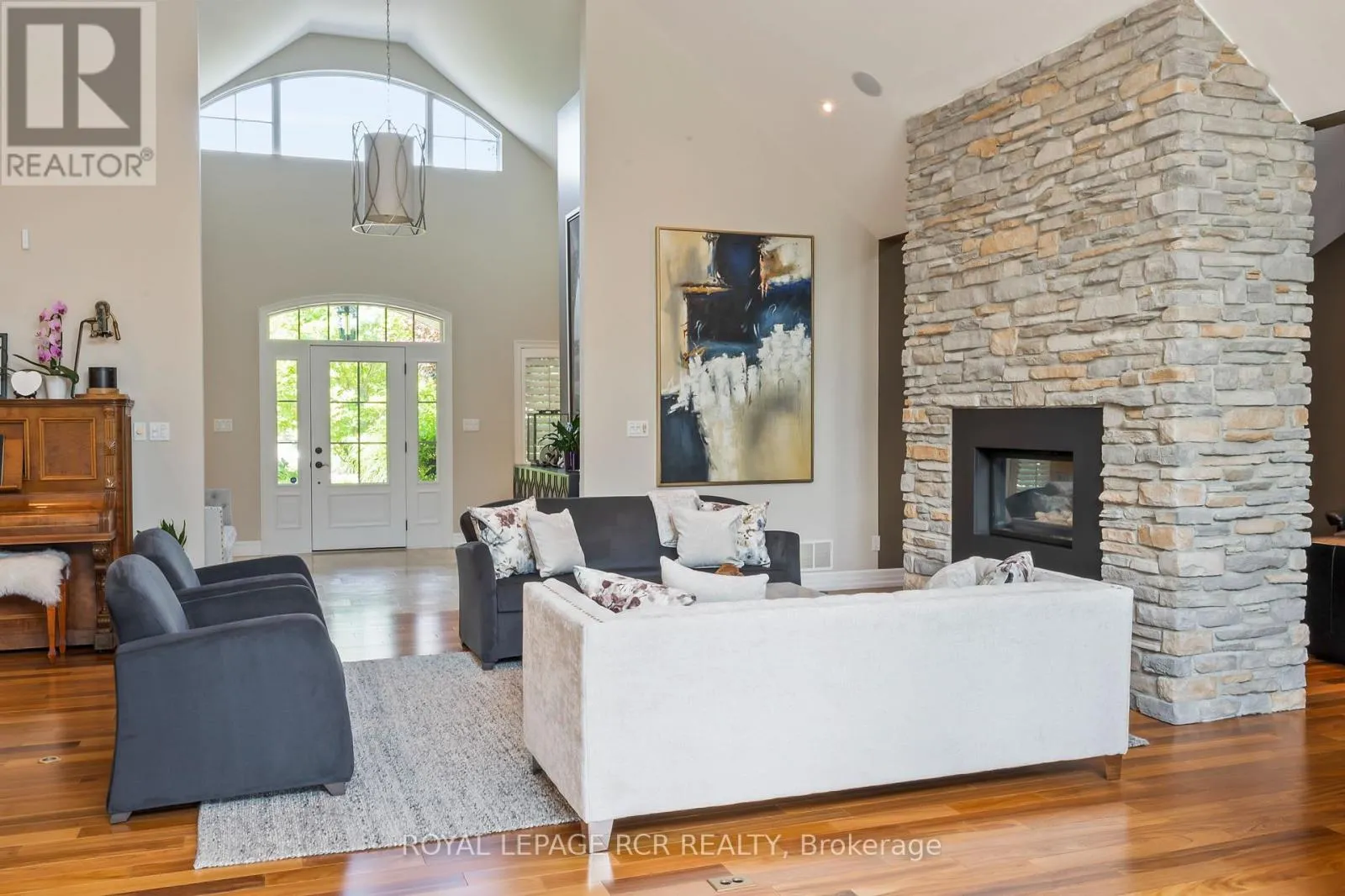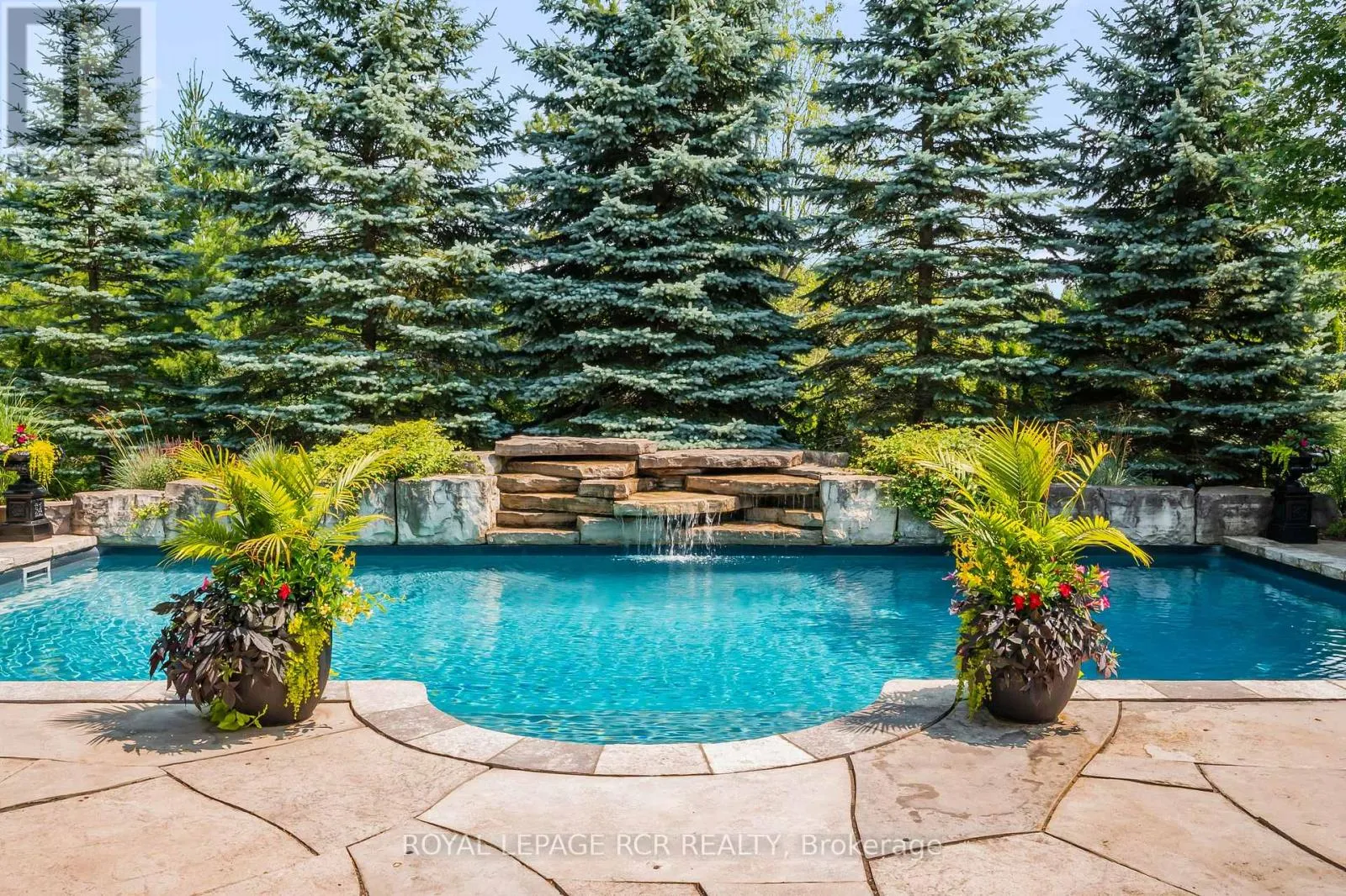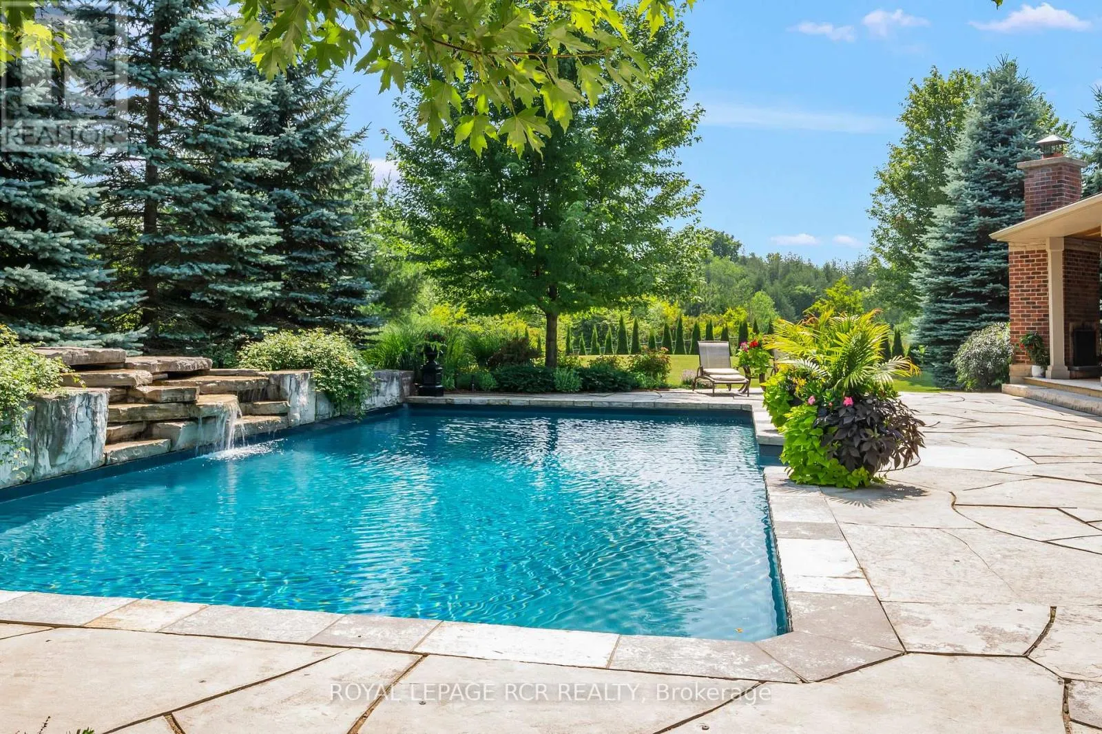 Cross Streets: Winston Churchill/Dundas St. E. ** Directions: West on Dundas St. E from Winston Churchill. Welcome to your own private paradise just outside of Erin - where luxury, lifestyle, and location converge. This exquisite executive bungalow offers approximately 8,000 sq ft of total finished living space, blending comfort, elegance, and thoughtful design, both inside and out. Set on a beautifully landscaped lot just over an acre, the property is fully fenced and equipped with an in-ground sprinkler system. The backyard is a true oasis for relaxation and entertainment. Dive into the saltwater pool with a cascading waterfall, unwind in the covered hot tub, or host gatherings under the covered porch featuring cedar ceilings, outdoor speakers, a TV, and a wood-burning fireplace for cozy evenings. This outdoor space feels like your private resort, perfect for summer parties or tranquil morning coffees amid lush gardens. Inside, the main floor spans 3,500 sqft with soaring cathedral ceilings in the stunning great room. Durable bamboo flooring and a double- sided fireplace enhance the home's heart, while the eat-in chef-inspired kitchen, updated in 2022, boasts high-end appliances and ample prep space, ideal for daily meals or entertaining. Three generous bedrooms on the main level each offer their own ensuite bathrooms, including the luxurious primary suite with heated floors in both the ensuite and shoe room, a soaker tub beside a fireplace feature, and a walkout to the hot tub. A versatile 1,000 sqft loft above the oversized 3-car garage serves as guest space or a home studio, complete with a three piece bathroom with heated floors. The finished lower level adds approximately 3,500 sqft of living space, featuring heated floors, two bedrooms, two full baths, and a full kitchen. With smart technology and premium finishes, this home is not just a residence; it's a lifestyle. Close to schools, shopping, dining, equestrian centres, golf, and the nearby Elora Cataract Trail, it offers everything you need for a luxurious life. (id:27476)