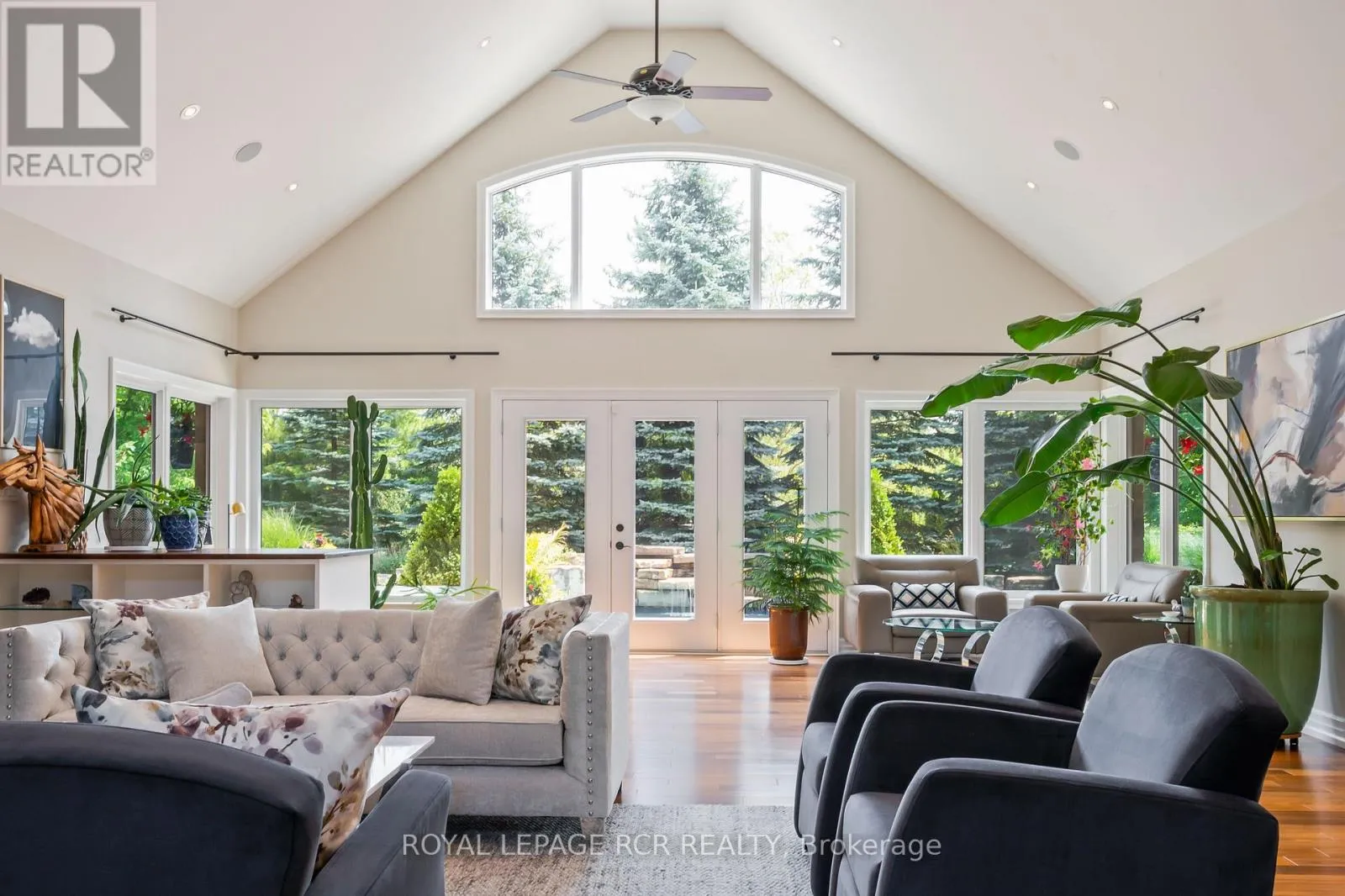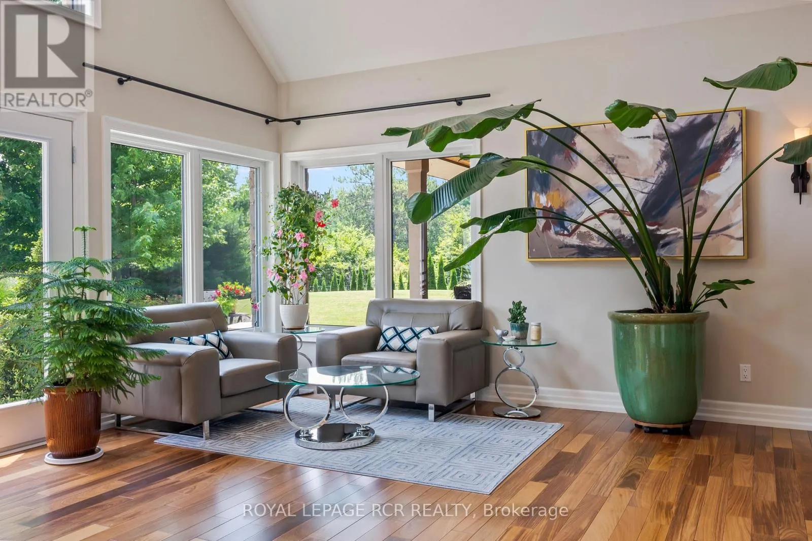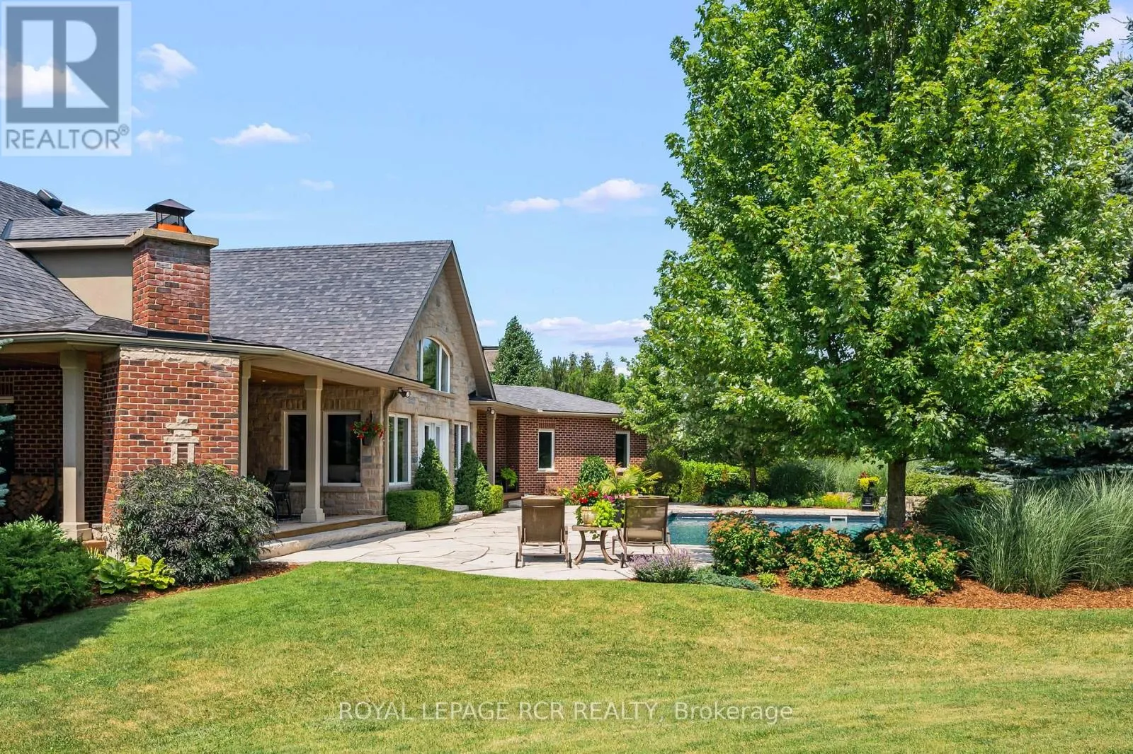 Cross Streets: Winston Churchill/Dundas St. E. ** Directions: West on Dundas St. E from Winston Churchill. Welcome to your own private paradise just outside of Erin - where luxury, lifestyle, and location converge. This exquisite executive bungalow offers approximately 8,000 sq ft of total finished living space, blending comfort, elegance, and thoughtful design, both inside and out. Set on a beautifully landscaped lot just over an acre, the property is fully fenced and equipped with an in-ground sprinkler system. The backyard is a true oasis for relaxation and entertainment. Dive into the saltwater pool with a cascading waterfall, unwind in the covered hot tub, or host gatherings under the covered porch featuring cedar ceilings, outdoor speakers, a TV, and a wood-burning fireplace for cozy evenings. This outdoor space feels like your private resort, perfect for summer parties or tranquil morning coffees amid lush gardens. Inside, the main floor spans 3,500 sqft with soaring cathedral ceilings in the stunning great room. Durable bamboo flooring and a double- sided fireplace enhance the home's heart, while the eat-in chef-inspired kitchen, updated in 2022, boasts high-end appliances and ample prep space, ideal for daily meals or entertaining. Three generous bedrooms on the main level each offer their own ensuite bathrooms, including the luxurious primary suite with heated floors in both the ensuite and shoe room, a soaker tub beside a fireplace feature, and a walkout to the hot tub. A versatile 1,000 sqft loft above the oversized 3-car garage serves as guest space or a home studio, complete with a three piece bathroom with heated floors. The finished lower level adds approximately 3,500 sqft of living space, featuring heated floors, two bedrooms, two full baths, and a full kitchen. With smart technology and premium finishes, this home is not just a residence; it's a lifestyle. Close to schools, shopping, dining, equestrian centres, golf, and the nearby Elora Cataract Trail, it offers everything you need for a luxurious life. (id:27476)