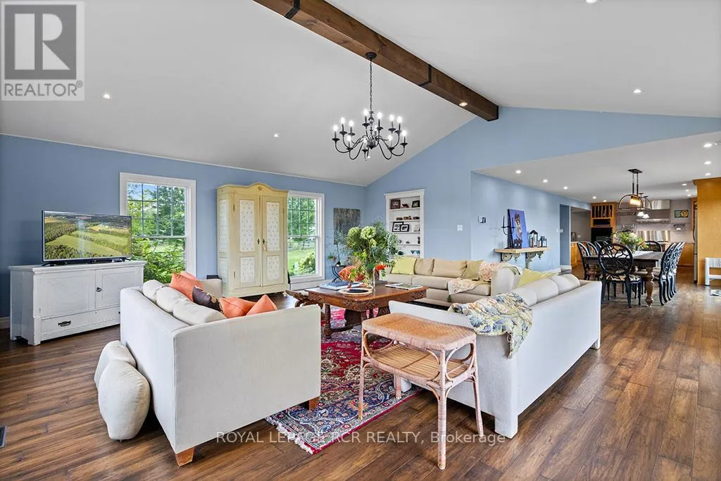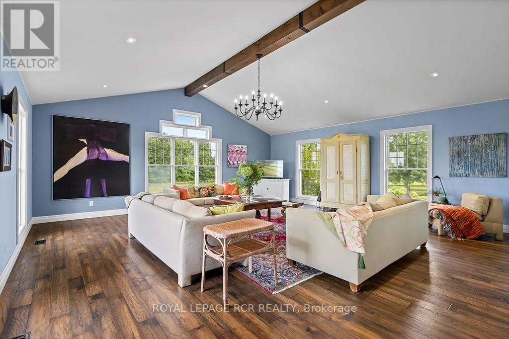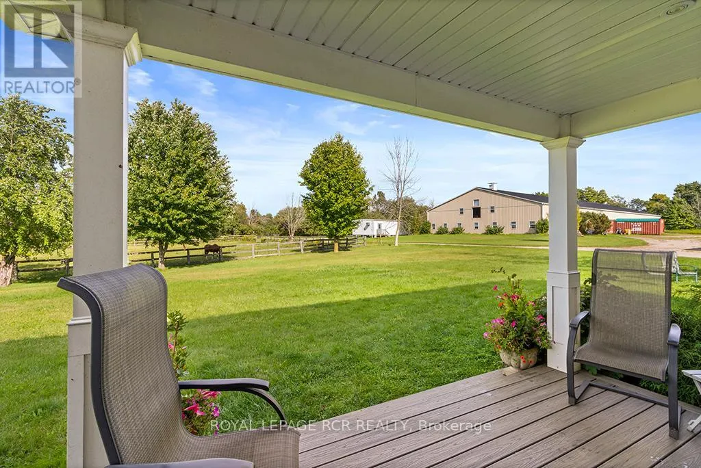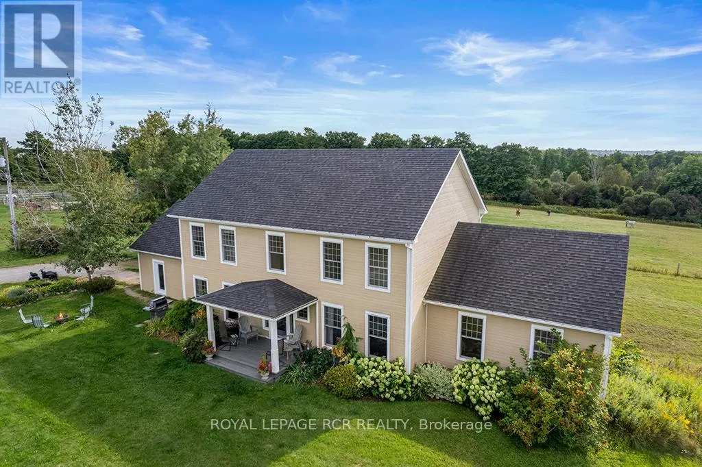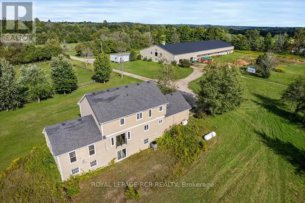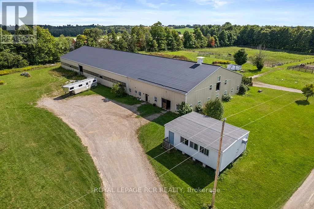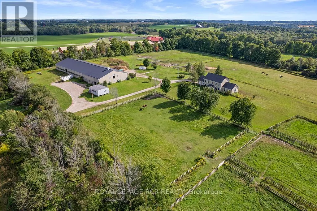 Cross Streets: Between 17 & 22. ** Directions: 17th Sideroad North on 3rd Line. Where Horse, Home, and Heart Align. Set among premier horse farms in elite equestrian country, this exceptional 49-acre estate is designed for those whose days begin in the barn aisle and end planning the next ride. Ten lush paddocks with frost-free hydrants and hydro support seamless, year-round horsekeeping, while the insulated, ventilated 20-stall steel barn features a heated tack room, wash and grooming stalls, feed room, 3-piece bath, & hay storage above with convenient drops - efficient and rider-friendly. The attached 76' x 160' indoor arena with operable windows allows consistent training through every season, perfect for winter miles and polishing flatwork. Outdoors, a large jumping field, 150' x 200' sand ring, and grass dressage field support relaxed hacks to show-ready schooling, while two productive hayfields enhance self-sufficiency. The 1997-built residence offers comfort after long days in boots and breeches, with hand-scraped wide-plank hickory floors, 9' and cathedral ceilings, and abundant natural light. The updated chef's kitchen with Wolf cooktop, leathered granite counters, and generous island opens to the dining area and Great Room with beamed cathedral ceiling. A main-floor bedroom with ensuite adds flexibility; upstairs are three additional bedrooms and updated baths with heated floors and towel warmers. The primary suite includes a dressing room, custom walk-in closet, and spa-inspired ensuite. Walk-out lower level awaits future plans. Upgrades include a 2024 cold-climate heat pump with propane furnace backup, Generac generator supporting essential farm systems, and newer Goodfellow siding. Minutes from Angelstone, Meadowlarke North, and Palgrave-where life with horses feels perfectly in stride. A thoughtful layout keeps routines efficient, from first feed to final night check, with easy flow between barn, arena, & home-ideal for competitors or passionate riders seeking a turnkey property ready to enjoy from day one. Ready to tack up now. (id:27476)