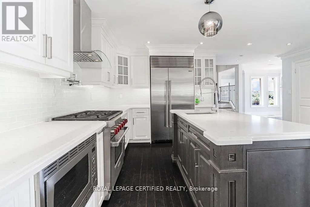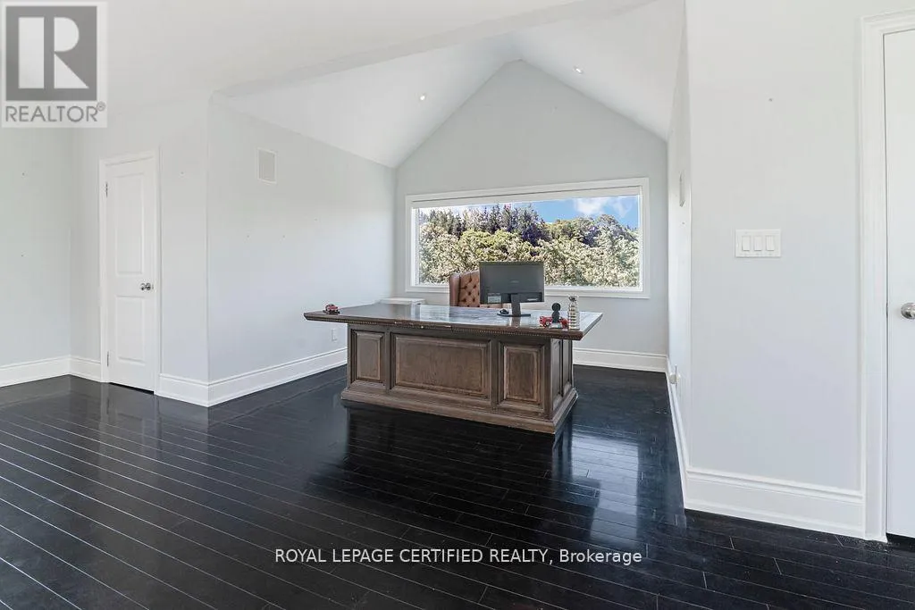 Cross Streets: Fifth Line & Side Road 27. ** Directions: Trafalgar Rd to Side Road 27. Poised atop a majestic 1.75-acre hilltop estate, this custom-built 2 1/4 storey masterpiece redefines luxury living with sweeping panoramicviews and uncompromising design! This 4-bedroom, 4-bathroom masterpiece is a perfect blend of modern elegance and country charm. Thegourmet kitchen is a culinary showpiece, appointed with two statement islands, premium Sub-Zero and Wolf appliances, and bespoke cabinetrytailored for both daily living and entertaining. Adjacent, sunken family room accented by coffered ceilings and a separate formal dining roomwith vaulted ceiling sets the stage for memorable gatherings. Retreat to the luxurious primary suite with its own vaulted ceiling, dual-sidedfireplace, and spa-like 5-piece ensuite. The fully finished walkout basement expands the living space and opens to a private outdoor retreat.Outside, resort-style living awaits an inground saltwater pool with a tranquil waterfall is set among professionally landscaped grounds, offeringultimate serenity and seclusion. An oversized 4-car garage adds practicality to this one-of-a-kind property. This is more than a home its a private,architectural statement for the most discerning buyer. (id:27476)