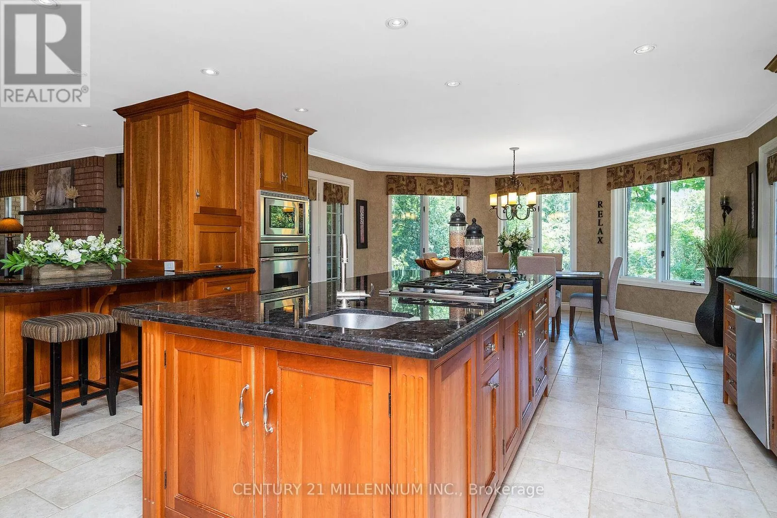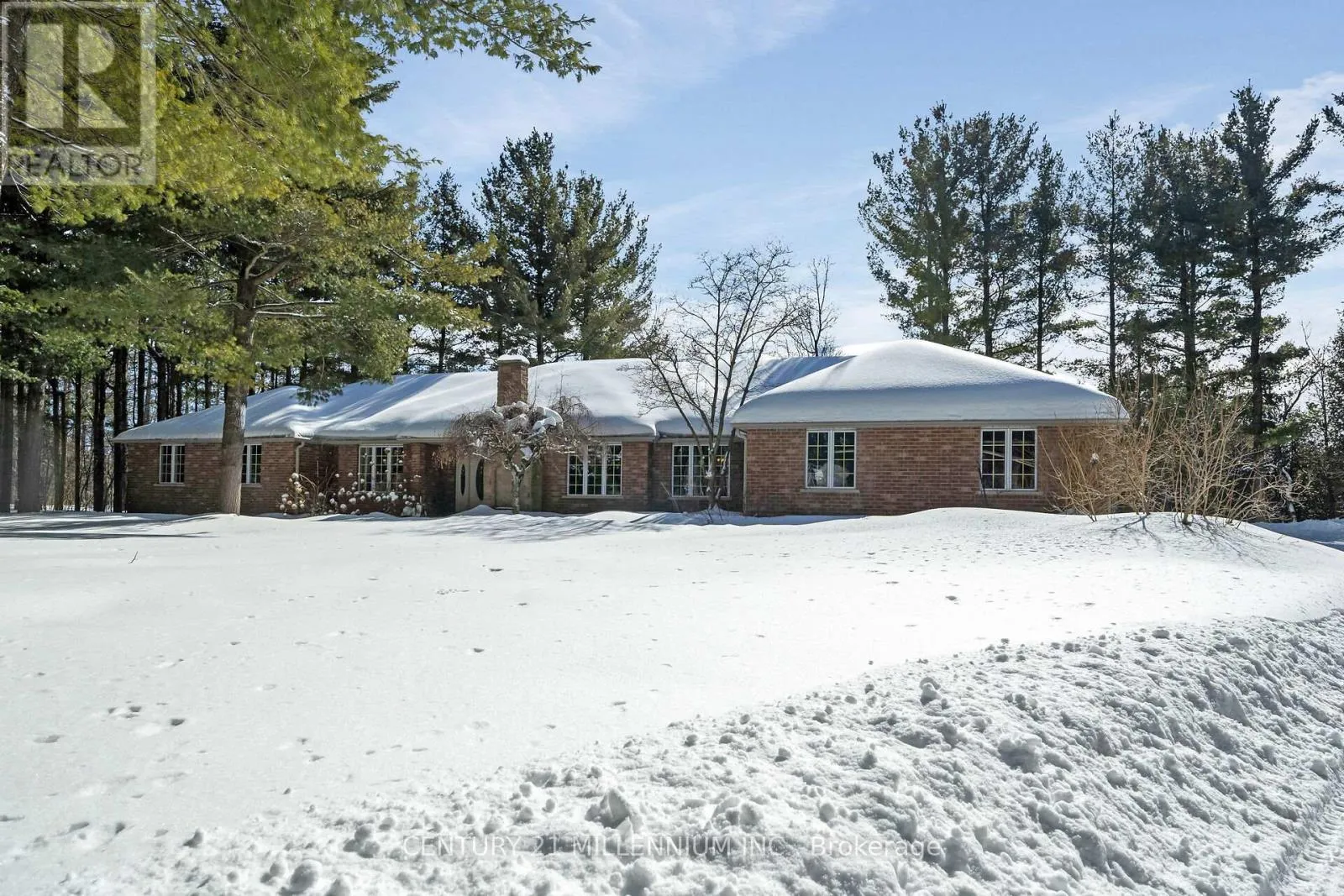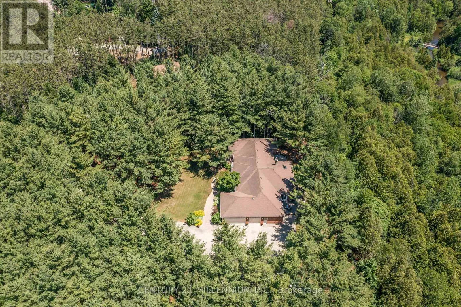 Cross Streets: 10th Line & Pine Ridge Road. ** Directions: 10th Line to Pine Ridge. Welcome to 41 Pine Ridge Road, a sprawling true bungalow set on 1.47 acres, this property combines estate-style presence with over 6000 sq ft of living space. The long-poured concrete driveway creates an impressive approach and generous parking for guests. The true bungalow layout has a commanding living and dining room overlooking the expansive front lawn and gardens, surrounded by soaring pines and the west credit river running behind. A beautiful custom Cherry Hill style kitchen featuring a large centre island with gas cooktop, pop up exhaust, extensive cherry cabinetry, and heated floors for year-round comfort. The kitchen opens to a warm family room with a wood burning fireplace. Adjacent solarium style room, filled with natural light and houses an indoor hot tub allowing year-round use in a protected environment. Three spacious main floor bedrooms with the primary suite as the star of the show, featuring a huge ensuite and walkout to the deck for morning coffee. The fully finished basement has an additional two bedrooms for guests, extended family, or home gym. The second kitchen creates a true in-law or multigenerational living option, or an ideal set up for entertaining. The custom bar area anchors the recreational space providing a fabulous area for entertaining or game nights. Two separate staircases connect the two floors improving flow and adding convenience. The oversized 3.5 car garage offers room for vehicles, hobby space, and additional storage. Privacy is of the essence, yet neighbors near by for a game of road hockey. A short walk or bike ride into the Village of Erin on the safety of the Elora-Cataract Trail. Walking distance to the schools, arena, tennis courts, and new library. An easy commute to the GTA, with all the tranquility when you arrive home. (id:27476)
