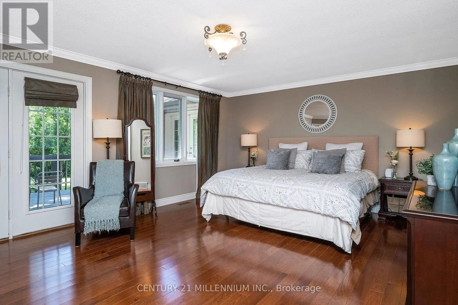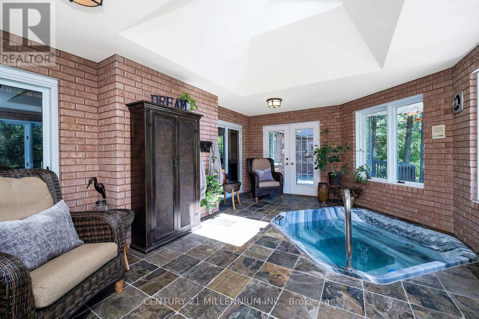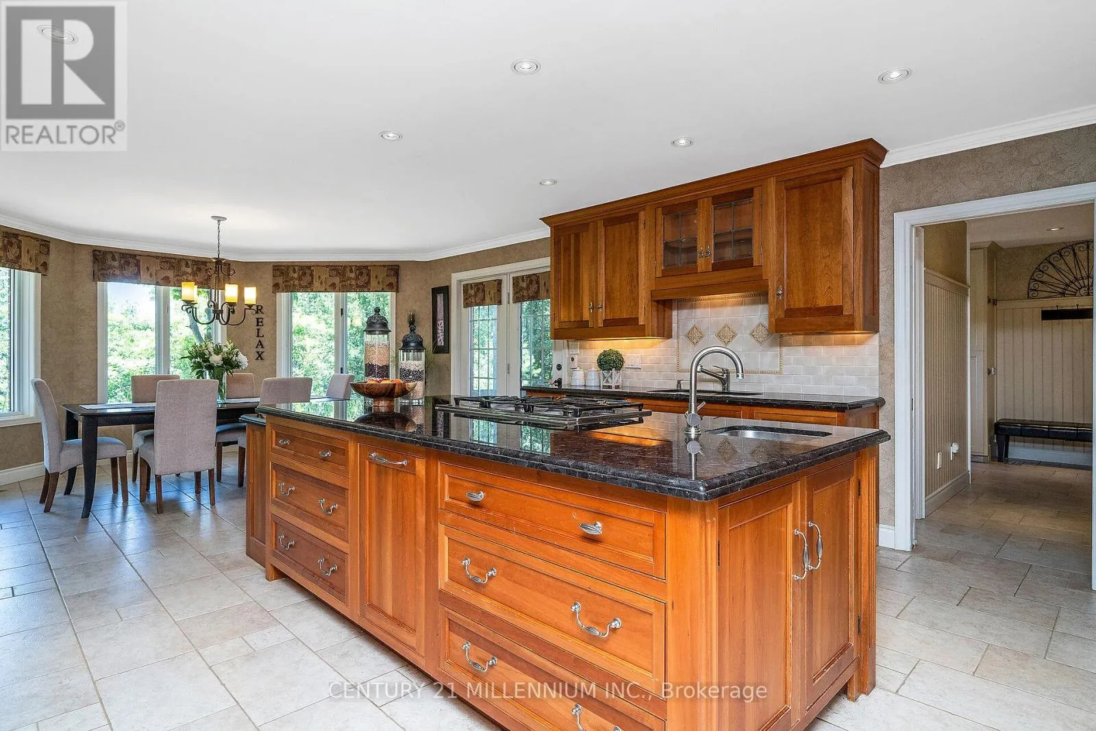 Cross Streets: 10th Line & Pine Ridge Road. ** Directions: 10th Line to Pine Ridge. Welcome to 41 Pine Ridge Road, a sprawling true bungalow set on 1.47 acres, this property combines estate-style presence with over 6000 sq ft of living space. The long-poured concrete driveway creates an impressive approach and generous parking for guests. The true bungalow layout has a commanding living and dining room overlooking the expansive front lawn and gardens, surrounded by soaring pines and the west credit river running behind. A beautiful custom Cherry Hill style kitchen featuring a large centre island with gas cooktop, pop up exhaust, extensive cherry cabinetry, and heated floors for year-round comfort. The kitchen opens to a warm family room with a wood burning fireplace. Adjacent solarium style room, filled with natural light and houses an indoor hot tub allowing year-round use in a protected environment. Three spacious main floor bedrooms with the primary suite as the star of the show, featuring a huge ensuite and walkout to the deck for morning coffee. The fully finished basement has an additional two bedrooms for guests, extended family, or home gym. The second kitchen creates a true in-law or multigenerational living option, or an ideal set up for entertaining. The custom bar area anchors the recreational space providing a fabulous area for entertaining or game nights. Two separate staircases connect the two floors improving flow and adding convenience. The oversized 3.5 car garage offers room for vehicles, hobby space, and additional storage. Privacy is of the essence, yet neighbors near by for a game of road hockey. A short walk or bike ride into the Village of Erin on the safety of the Elora-Cataract Trail. Walking distance to the schools, arena, tennis courts, and new library. An easy commute to the GTA, with all the tranquility when you arrive home. (id:27476)