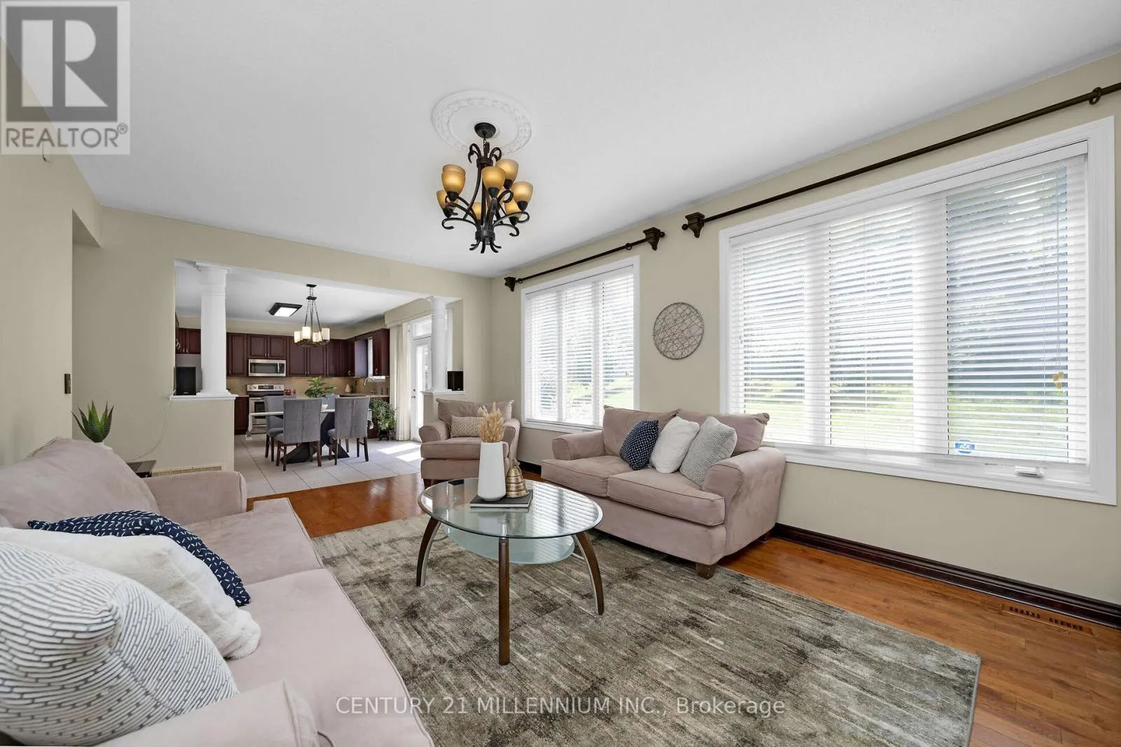 Cross Streets: Trafalgar Rd/Upper Canada Drive. ** Directions: Trafalgar Rd to Upper Canada Dr. If space is what you are looking for, then look no further! Drive up the long driveway into this huge 0.8-acre lot, full of privacy and lovely landscaping. Wander up the front walkway to the double door entrance and walk into over 2,900 square feet of above grade space. Floor to ceiling windows bring in all the warm sunlight with 9-foot ceilings for open, airy living. Open combination of dining and living room with gleaming hardwood floors. Kitchen is as functional as it is beautiful with quartz counters and stainless-steel appliances. Lots of room for a kitchen table that walks out to the patio or into the warm, cozy family room. Also on the main floor is a powder room, laundry and mudroom to garage. A super cool private little porch is accessed from the front hall. Upstairs is an enormous primary and ensuite, plus walk-in closet. 3 more generous bedrooms and a full bath. The basement is just ready for your creative juices to flow. Perched up high in this family friendly neighborhood, only 40 minutes to the GTA and 20 to the GO train. Small town living in a big space! **EXTRAS** AC (2023), Freshly Painted Throughout (2024), Roof (2022), Quartz Countertops in Kitchen (2016), Deck (2015) (id:27476)