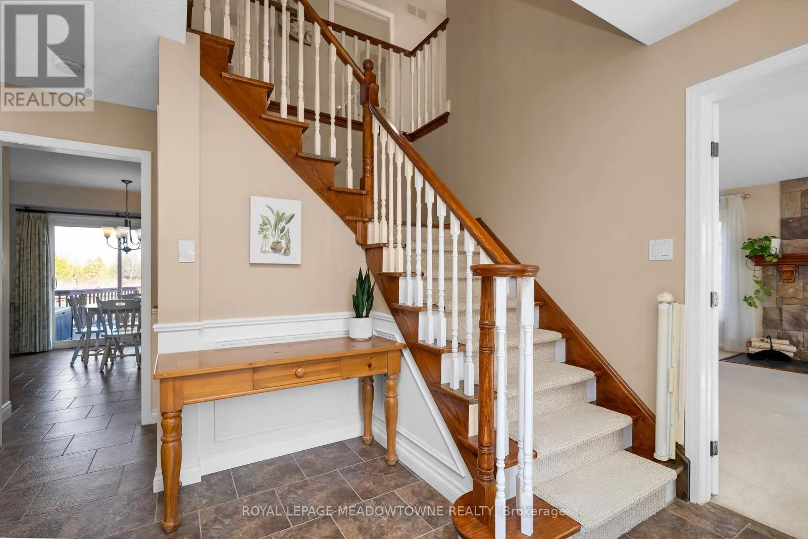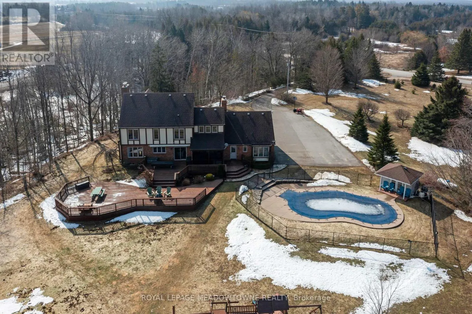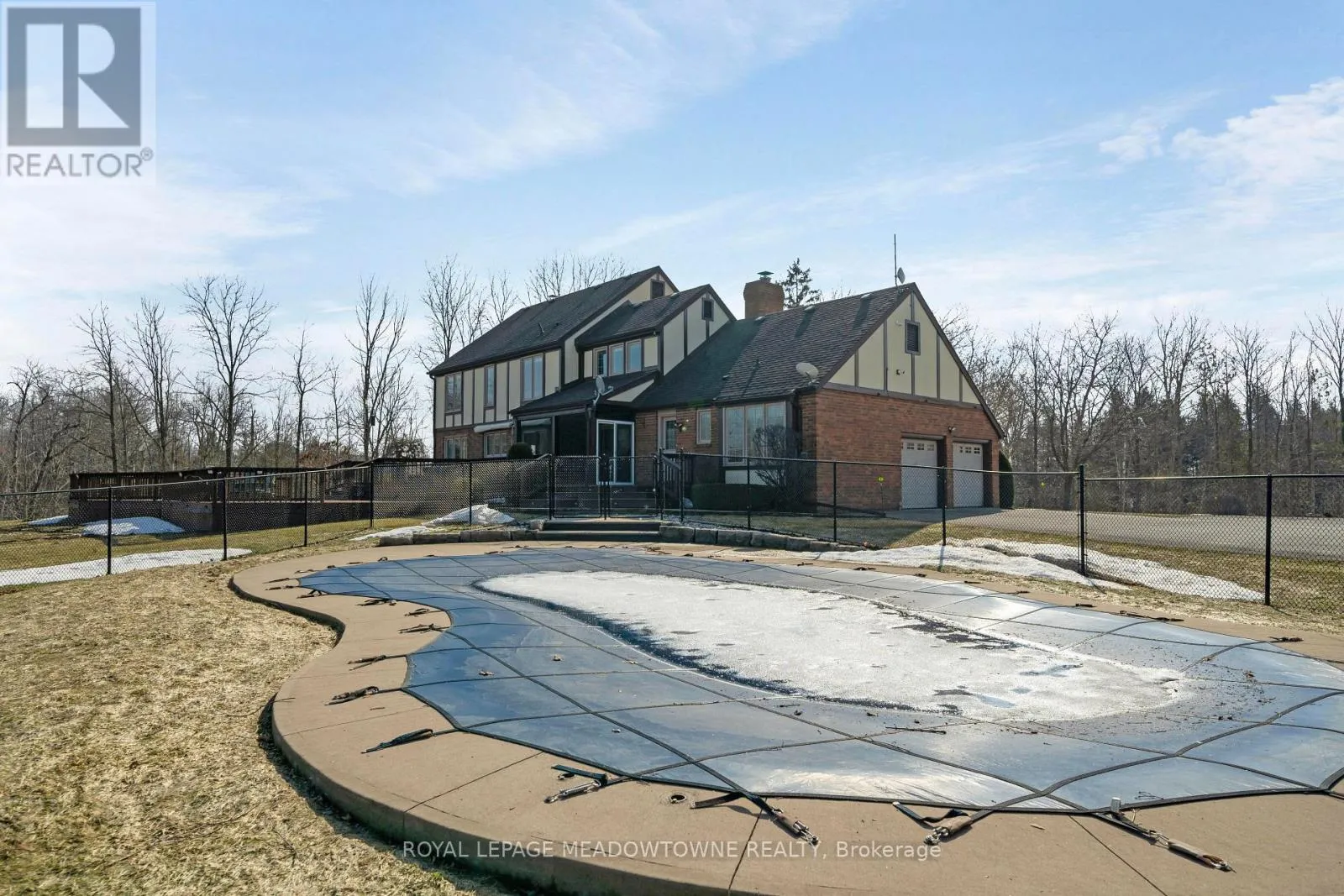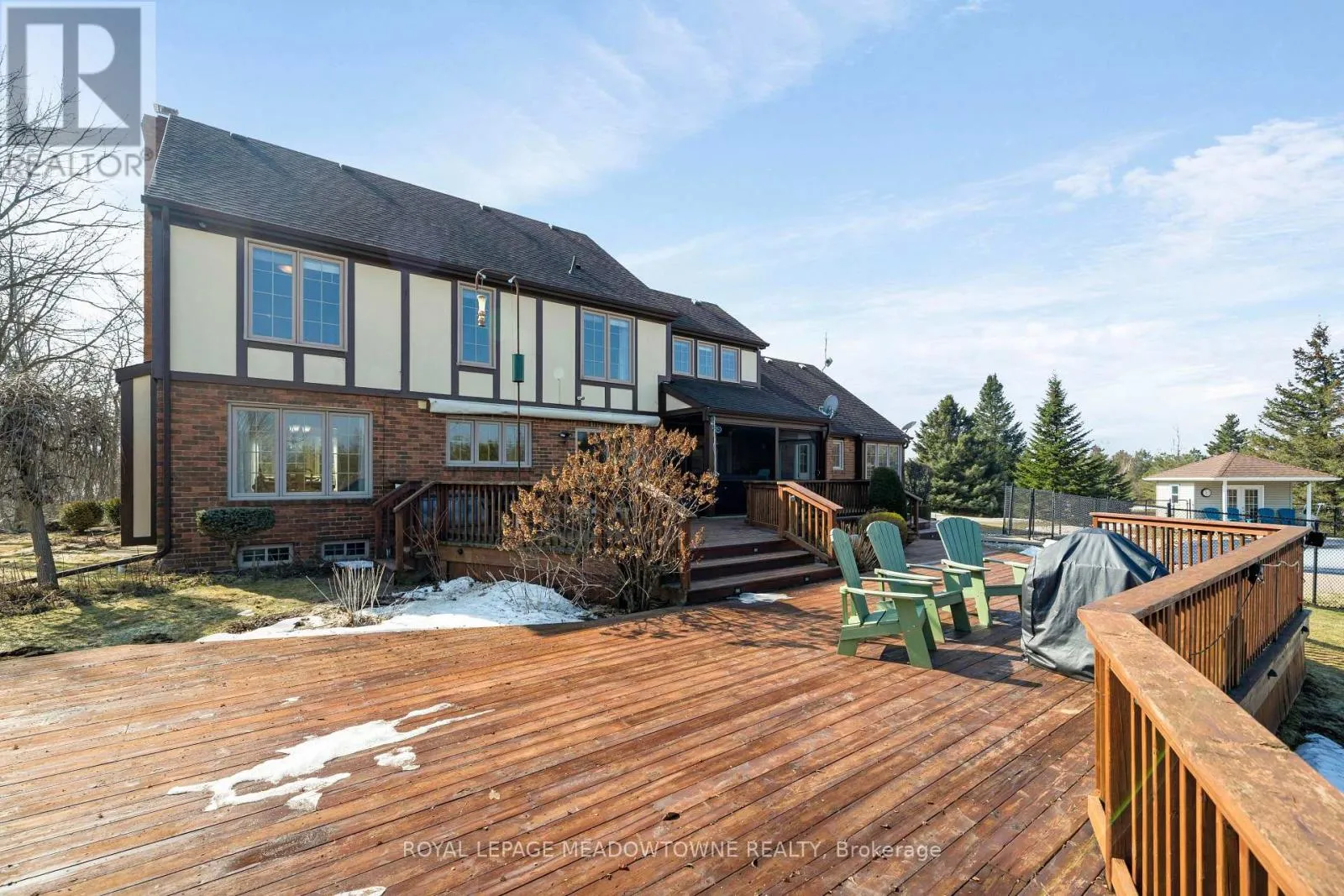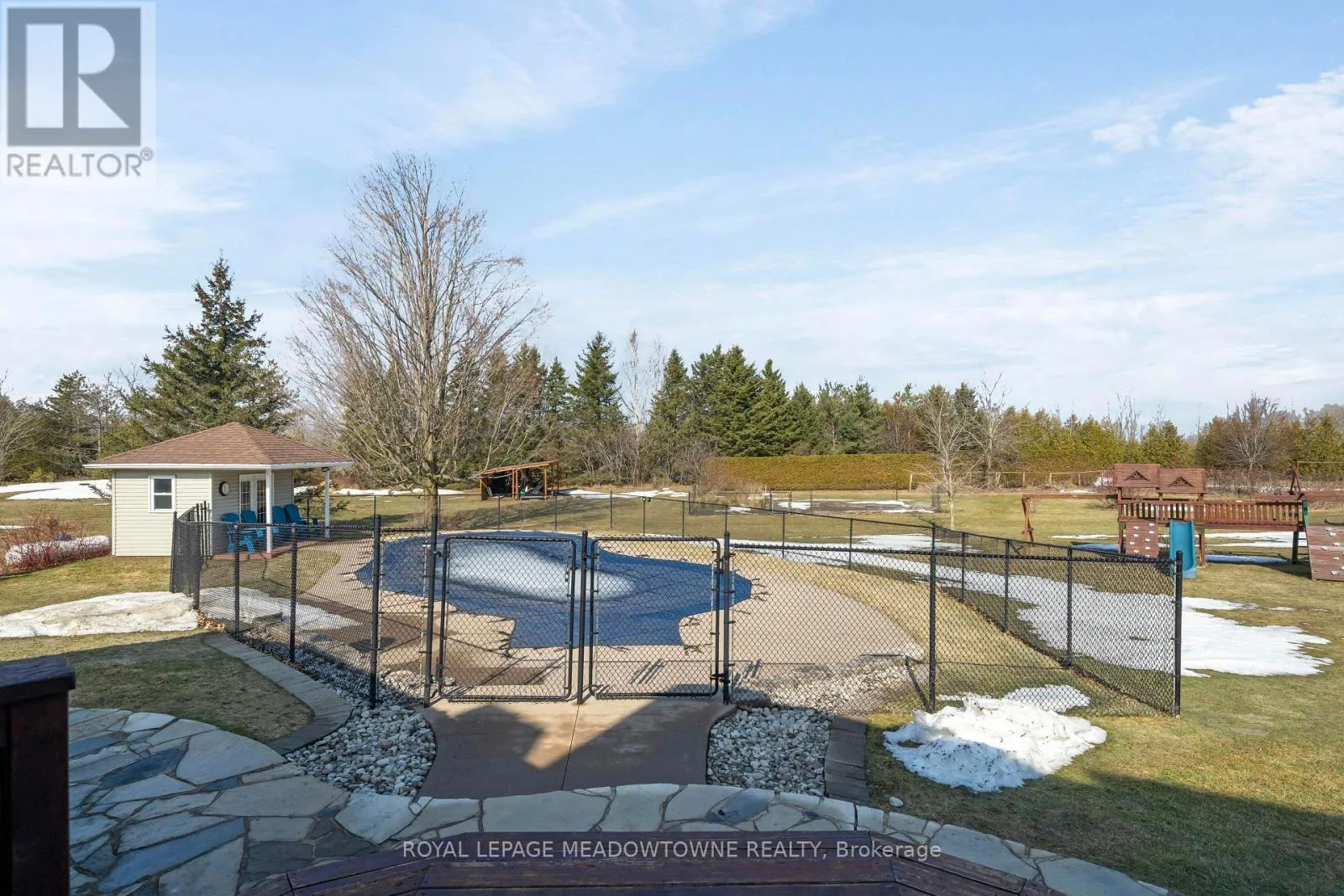 Cross Streets: 32nd Sdrd & First Line. ** Directions: Corner of Erin/Halton Townline and 1st Line [Dublin] paved roads. Set on 10 private, scenic acres, this property gives your family the freedom to grow, play and enjoy nature every day. This bright and welcoming 4-bedroom 3 bathroom home provides more than 4,000 sq ft of living space. A large eat-in kitchen has plenty of counter and cupboard space and opens out to a big multi-tiered deck perfect for family meals and gatherings or enjoying the sunrises. The family room offer a warming fireplace and walks out to a sunroom with a hot tub for year-round relaxation. There is also an open concept living and dining room to accommodate large gatherings and hosting special occasions.Upstairs, you will find 4 spacious bedrooms, giving everyone in the family their own space to sleep, study,and play. The main bedroom includes a private ensuite with a luxurious glass walk-in shower. The finished basement adds even more living space perfect for a playroom, games area, gym or movie nights and extra storage space. Step outside to enjoy endless activities right in your own backyard. You will love the heated swimming pool and exploring the land as your own natural playground. In the winter, there is room to create your very own ice rink for skating and hockey. Pick apples and pears from your own trees,grapes and raspberries and grow your own food in the 25 ft x 50 ft fenced vegetable garden. Stay comfortable all year with cost-efficient geothermal heating and cooling. Work from home or stream with high-speed fibre internet. An oversized 2-car garage provides access into the house, space for cars, tools and outdoor gear with lots of additional parking on the paved driveway. Many updates to this property including many thermal oversized Windows, R-50 insulation in the attic, fascia and eavestrough, clothes washer and dryer, Fibre internet, pool heater and pump and more. 2.77 acres CLTIP reducing property taxes. This peaceful property located on a paved road is close to Acton, Rockwood, GO train station, schools, shops, churches and golf courses. (id:27476)