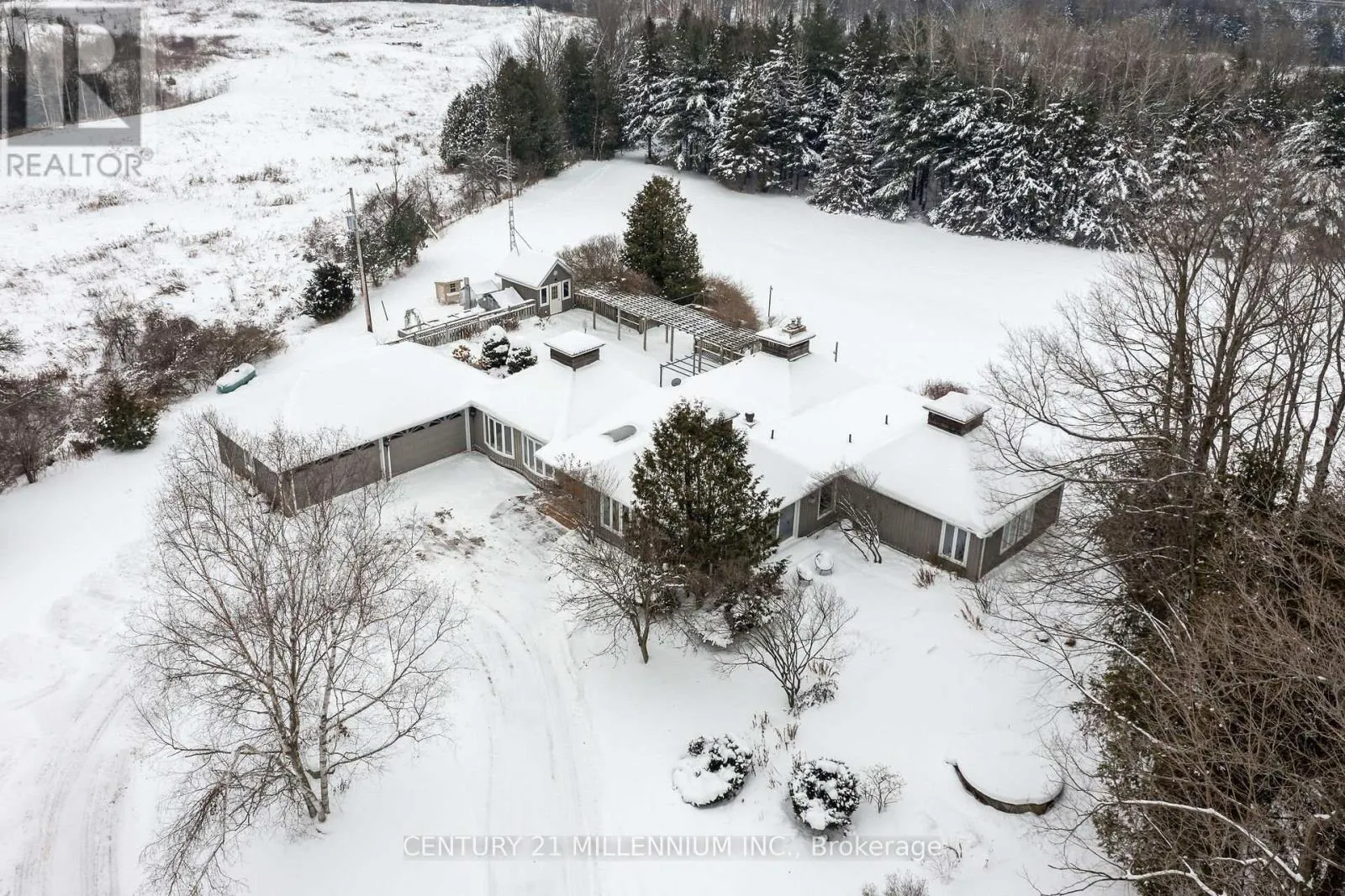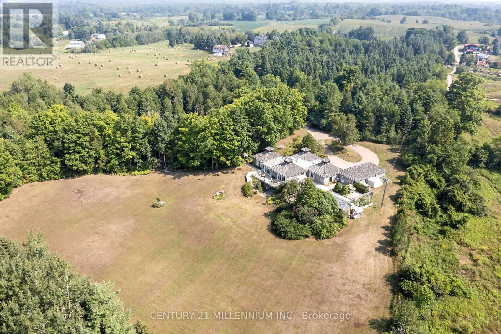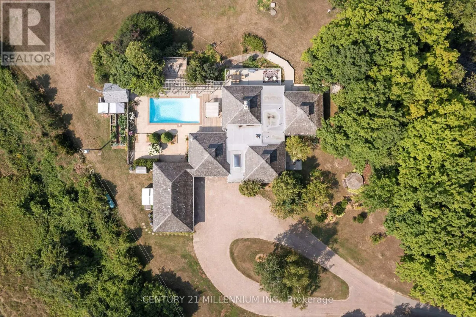 Cross Streets: 5th Sdrd/5th Line. ** Directions: Trafalgar Rd to 5th Sdrd (west), Fifth Line (North). Your wait for paradise is over! This 17-acre property features two paved driveway entrances, a beautiful spring fed pond, complete privacy and an exquisite 4-bedroom, 3-bathroom home. Drive up the tree lined driveway as the stress of your day escapes you and is replaced by peaceful easy feelings. This custom build has a smart layout with stunning views from every window, and the primary suite will make you never want to leave it! The lovely kitchen is this centre of the design opening to a breakfast nook, library, and dining room, plus the bedroom wing of the home. The great room is bright and airy walking out to the inground saltwater pool and sun filled patio. The walk out lower level is home to a huge rec room, a full bathroom with a sauna, laundry and so much storage. Efficient Geothermal heating with brand new 2025 furnace with transferable warranty, five fireplaces, seven walkouts, chicken coop, veggie gardens, a sugar shack plus a small barn and acres to wander and relax. Only 35 minutes to the GTA, 8 minutes to the village of Erin and 20 minutes to Guelph. Your rural oasis is waiting for you, do not miss it! (id:27476)