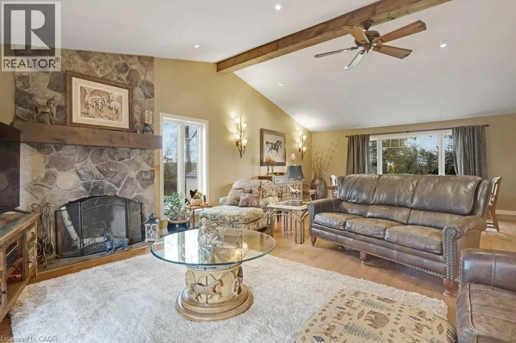 Wellington Rd 124 to Second Line (Ospringe) Welcome to this exceptional 35-acre equestrian property, offering the perfect blend of professional horse facilities and peaceful country living — ideally located just 8 minutes from Angelstone Events. With 18 acres of productive land currently in hay, the property provides excellent potential for agricultural income, boarding, training, or your own private hobby farm. Designed with horse enthusiasts in mind, the impressive steel 18-stall barn includes a 70’ x 120’ indoor riding arena, hot & cold wash bay, spacious tack room, and hay storage capacity for up to 2,500 bales. 8 well-maintained paddocks provide excellent turnout, making daily operations efficient and this facility truly turn-key. The charming side-split home offers comfortable family living surrounded by beautiful countryside views. Vaulted ceilings and French doors create a bright and inviting atmosphere throughout the living and dining areas, which open onto a large back deck overlooking the paddocks and inground pool — the perfect place to unwind after a day at the barn. The spacious kitchen offers abundant counter space and storage, along with double French doors leading to the backyard for seamless indoor-outdoor living. The main floor features laundry, a powder room, & a versatile bedroom currently used as an office, ideal for a home-based business or guest suite. Upstairs you’ll find three generous bedrooms, including a primary suite with walk-in closet, soaker tub, and glass shower, plus a second full bath with a large walk-in shower. The finished basement provides additional living space with a large rec room, bedroom, modern full bath, and plenty of storage. Down here you will find the generator that is wired to run the whole house if you loose power. Convince at your finger tips. Electrical upgraded in 2007. A rare opportunity to own a fully equipped horse property paired with a comfortable family home in a peaceful rural setting just minutes from town amenities. (id:27476)