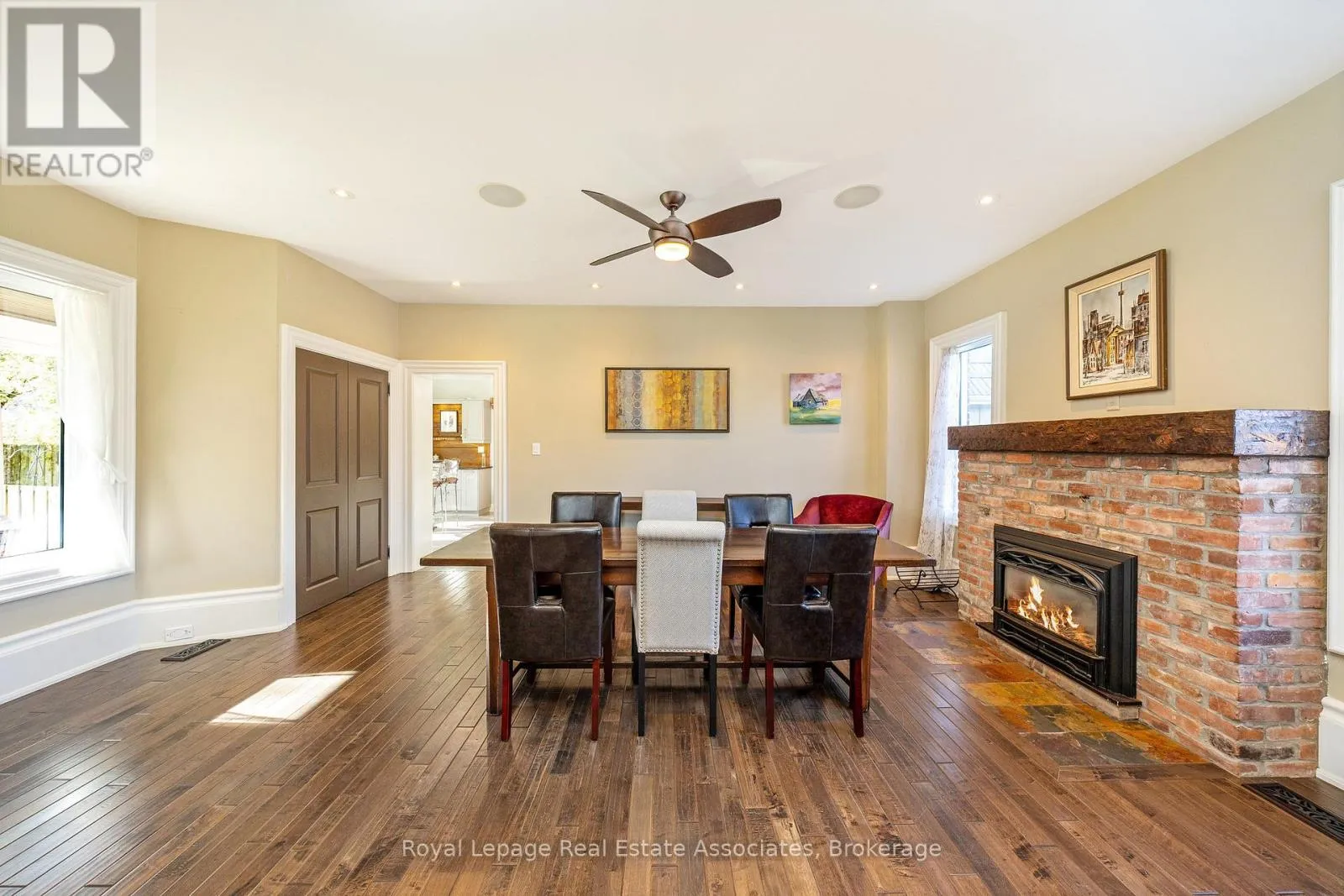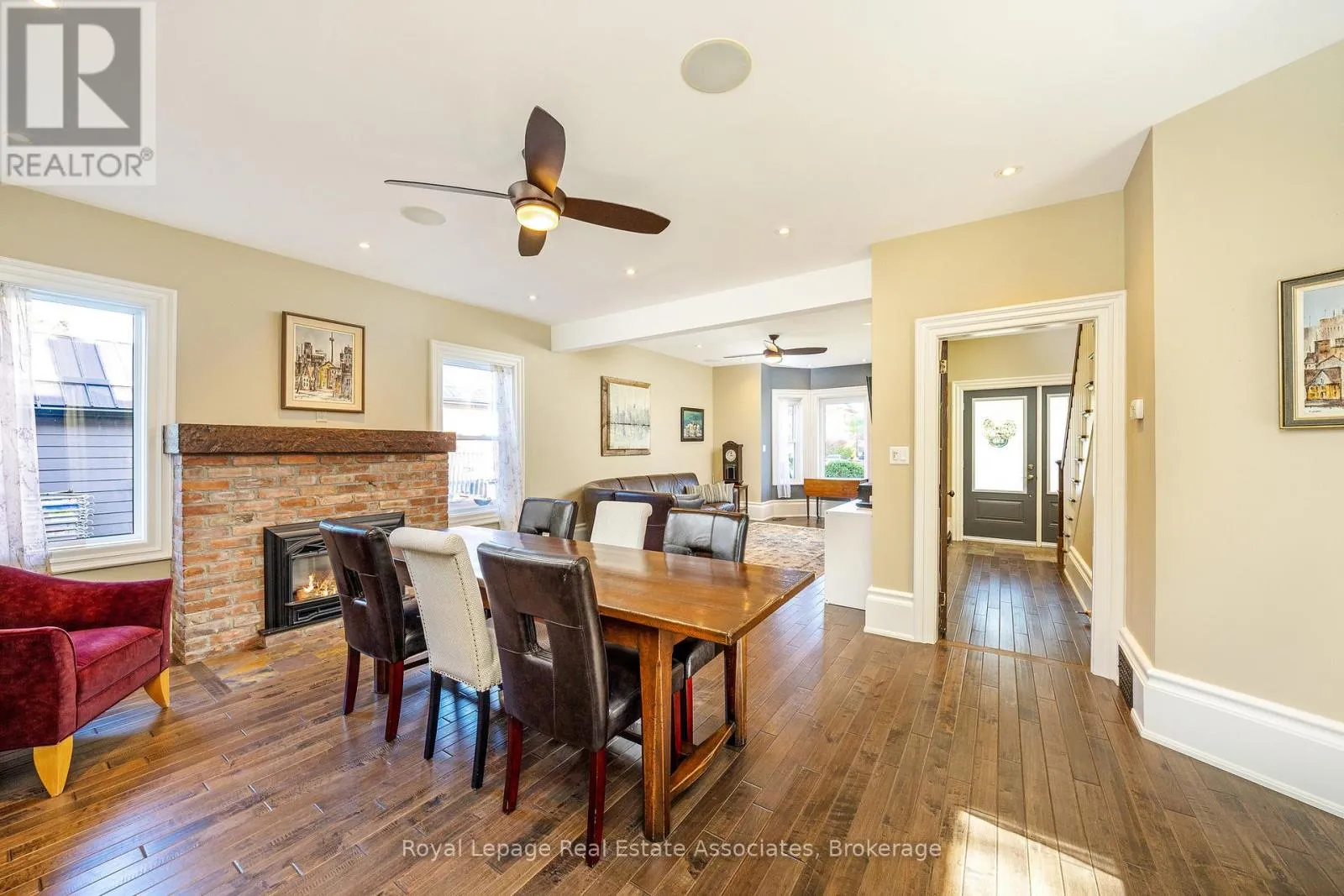 Cross Streets: Main Street and Dundas Street. ** Directions: Main Street north of Dundas Street. What an awesome package! A gorgeous renovated and modernized brick century home with attached professional office, on a huge 2/3 of and acre lot, in downtown Erin, walking distance to restaurants, schools, the Fairgrounds, and all amenities in the beautiful village! The home has been lovingly restored and renovated since 2009, keeping the charm and elegance of this century home. The main floor flows graciously with an open living and dining room with hardwood flooring, and gas fireplace, and pot lights and in ceiling speaker system allows for effortless entertaining. The kitchen, white and clean with plenty of cabinets, a wet bar area, and door out to the sun porch offers an eat-in area and breakfast bar seating, and a second staircase to the upper level! The family room addition with exposed brick wall and walk out to the covered flagstone patio is bright and cheery with heated floors and a gas fireplace. The main floor also offers a two piece bathroom under the upper staircase and a practical mudroom with storage cupboards. Upstairs you will find four bedrooms, all spacious. The Principle bedroom suite boasts hardwood flooring, built-in closets, and a four piece ensuite bathroom. All bathrooms is this home have heated floors. The professional office built with quality finishings with high end appeal, offers main floor office space with three work stations, a bathroom, and a coffee area. Upstairs in the loft you'll find more office space suitable for privacy. Recently built drive shed in the backyard gives you tons of storage space to put lawncare equipment, or would make a great workshop. There is an insulated room on the lower level with stairs up to a loft for more storage, or a gym or studio space. The huge flat backyard, in the past, accommodated an ice rink that all the neighbourhood kids used and loved! There are lovely shade trees and perennial gardens completing this wonderful package. (id:27476)