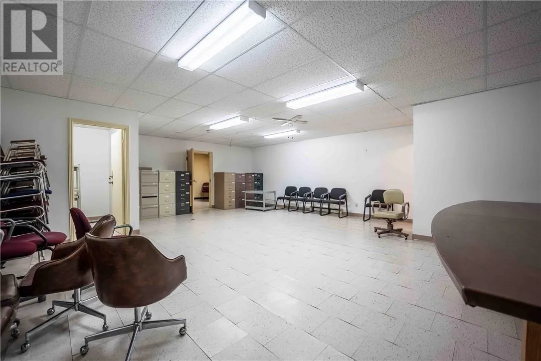 This 1,722 sq.ft. commercial building, formerly the Caisse Populaire Desjardins, is configured for professional office or retail use and is ideally suited for single-tenant occupancy. The main floor features a vestibule, customer service area with teller counter, open office space, central corridor with rear entrance, four private offices, a small administration area, storage space, a vault, and a cubicle area. The fully finished basement includes a large conference room, staffroom with kitchenette, two 2-piece washrooms, a spacious storage room and closet, a second vault, IT closet, and a utility room housing the main electrical distribution equipment and additional storage. (id:27476)