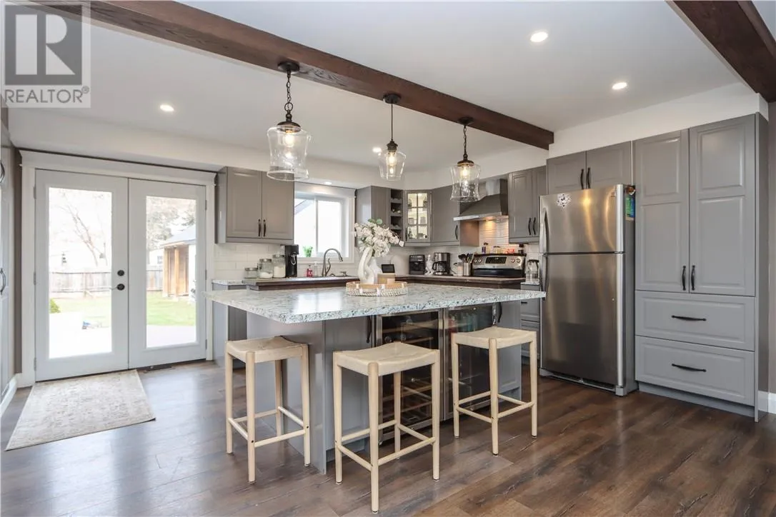 Welcome to 498 Adelaide Street in Espanola - a beautifully updated two-storey home where warmth and comfort meet thoughtful design. From the moment you step inside, youâll feel the inviting energy of a space thatâs been lovingly restored and styled for modern family living. The main floor offers a bright, open-concept layout that feels both spacious and cozy. The kitchen blends contemporary design with a warm, homey feelâfeaturing modern cabinetry in soft tones, a spacious island with a built-in beverage fridge and prep area, and plenty of room to gather for everyday meals or weekend entertaining. The adjoining living area is filled with natural light, creating an easy flow and a relaxed atmosphere. A main-floor bedroom and convenient bath/laundry combo add flexibility and function for family life or guests. Upstairs, the primary suite is a calm and comfortable retreat, complete with a generous walk-in closet and a spa-inspired ensuite featuring a glass shower and soaker tub. A second upper bedroom provides plenty of space for family or visitors. The finished lower level offers a cozy rec roomâperfect for movie nights or play spaceâand a large storage area. Outside, the detached 28' Ã 16' garage includes a covered extension for extra storage or a workshop area. With its combination of modern updates, thoughtful finishes, and an unmistakably welcoming feel, this move-in ready home is the perfect blend of style, warmth, and everyday comfort. (id:27476)