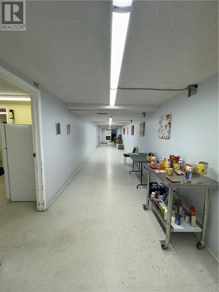 Quiet basement-level commercial space of approx. 470 sq. ft. in the heart of Espanolas commercial district. Accessed via shared lobby and stairwell (no elevator). Functional layout includes a 15 x 12 main area, private rooms approx. 9.5 x 8, 9 x 9.5, 7 x 5.5, plus 6 x 5 entry. No windows.Shared washroom & common area. Suitable for office, tattoo artist, accountant, counsellor, massage therapist, physio, aesthetic or other service-based uses. Street-facing signage available. $800 + HST gross rent includes water, hydro, heat, taxes, snow removal, and common area & washroom cleaning. New sidewalks and pavement. (id:27476)
