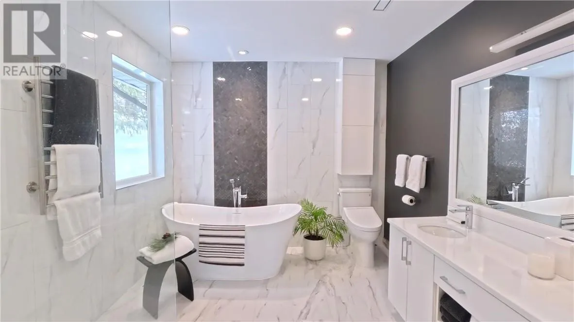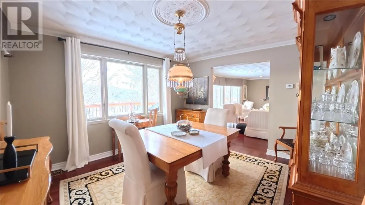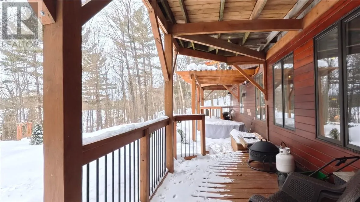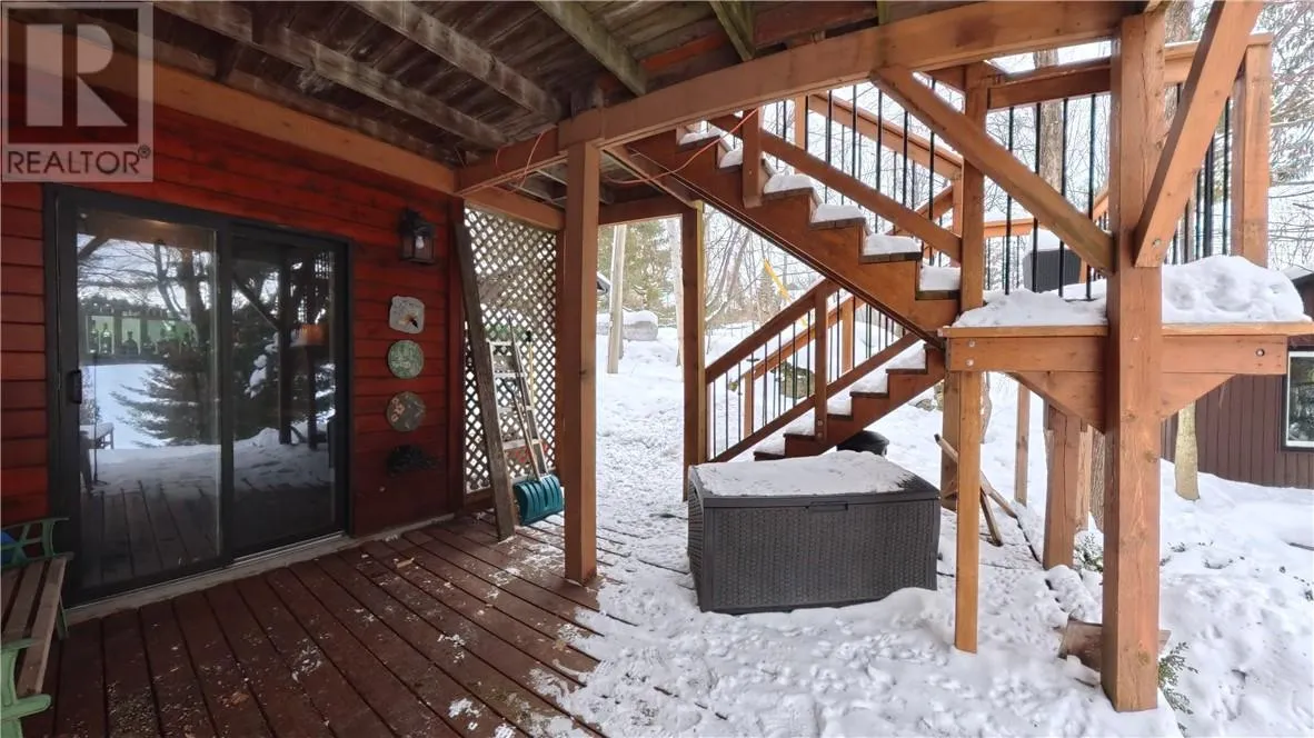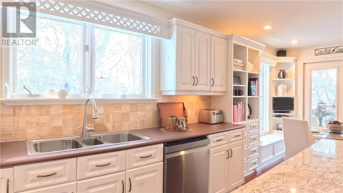 Welcome to 357 Clear Lake Drive, Espanola. Set on the shores of Clear Lake, this custom-built waterfront bungalow offers 3 bedrooms and 2.5 bathrooms in a private, extremely well landscaped setting with mature tree cover and terraced garden areas. The appeal starts with a curved driveway bordered by a stone retaining walls leading to an interlocking stone courtyard and stone steps to large front entry. The main level includes a bright eat-in kitchen with huge quartz island and quality appliances (refrigerator, stove, wall oven, induction cooktop, microwave, built-in dishwasher), a dining area and a large living room with lake views and built in propane fireplace. The primary bedroom overlooks the water and features built-in closets, private deck access and a renovated en suite with soaker tub, walk-in shower and in-floor heating. Main floor laundry with full-size LG stainless steel washer and dryer and a powder room add to overall convenience. The fully finished lower level offers a family room with lake-facing windows and propane fired stone fireplace, two additional bedrooms, 4-piece bath, office/den, wet bar with bar fridge, workshop, storage, and walk-out access to a full-width deck. Outdoor features include multiple decks, interlocking pathways, terraced lawns, and stairs leading to the water. A floating dock provides direct lake access for swimming and boating. Constructed with 2x6 framing and 2x12 floor joists, the home also includes attached double garage. Meticulously maintained waterfront home offering functional space, south facing lake front, and year-round enjoyment. A truly special offering at a great price! (id:27476)