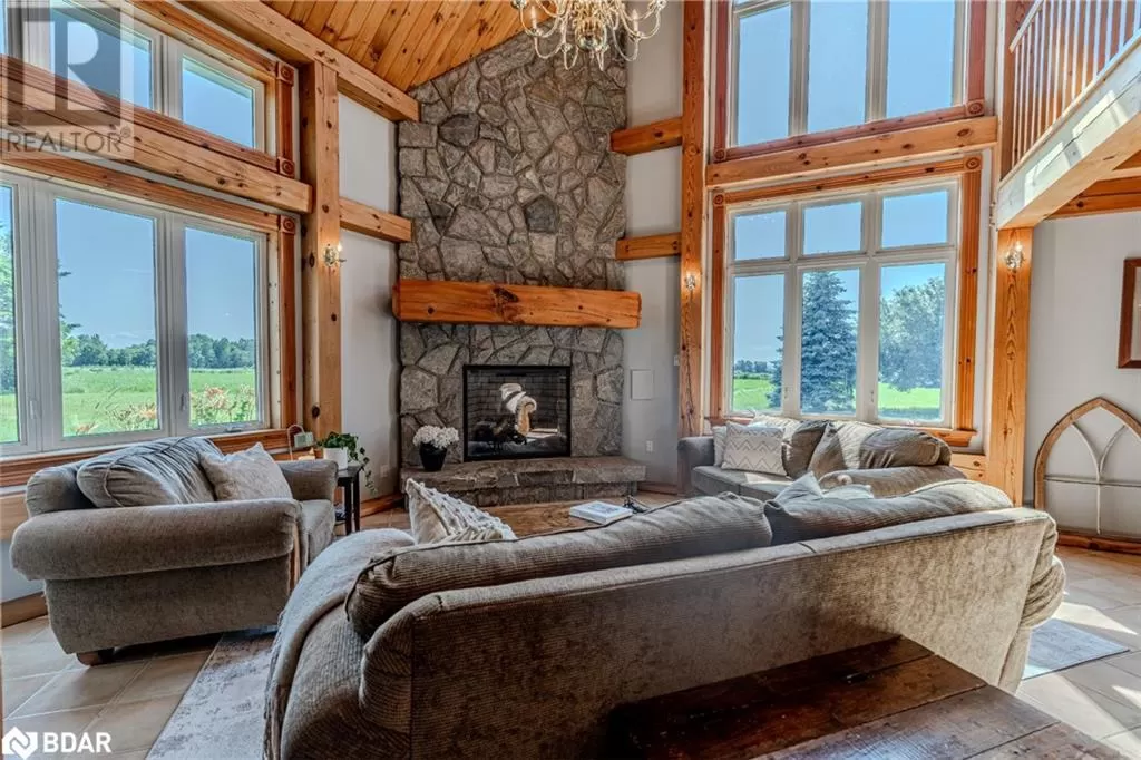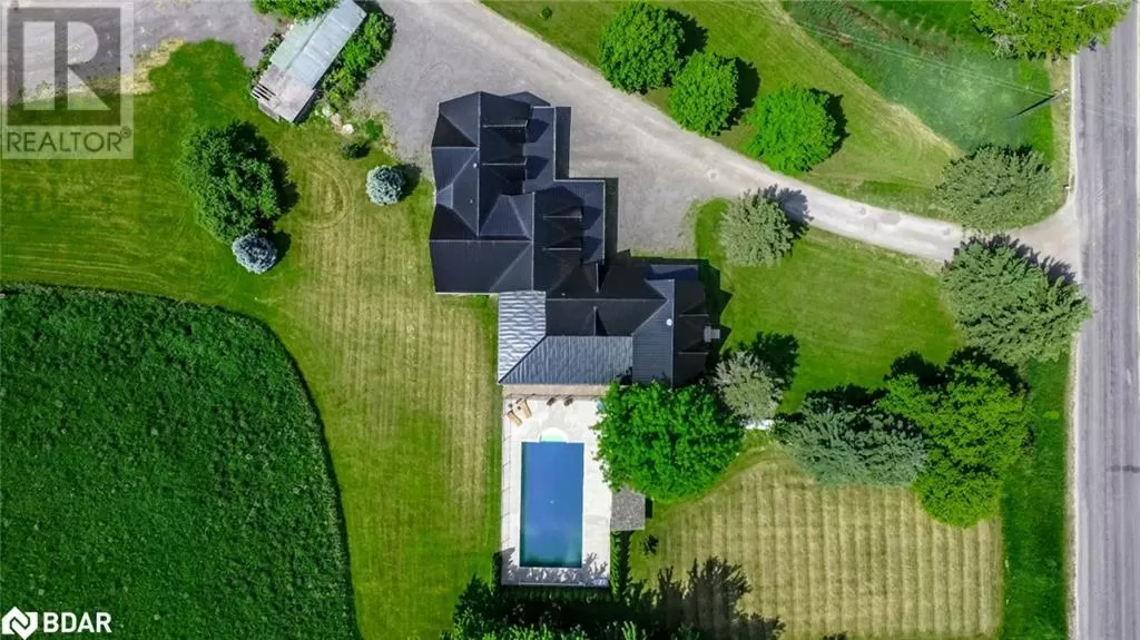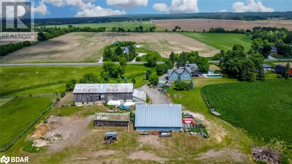 Hwy 89 W/Simcoe County Rd 56/Side Road 25/6th Line LUXURY, SPACE, AND OPPORTUNITY - 4,544 SQ FT ESTATE ON 10 ACRES WITH OUTBUILDINGS BUILT FOR BUSINESS! Live the rural estate dream with this 4,544 sq ft sanctuary, fully renovated and set on 10 acres of serene countryside near Barrie, Angus, and Alliston. Offering total privacy with sweeping views of open fields and lush greenery, this property is brimming with opportunity for home-based businesses, contractors, and hobbyists, with an impressive selection of outbuildings that offer the flexibility to live, work, and pursue your passions. The 4,500 sq ft barn boasts box stalls, paddocks, a tack and feed room, and tack-up areas - perfect for discerning equestrians. A 62 x 38 ft heated saltbox-style workshop provides space for large-scale projects, while an 18'8 x 28 ft driving shed and a collection of accessory buildings add even more versatility. After a day spent working, escape to the backyard featuring an inground saltwater sport pool, a pool house with a shower and change room, and a timber-framed covered patio. The home itself exudes luxury, blending timeless architecture with high-end finishes. The modern farmhouse captivates with steep gables, a blend of brick and blue board and batten siding, a newer steel roof, and meticulously landscaped gardens. Step inside to the sun-drenched great room, a space that commands attention with soaring ceilings, exposed beams, a dramatic flagstone fireplace, and oversized windows that frame the tranquil landscape. The kitchen is functional and elegant, offering custom wood cabinetry, granite and quartz countertops, a farmhouse sink, and a vintage-inspired range. Set in a private wing, the primary suite provides a peaceful retreat with a walk-in closet and ensuite, while a showstopping billiards room with vaulted ceilings and arched windows flows into a versatile space ideal for a media room, office, or lounge. This is an exceptional opportunity to live, work, and unwind in one extraordinary property that truly has it all. (id:27476)