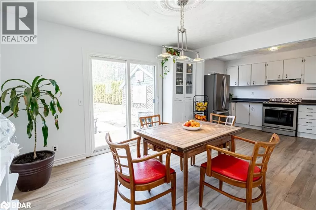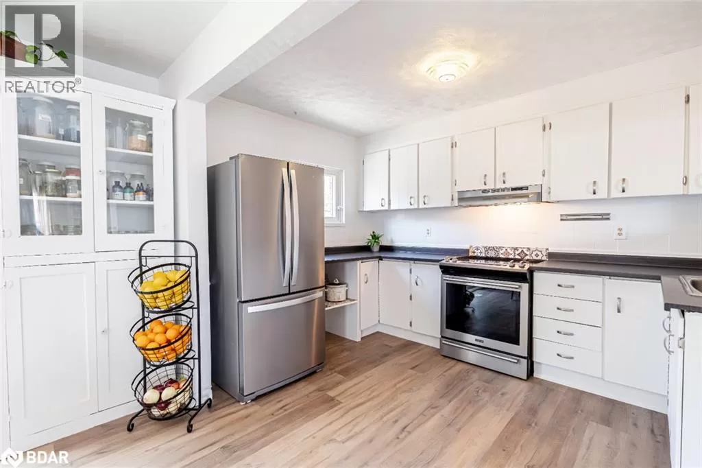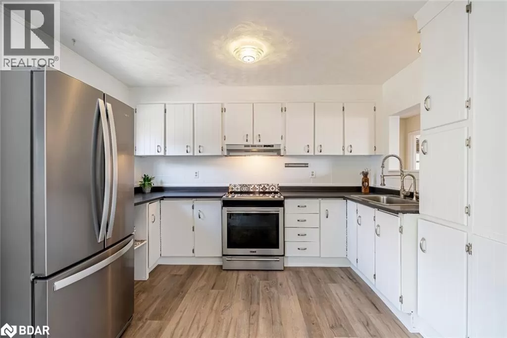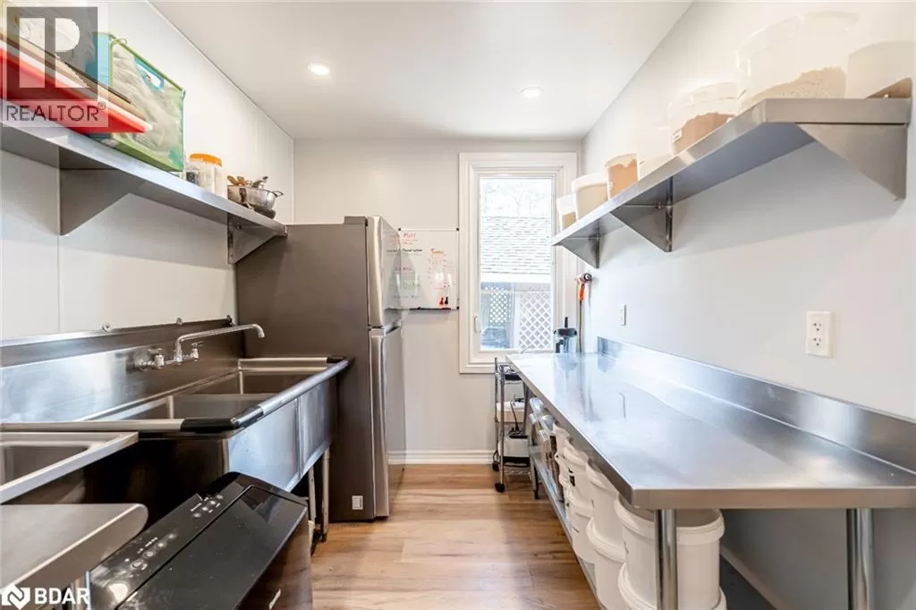 Dunlop St/County Rd 90 W/Mill St VERSATILE COMMERCIAL OPPORTUNITY WITH HIGH VISIBILITY IN THE HEART OF ANGUS! Position your business for success with this outstanding commercial opportunity on bustling Mill Street in Angus. Zoned C2 and located on a deep 65 x 229 ft lot with prime street exposure, this mixed-use property is tailor-made for entrepreneurs, small business owners, or investors looking to capitalize on flexible commercial space with room to grow. The standout feature is a massive 1,664 sq ft detached double garage/workshop, offering exceptional utility as a storefront, production area, service bay, or studio space. With ample room for parking, loading, or client access, this is an ideal base for retail, trades, food services, or professional offices. The high-traffic location ensures visibility and accessibility, while the expansive driveway provides parking for four or more vehicles. The property features a dedicated servery area equipped with commercial-grade stainless steel counters, deep prep sinks, and refrigeration, making it ideal for catering, food service, or light manufacturing operations. Complementing the commercial features is a well-maintained 1.5-storey building with over 1,876 sq ft of finished space, offering flexibility for office use, retail display, or staff accommodation. A bright main floor office/flex room with street-facing windows enhances the professional appeal. Just steps from downtown Angus, schools, restaurants, and essential services, this unique property lets you live, work, and scale your business all in one location. The C2 zoning allows for a wide variety of permitted uses, making this a rare investment opportunity in a thriving community. (id:27476)