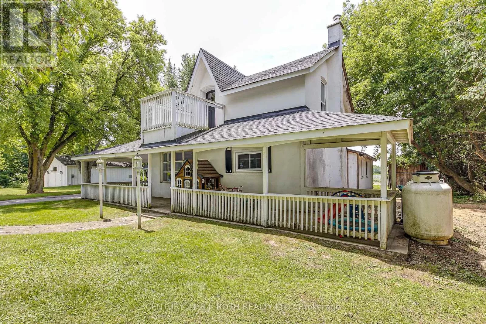 Cross Streets: Cty Rd 10 To Murphy Rd (Cty Rd. ** Directions: Denney to sign. Tranquil Century Home with Separate In-law Suite and Large Workshop. Nestled on a park-like setting overlooking a picturesque farm meadow. This spacious century home offers a unique blend of historical charm and modern amenities. Sitting on over half an acre of land with mature trees and a peaceful atmosphere. The farm size kitchen and large family room are the heart of the home. Upstairs you will find an expansive master with laundry and 3 piece bath. The Wrap-around Covered Porch and the Juliet Balcony adorn the main house. In the yard you'll find a beautiful gazebo, perfect for summer picnics. The main floor features a private 1 bedroom in-law suite, complete with its own entrance and deck ensuring privacy and convenience for guests or as a potential income. A large garage/workshop provides plenty of room for hobbies and storage. Landscaped grounds with mature trees create a serene backdrop, inviting relaxation and outdoor enjoyment. Additional storage space is provided by a sea can. This home is an oasis of tranquillity, offering a blend of modern functionality and the charm of yesteryears. Whether you're seeking a peaceful retreat for your family or considering income potential through hosting guests, this property offers comfort in a desirable countryside setting. Recent upgrades include some new windows 2018, Furnace fireplace and propane appliances 2018, Roof 2017 on house, reverse osmosis filter in kitchen (id:27476)