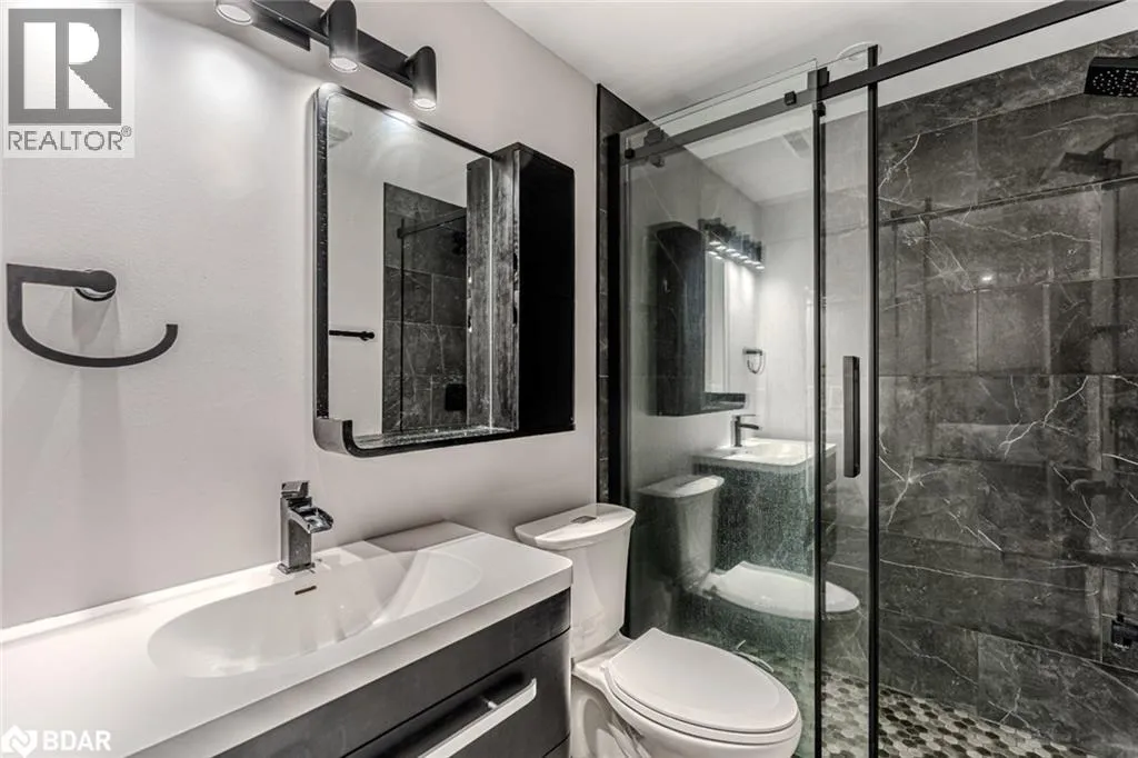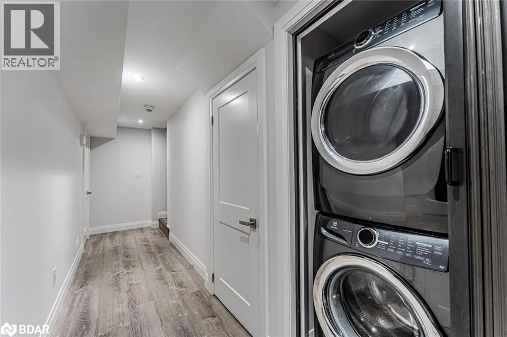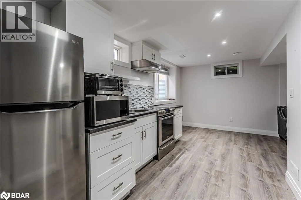 5th Line/Mike Hart Dr/Wagner Cres WELL-MAINTAINED BACHELOR SUITE WITH CONTEMPORARY FINISHES! Discover this all-inclusive, bright, and well-maintained lower-level bachelor-style suite with stylish finishes throughout. The sleek kitchen features stainless steel appliances, including a fridge, stove, microwave, and toaster, paired with timeless white shaker cabinetry, a tile backsplash, and a dual sink. A contemporary 3-piece bathroom features a glass shower and bold black fixtures, while an in-suite laundry area with a stacked washer and dryer, along with an extra closet, provides everyday convenience. Easy-care flooring and recessed lighting complete the space, with one parking spot, and all utilities covered except for the internet. Secure this well-maintained #HomeToStay and enjoy modern living made easy. (id:27476)