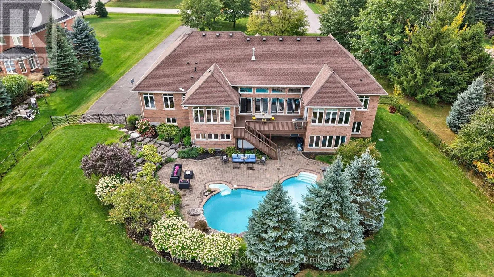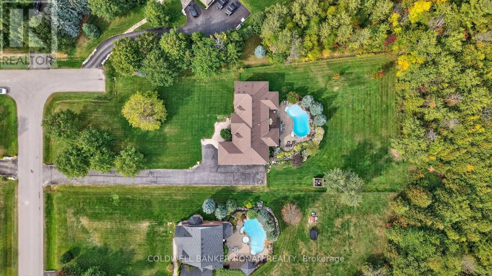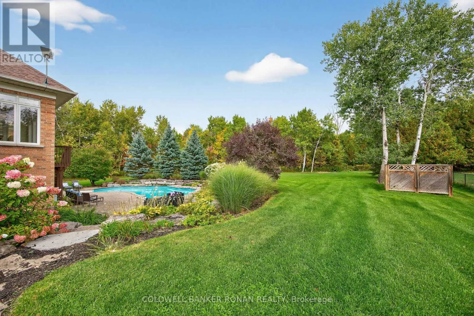 Cross Streets: 5th Sideroad & Underhill. ** Directions: hwy 89 to 5th sdrd to Underhill. This beautiful sprawling 4 plus 2 bedroom 5 bathroom executive bungalow with over 6000 sq ft of living space sits on a spectacular 1.2 acre lot backing onto forest & walking trails has it all! Rare opportunity as there hasnt been a house for sale in over 4 years in this very unique estate community. The long tree lined driveway large enough to fit all your big toys leads to a patterned concrete front entry & large covered porch, where inside you are greeted by a natural gas double sided fireplace & 9 foot ceilings.. The main floor features 4 bedrooms with access to ensuite bathrooms, a powder room, a formal dining room, main floor laundry with entrance from the side & the 3 car garage featuring wall racks & epoxy flooring, a bright open concept large eat-in kitchen with 2 islands, wall oven, pantry & flowing into the vaulted great room with multiple walk-outs leading to the deck. Downstairs, the fully finished walk-out basement has 2 more bedrooms, a bathroom, an office with custom built-ins, huge storage rooms, a huge cantina & multiple entertaining areas complete with pool table. Walk-out to your private gorgeous landscaped & fenced backyard oasis with an inground saltwater pool, hot tub & an in-ground sprinkler system. This lovely neighbourhood has 26.7 acres owned by the community & features many kilometres of private forested walking trails & a social committee that organizes fun events throughout the year . Located just outside Alliston & only 10 min to Hwy 400 & 45 min to Vaughan. Award winning Golf is 5 min away & ski hills & beaches are just a short drive away. (id:27476)