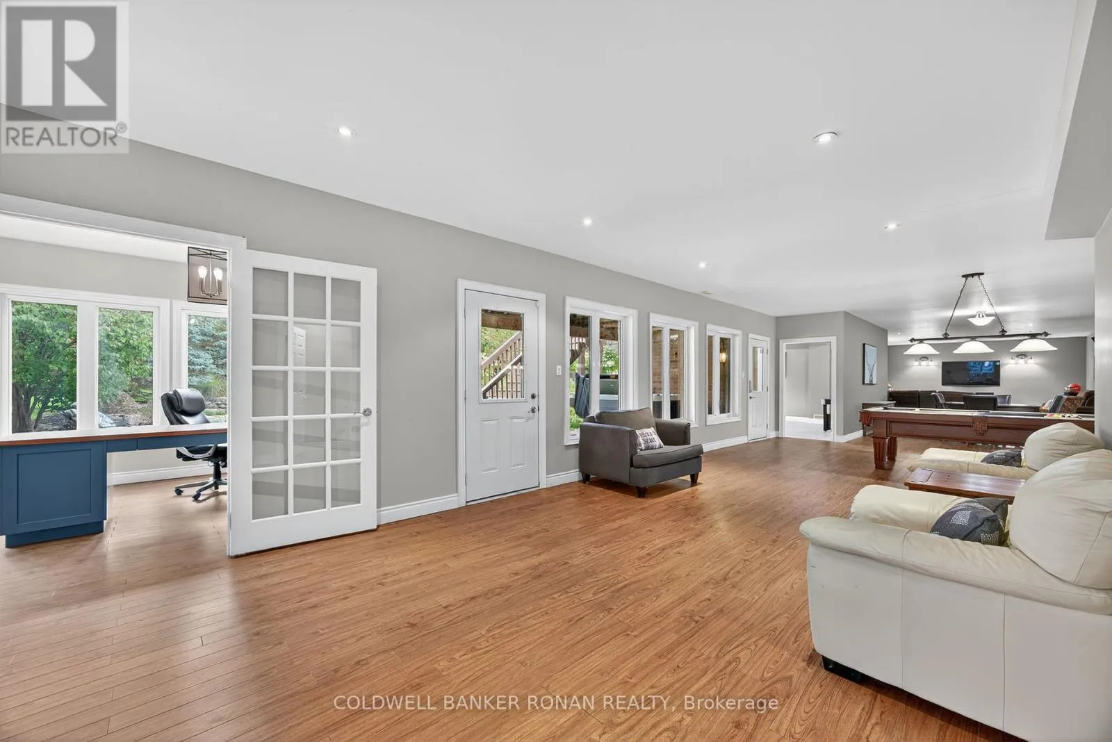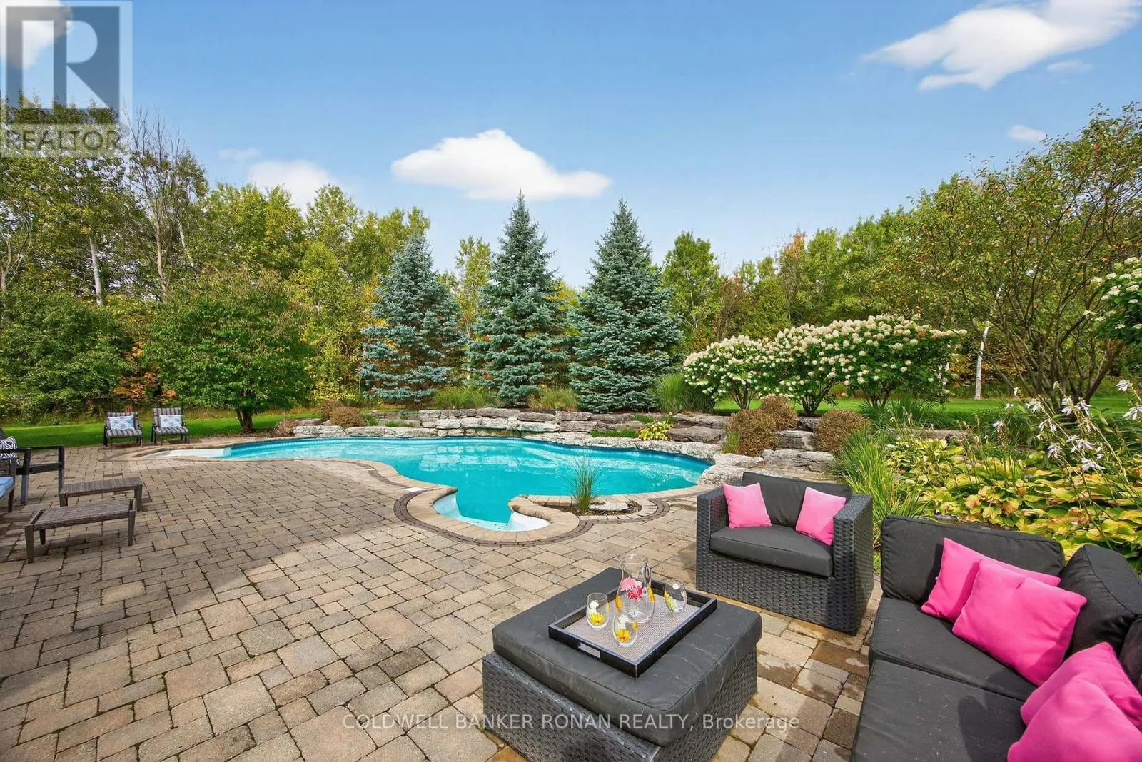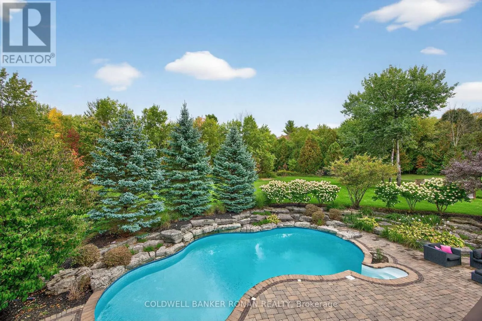 Cross Streets: 5th Sideroad & Underhill. ** Directions: hwy 89 to 5th sdrd to Underhill. This beautiful sprawling 4 plus 2 bedroom 5 bathroom executive bungalow with over 6000 sq ft of living space sits on a spectacular 1.2 acre lot backing onto forest & walking trails has it all! Rare opportunity as there hasnt been a house for sale in over 4 years in this very unique estate community. The long tree lined driveway large enough to fit all your big toys leads to a patterned concrete front entry & large covered porch, where inside you are greeted by a natural gas double sided fireplace & 9 foot ceilings.. The main floor features 4 bedrooms with access to ensuite bathrooms, a powder room, a formal dining room, main floor laundry with entrance from the side & the 3 car garage featuring wall racks & epoxy flooring, a bright open concept large eat-in kitchen with 2 islands, wall oven, pantry & flowing into the vaulted great room with multiple walk-outs leading to the deck. Downstairs, the fully finished walk-out basement has 2 more bedrooms, a bathroom, an office with custom built-ins, huge storage rooms, a huge cantina & multiple entertaining areas complete with pool table. Walk-out to your private gorgeous landscaped & fenced backyard oasis with an inground saltwater pool, hot tub & an in-ground sprinkler system. This lovely neighbourhood has 26.7 acres owned by the community & features many kilometres of private forested walking trails & a social committee that organizes fun events throughout the year . Located just outside Alliston & only 10 min to Hwy 400 & 45 min to Vaughan. Award winning Golf is 5 min away & ski hills & beaches are just a short drive away. (id:27476)