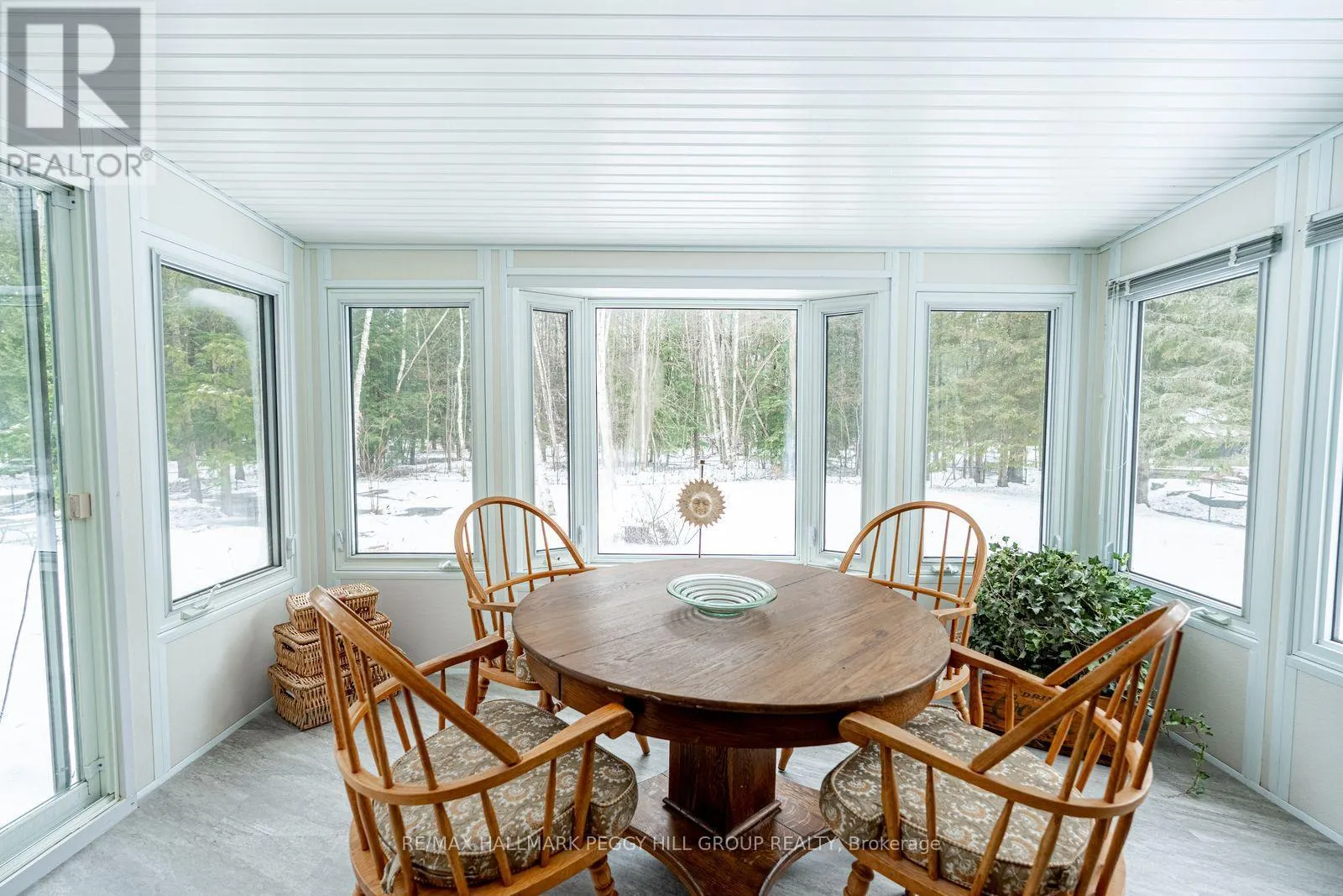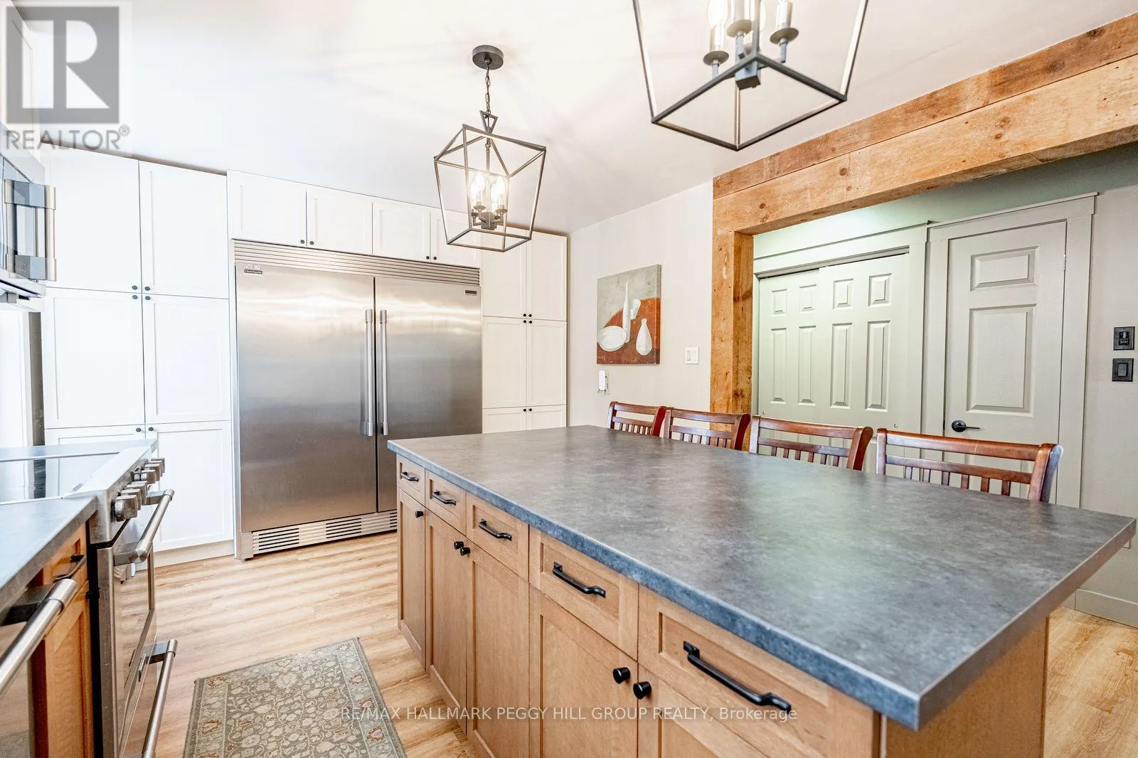 Cross Streets: 25th Sideroad/6th Line. ** Directions: County Rd 56/25th Sideroad/6th Line. DISTINGUISHED 2 ACRE ESTATE HIGHLIGHTING 4,400+ SQ FT WITH ADAPTABLE LIVING SPACES INCLUDING INDEPENDENT BASEMENT LIVING QUARTERS & A LOFT RETREAT! Located under 15 mins to Barrie with quick access to Hwy 400, this 2-acre property offers both natural seclusion and unbeatable convenience for commuters. Enveloped by mature trees with tranquil pond views, 7816 6th Line presents over 4,400 fin sq ft of exceptional living space designed to impress at every turn. The finished walkout basement unveils a kitchen, recreation room, bedroom, den, gym, and full bath, creating adaptable separate living quarters for extended family. Above the garage, a vaulted loft retreat with exposed beams, skylights, a private deck, and a separate entrance elevates the possibilities for a studio, guest hideaway, or inspiring workspace. At the heart of the home, the kitchen takes centre stage with striking two-tone cabinetry, a side-by-side stainless steel fridge and freezer, high-end appliances, subway tile backsplash, and a sprawling island. Formal and casual gathering spaces include a dining room perfect for entertaining, a living room with a fireplace, and a separate family room with its own fireplace and walkout. The 3-season sunroom invites serene moments with panoramic views of the forest and pond, while the main level also reveals a versatile office and a laundry room with storage and outdoor access. Completing the second floor is a tranquil primary suite with a 3-pc ensuite, two additional bedrooms, a stylish main 4-pc bath, and a sitting area. Practicality meets presence with a triple-wide driveway, an insulated 2-car garage, and a rare drive-through carport. This home is also equipped with a water softener, a central vacuum, and a premium geothermal heating and cooling system, delivering year-round comfort with exceptional energy efficiency and helping to lower utility expenses. This one-of-a-kind #HomeToStay delivers sophistication, space, and natural seclusion in equal measure. (id:27476)