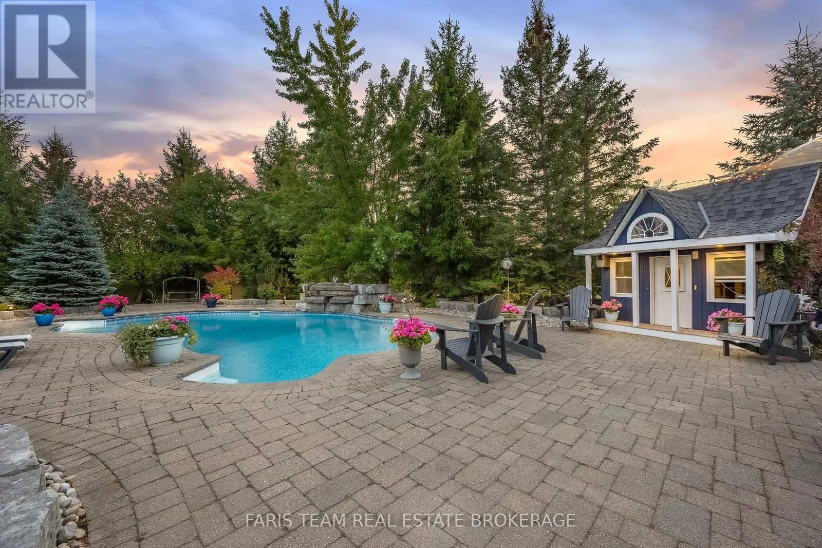 Henry St/Evergreen Ln Top 5 Reasons You Will Love This Home: 1) This expansive family home is designed for both space and function, featuring generous living areas, an oversized triple-car garage with soaring ceilings, and a driveway that accommodates up to 12 vehicles, ideal for hosting family and friends 2) Step into your own private resort with a heated inground pool, hot tub, sprawling stone patio, and multiple outdoor living spaces framed by mature trees, perennial gardens, a fire pit, and a custom playhouse with power and a doorbell 3) A utility garden shed adds extra storage at the back of the property, while smart-switch lighting throughout the home ensures both convenience and efficiency 4) Inside, modern finishes meet everyday comfort with 9' ceilings, hardwood and laminate flooring, quartz countertops, inviting fireplaces, and a bright open-concept layout designed for both cozy evenings and lively gatherings 5) Located in the charming village of Thornton, you'll enjoy peaceful small-town living with quick access to highways, south Barrie amenities, schools, and conveniences just minutes away. 3,302 above grade sq.ft. plus a finished basement. (id:27476)