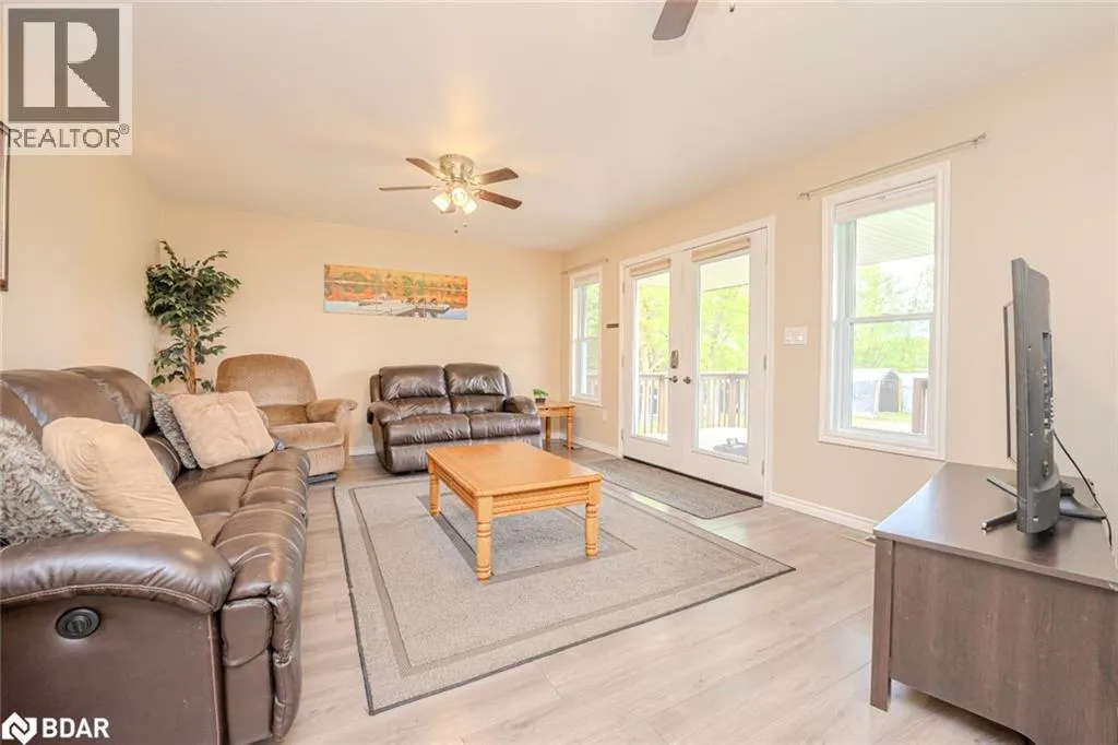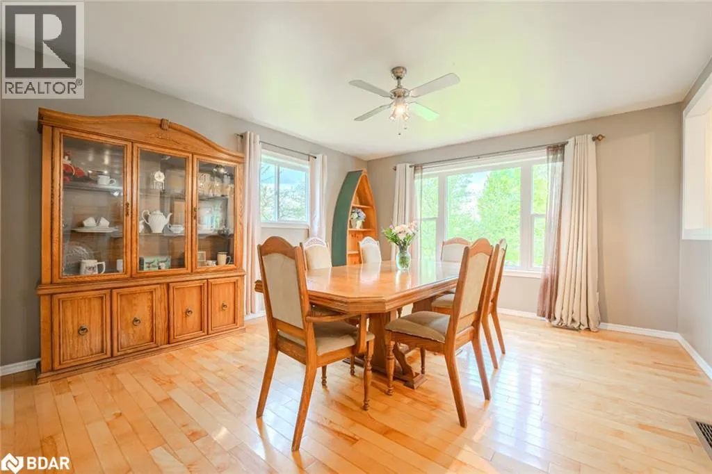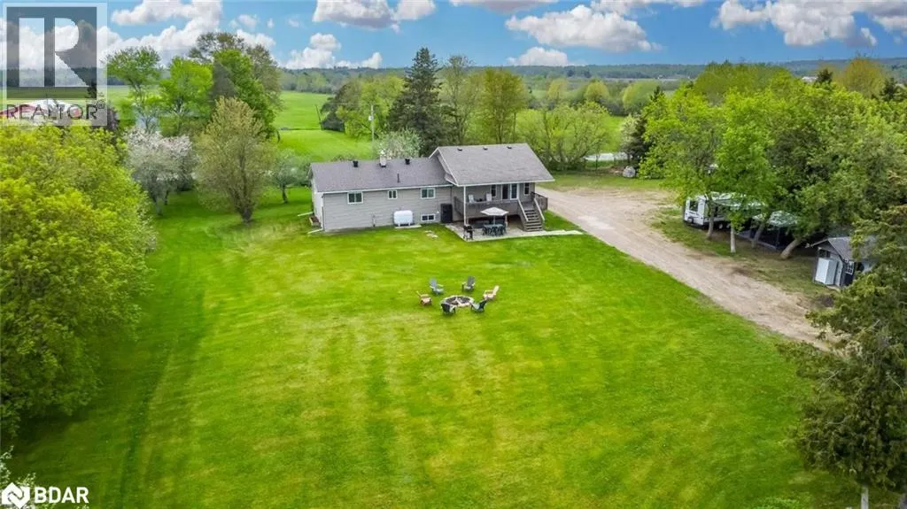 Highway 400/Highway 90/10th Line OVER 3,000 SQ FT BUNGALOW FEATURING IN-LAW POTENTIAL NESTLED ON 83.47 ACRES WITH WORKABLE LAND & MINUTES TO BARRIE! Nestled on an expansive 83.47 acres of fields and forest, this spacious bungalow offers a very private setting just a 5-minute drive from Barrie, close to golf courses and ski hills. Boasting agricultural and environmental protection zoning, the property features a diverse assortment of trees, including cherry, Cortland apple, lilac, crabapple, pear, McIntosh apple, and more. Approximately 35 acres of the land are dedicated to workable fields currently used as hay fields, while scenic walking trails wind through the forested areas, providing the chance to enjoy nature at its finest with an abundance of local wildlife. Step inside to discover over 3,000 square feet of finished living space, featuring hardwood and laminate flooring throughout most of the home. The generously sized eat-in kitchen presents ample cabinetry, stainless steel appliances, and a mosaic backsplash. The primary bedroom is complete with a walk-in closet and ensuite, while the main bathroom boasts a large soaker tub and separate shower. Descend to the finished basement, which features a separate entrance, in-law suite potential, and a bathroom rough-in. Enjoy the spacious covered back porch and patio area overlooking the tranquil property. Updates include newer shingles, attic insulation, a sump pump, and appliances. Multiple 100-amp electrical panels, a water softener, and a drilled well ensure convenience. With the included 8 x 10 shed for additional storage space, ample driveway parking for up to 20 vehicles, no rental items, and low property taxes, this property offers a rare opportunity to embrace country living without sacrificing convenience. (id:27476)