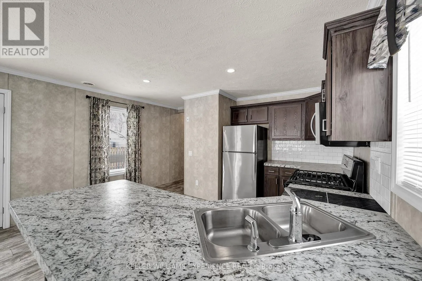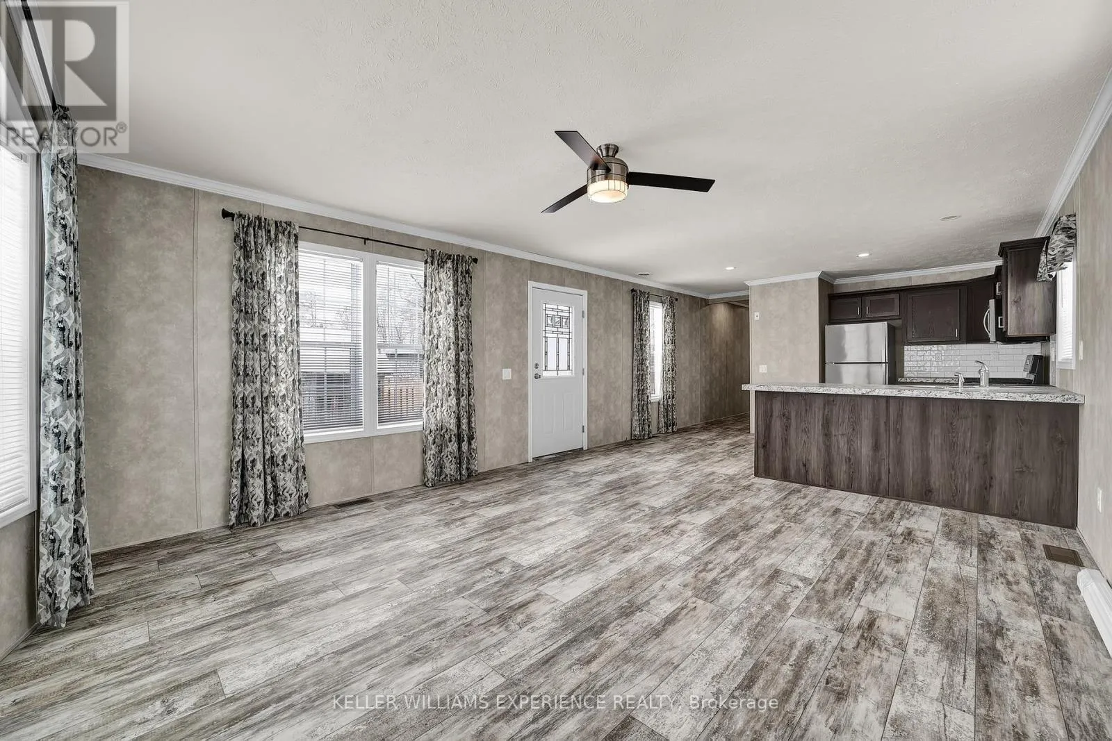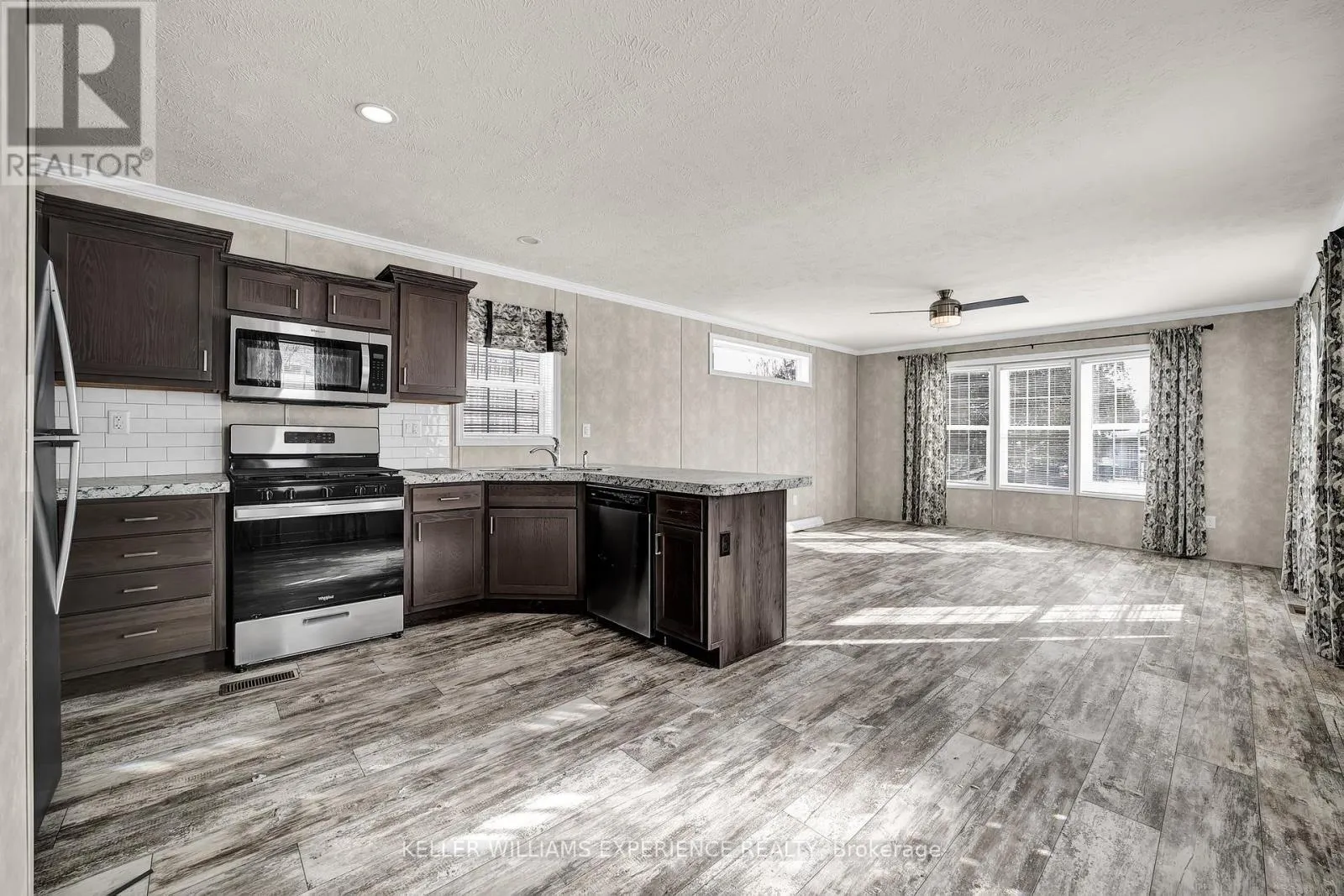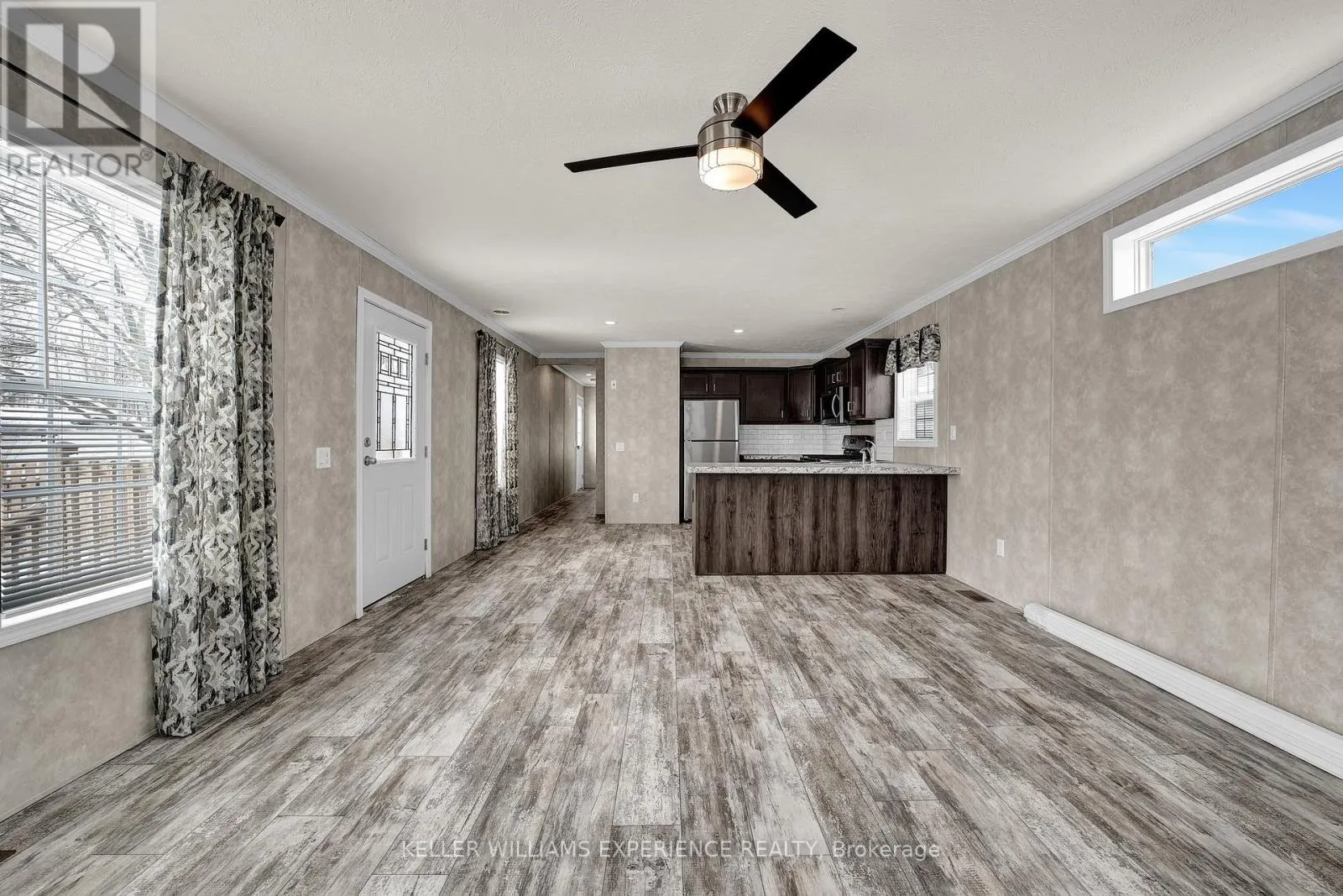 Cross Streets: COUNTY ROAD 10/25TH SIDEROAD. ** Directions: Cty Rd 10 to 25th Side Road to Shamrock Cres. This brand-new mobile home is situated in a quiet, well-maintained Angus park, offering a peaceful and convenient lifestyle. Built on a solid concrete pad with hurricane straps, this home is designed for durability and comfort. Step inside to discover a spacious, open-concept layout featuring a modern eat-in kitchen with sleek stainless steel appliances and stylish laminate flooring throughout - completely carpet-free! The home offers two generously sized bedrooms, a full bathroom with ample storage, and a walkout to 2 brand-new decks - front and back, overlooking a fully fenced yard on a generous lot. A new garden shed provides additional storage space, while the double driveway adds extra convenience. All appliances are brand new, including a gas dryer. Located just minutes from all amenities, with quick access to Angus, Base Borden, and Alliston, this home is perfect for those seeking comfort, style, and easy living. Fees $511.52/Month include taxes, water, and road maintenence. Don't miss this fantastic opportunity - schedule your viewing today! (id:27476)