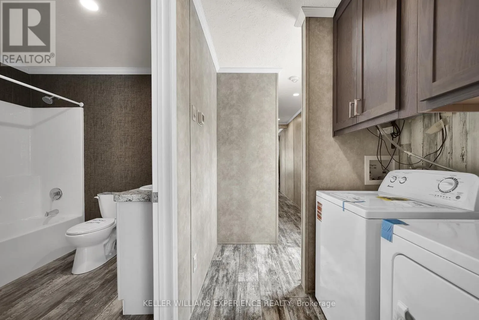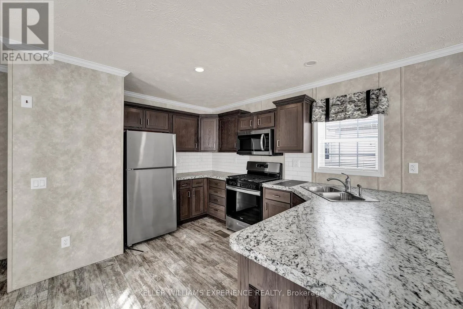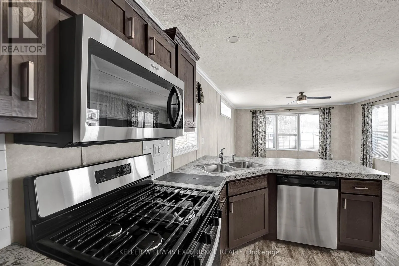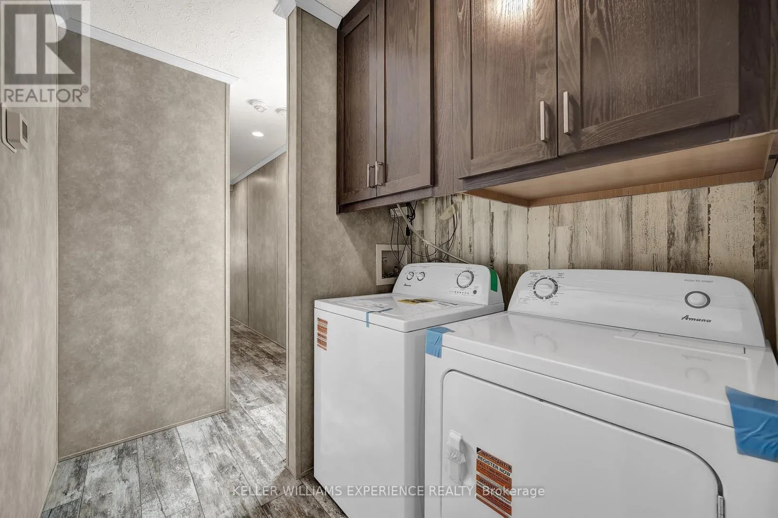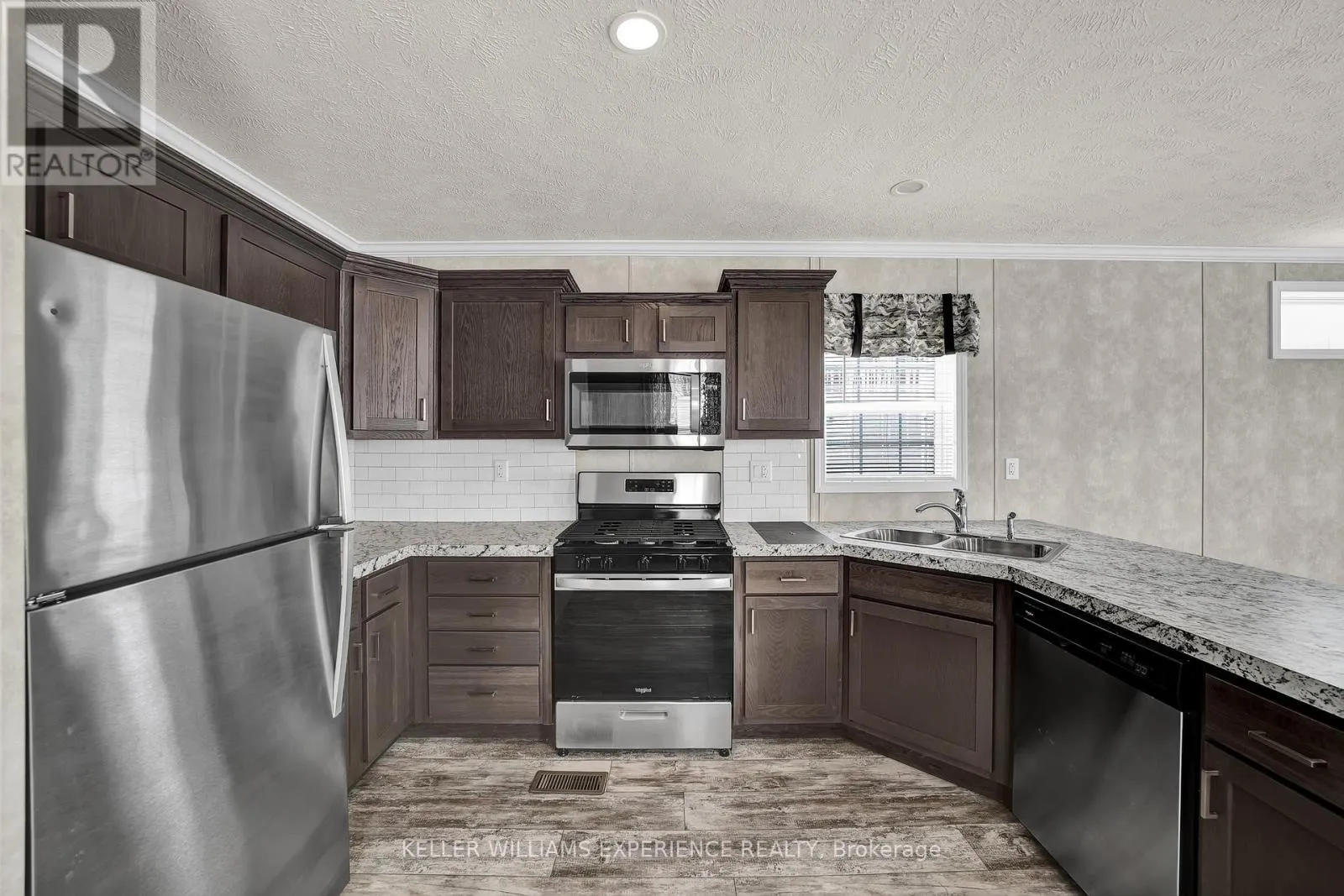 Cross Streets: COUNTY ROAD 10/25TH SIDEROAD. ** Directions: Cty Rd 10 to 25th Side Road to Shamrock Cres. This brand-new mobile home is situated in a quiet, well-maintained Angus park, offering a peaceful and convenient lifestyle. Built on a solid concrete pad with hurricane straps, this home is designed for durability and comfort. Step inside to discover a spacious, open-concept layout featuring a modern eat-in kitchen with sleek stainless steel appliances and stylish laminate flooring throughout - completely carpet-free! The home offers two generously sized bedrooms, a full bathroom with ample storage, and a walkout to 2 brand-new decks - front and back, overlooking a fully fenced yard on a generous lot. A new garden shed provides additional storage space, while the double driveway adds extra convenience. All appliances are brand new, including a gas dryer. Located just minutes from all amenities, with quick access to Angus, Base Borden, and Alliston, this home is perfect for those seeking comfort, style, and easy living. Fees $511.52/Month include taxes, water, and road maintenence. Don't miss this fantastic opportunity - schedule your viewing today! (id:27476)