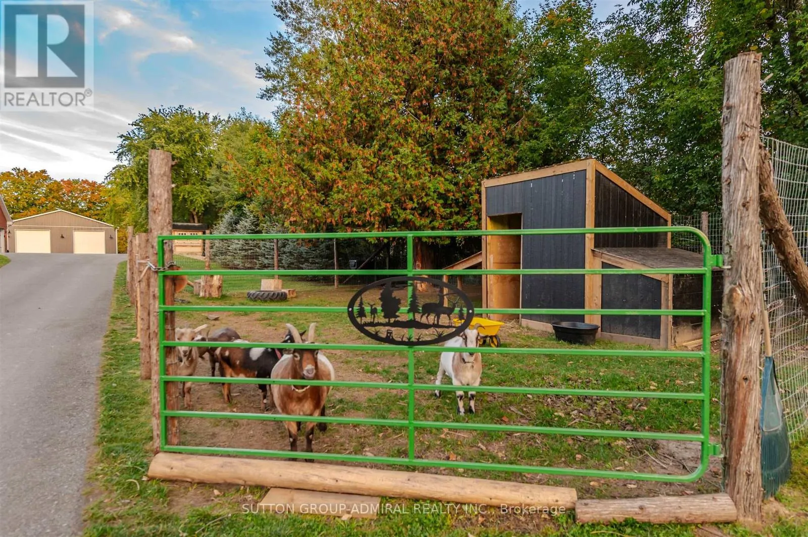 19TH SDRD/DENNEY DRIVE Charming Brick Bungalow on 10 Acres with Incredible Workshop & Outdoor Living, ideal for car enthusiasts, contractors or anyone craving space and privacy. This property is a rare opportunity offering both a comfortable home and a massive workshop. Professionally engineered structure with 16 ft ceilings, equipped with a 200 amp service and features 3 oversized 14' by 14' garage doors, 1 additional 10' 12' door, and 2 metal man doors. Endless potential for storage or hobby use. The interior of the home features 3 spacious bedrooms floor plus 3 fully renovated bathrooms on the main level. Open-concept family room with electric fireplace, pot lighting and hardwood floors. Generous kitchen with center island, breakfast bar, and large eating area with walk-out to deck. Partially finished lower level with additional bedrooms, 4-piece bathroom and flexible space to create a large recreational room, games area, or home gym with separate entrance via garage. Professionally landscaped with garden beds, composite deck and flagstone firepit area. Huge approx. 1200 sq.ft. aggregate concrete patio-perfect for entertaining. Interlock front walkway with 80mm pavers. Chicken coop with run & power plus goat pen with coop- ideal for a mini hobby farm. Attached double car garage and expansive asphalt driveway with ample parking for multiple vehicles. Great location, approximately 15 minute drive to highway 400! Whether you are looking for peaceful rural living or need a property with a serious workshop space, this one-of-a-kind bungalow checks all the boxes. Don't miss your chance to make this exceptional property yours! (id:27476)