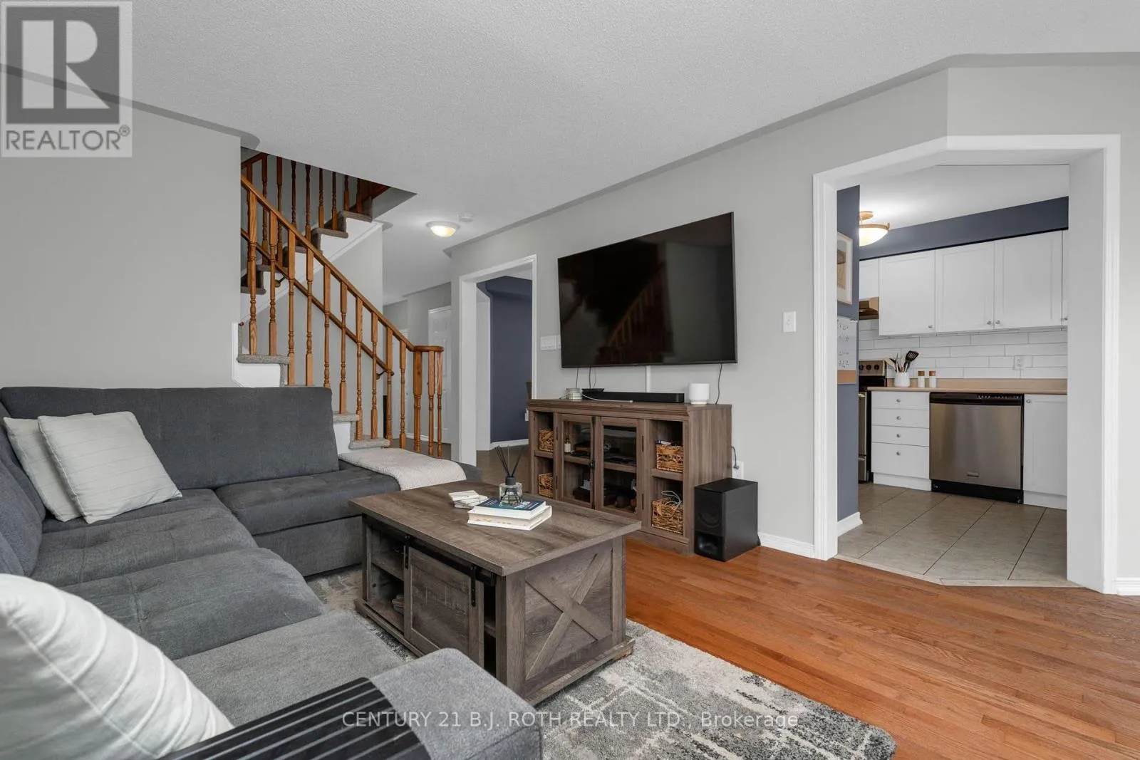 Cross Streets: Gold Park/Greenwood/Mccann. ** Directions: Centre St to Greenwood to Maplewood to McCann. This 3+1 bedroom end-unit townhome, attached only at the garage, is located in the heart of the Essa. The open-concept layout includes a foyer with a large closet, garage access, hardwood floors, and ample natural light throughout. The kitchen offers stainless steel appliances, backsplash, breakfast area, and plenty of cabinetry. The living room features a gas fireplace and walkout to a private backyard with patio. The primary bedroom includes an ensuite and walk-in closet. There are 2 additional bedrooms, a 4 piece bath and the laundry on this level. The finished basement provides a large recreation room, additional bedroom 3 piece bath, and generous storage. Within walking distance to a park and close to all amenities, be sure to book your showing today! (id:27476)
