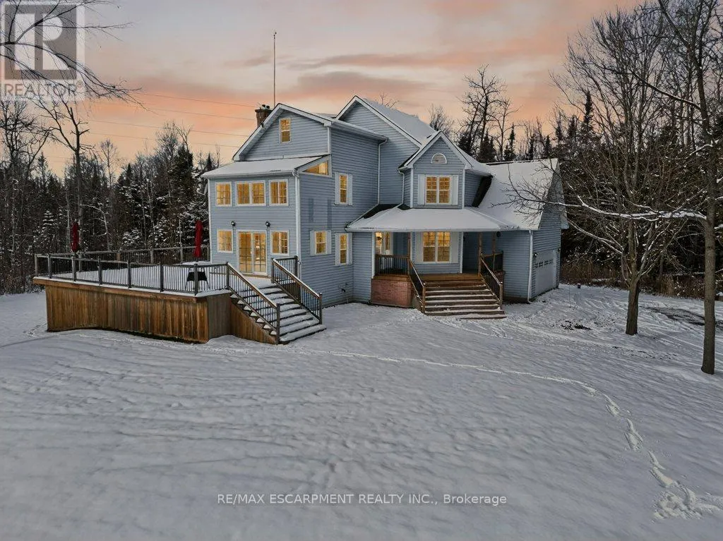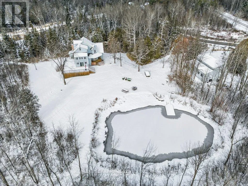 Cross Streets: Country Rd 10 and 20th Sideroad. ** Directions: North from Baxter or South from Angus. Fantastic opportunity to own this newly renovated rural family home offering over 3,000 sq ft of living space with3+1 beds, 3.5 baths. Recent updates include a brand new white kitchen, quartz countertops, updated bathrooms, new flooring, freshly painted throughout, new main floor fireplace, a completely drywalled attic as a bonus space, fully insulated and drywalled, ready for your finishing touches. The bright and spacious main floor features a welcoming family room, eat-in kitchen with breakfast area, sunroom, office, laundry room, and a convenient 2pc powder room. Access to a mud room and an attached garage with loft storage. Upstairs, you'll find three generous sized bedrooms and a full 4pc main bath. The primary suite offers a 3pcensuite, and forest views from every window. The walkout basement provides excellent extra living space with an eat-in kitchen, large living room, bedroom, and a 4pc bathroom, ideal for extended family, guests, or rental possibilities. Situated on 8.6 acres of pure privacy, the home offers gorgeous forest views from every window without feeling enclosed, just the perfect balance of nature and open space. Enjoy trails throughout the property for walking, exploring, or whatever adventure means to you. A 14ft deep pond with beach area and a dock adds to the outdoor retreat feel. A two storey 1,000 sq ft detached shop with propane heat offers endless possibilities for hobbies or storage. Part of the frontage faces the railroad. (id:27476)