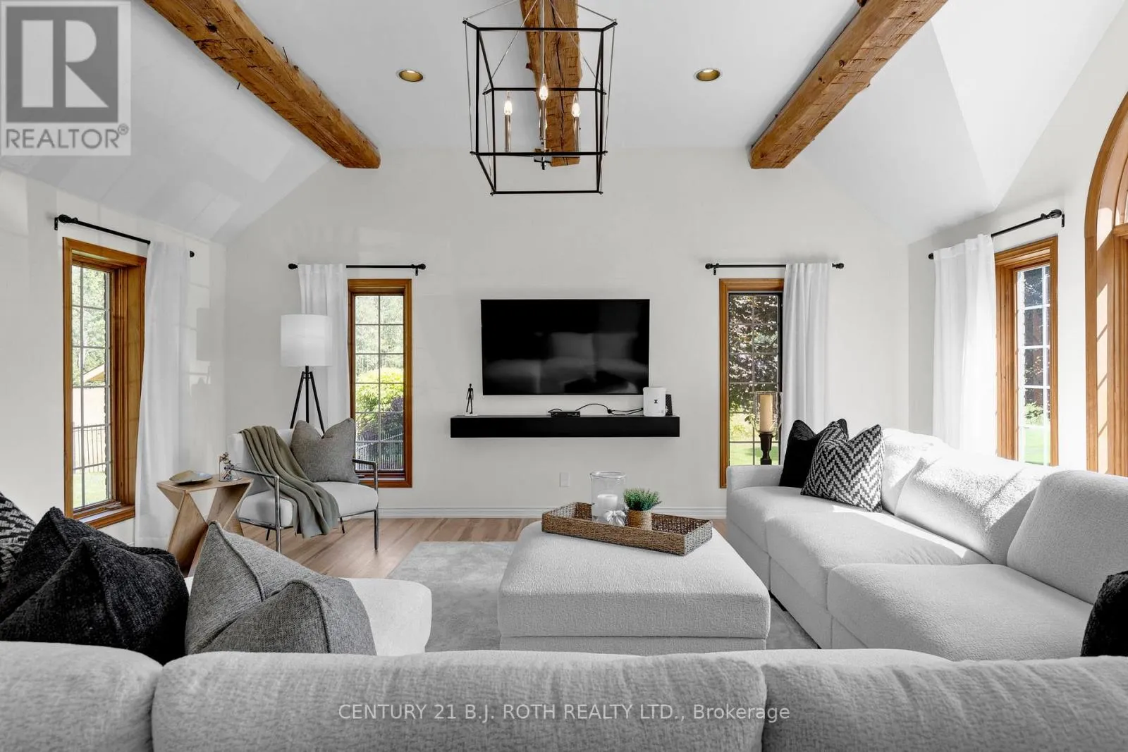 19TH SIDE ROAD / DENNEY Introducing 256 Denney Drive, a beautifully crafted residence nestled on a nearly 2 acre private, professionally landscaped lot in one of Essa's most desirable neighborhoods. This exquisite property offers the perfect blend of elegance, space, and tranquility, making it a true sanctuary just minutes from Barrie, Angus, and Alliston. Spanning over 3,500 sq. ft. of finished living space, this stunning home features 4+1 bedrooms and 4 bathrooms, thoughtfully designed to accommodate both family living and stylish entertaining. As you arrive, a generous driveway welcomes you, leading to an oversized garage -- ideal for vehicles, storage, and workshop needs. Mature trees and lush landscaping frame the home, offering both privacy and striking curb appeal. Step inside to discover a residence where pride of ownership is immediately evident. The timeless color palette, paired with custom finishes throughout, sets a warm and inviting tone. The gourmet kitchen boasts elegant cabinetry, a charming bay window, and direct access to an expansive patio -- perfect for hosting gatherings or enjoying serene morning coffees. The living room is truly the heart of the home, featuring soaring 12' ceilings, exposed natural wood beams, and a stunning chandelier surrounded by large windows that flood the space with natural light. Downstairs, a fully finished basement expands your living potential, offering a large rec room, additional bedroom, and ample space to customize to your needs -- whether its a home gym, office, or media room. Step outside and unwind in your private backyard oasis, complete with a beautiful inground pool, surrounded by mature landscaping that creates a resort-like atmosphere all summer long. 256 Denney Drive is more than a home -- its a lifestyle. If you're seeking space, privacy, and understated luxury in a prime location, this property is a must-see. Don't miss this exceptional opportunity to own a truly one-of-a-kind home in Essa. (id:27476)