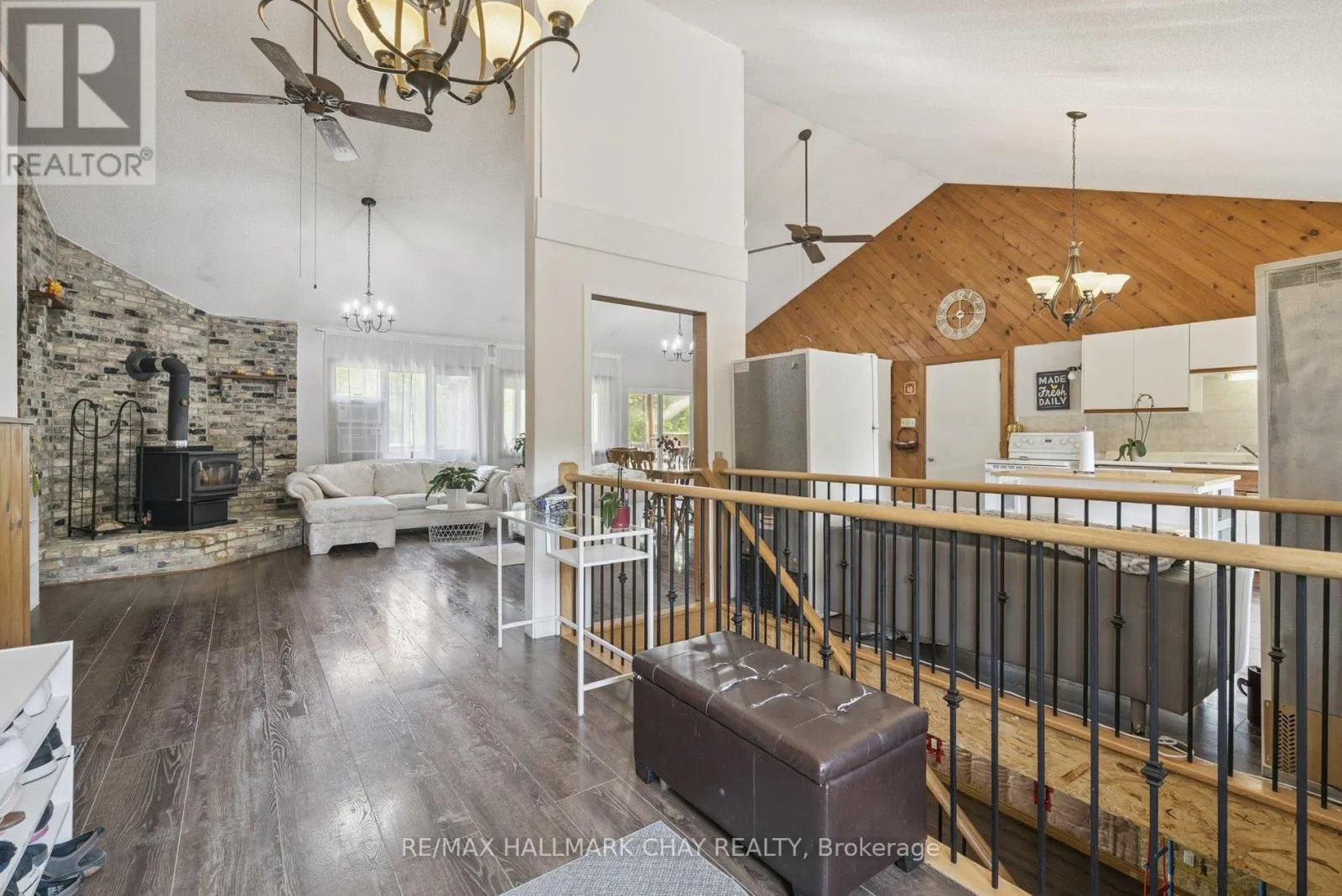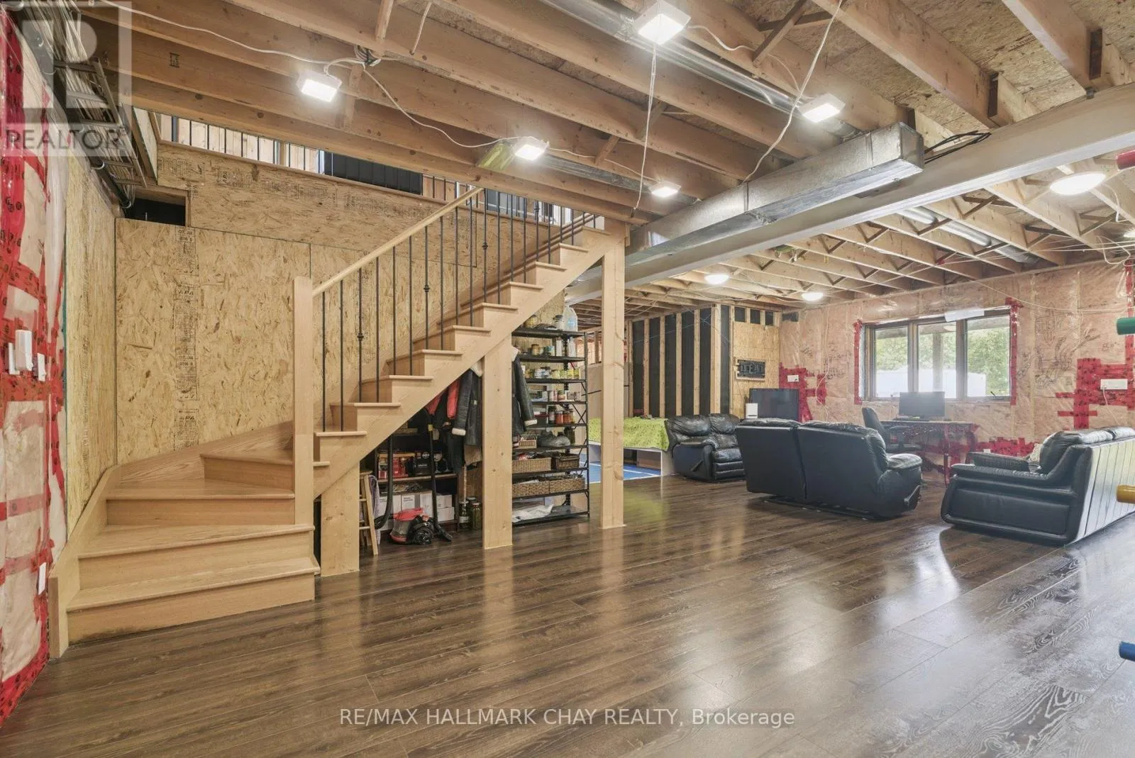 Cross Streets: Hw 90/County Rd 10 Before 20th St. ** Directions: Hwy 90/Cty Rd 10 before 20th Sd Rd. Rare 1.84-Acre Bungalow Offering Space, Privacy, And Outstanding Future PotentialSet On A Sprawling 200 X 400 Ft Lot In The Heart Of Peaceful Essa Township, This Exceptional Property Delivers The Kind Of Space And Opportunity That Is Increasingly Hard To Find. Enjoy The Freedom Of Nearly Two Acres Of Land While Remaining Just Minutes To Schools, Hospital, Shopping, Golf, And The Scenic Nottawasaga River Trail.Surrounded By Mature Trees, The Home Offers A Private, Estate-Like Setting With An Expansive Wrap-Around Deck Ideal For Entertaining, Family Gatherings, Or Quiet Evenings Outdoors. An Extra-Wide Driveway, Metal Roof, And Oversized Two-Car Garage With Loft Or Lift Potential Provide Practicality And Room To Grow.Inside, The Open-Concept Main Floor Features Vaulted Ceilings, Warm Wood Accents, Laminate Flooring, And A Cozy Wood-Burning Fireplace That Anchors The Living Space. The Bright Kitchen With Eat-In Area And Enclosed Porch Walkout Seamlessly Connects Indoor And Outdoor Living. The Primary Suite Offers A Walk-In Closet, Five-Piece Semi-Ensuite, And A Private Deck Walkout Overlooking The Grounds. Three Additional Bedrooms-Including One With Laundry And Walkout-Complete The Level.The Partially Finished Basement Boasts Approximately 10-Foot Ceilings, Three Separate Entrances, And Direct Garage Access-An Ideal Layout For An In-Law Suite, Rental Opportunity, Or Multi-Generational Living.With Essa Zoning Allowing Up To Two Additional Residential Units (ARUs), Subject To Municipal Approvals, This Property Presents Exceptional Upside For Those Seeking To Create Value, Expand Living Options, Or Invest In A Versatile Rural Holding. A Truly Unique Opportunity Offering Land, Lifestyle, And Long-Term Potential-All Within Easy Reach Of Everyday Amenities. (id:27476)