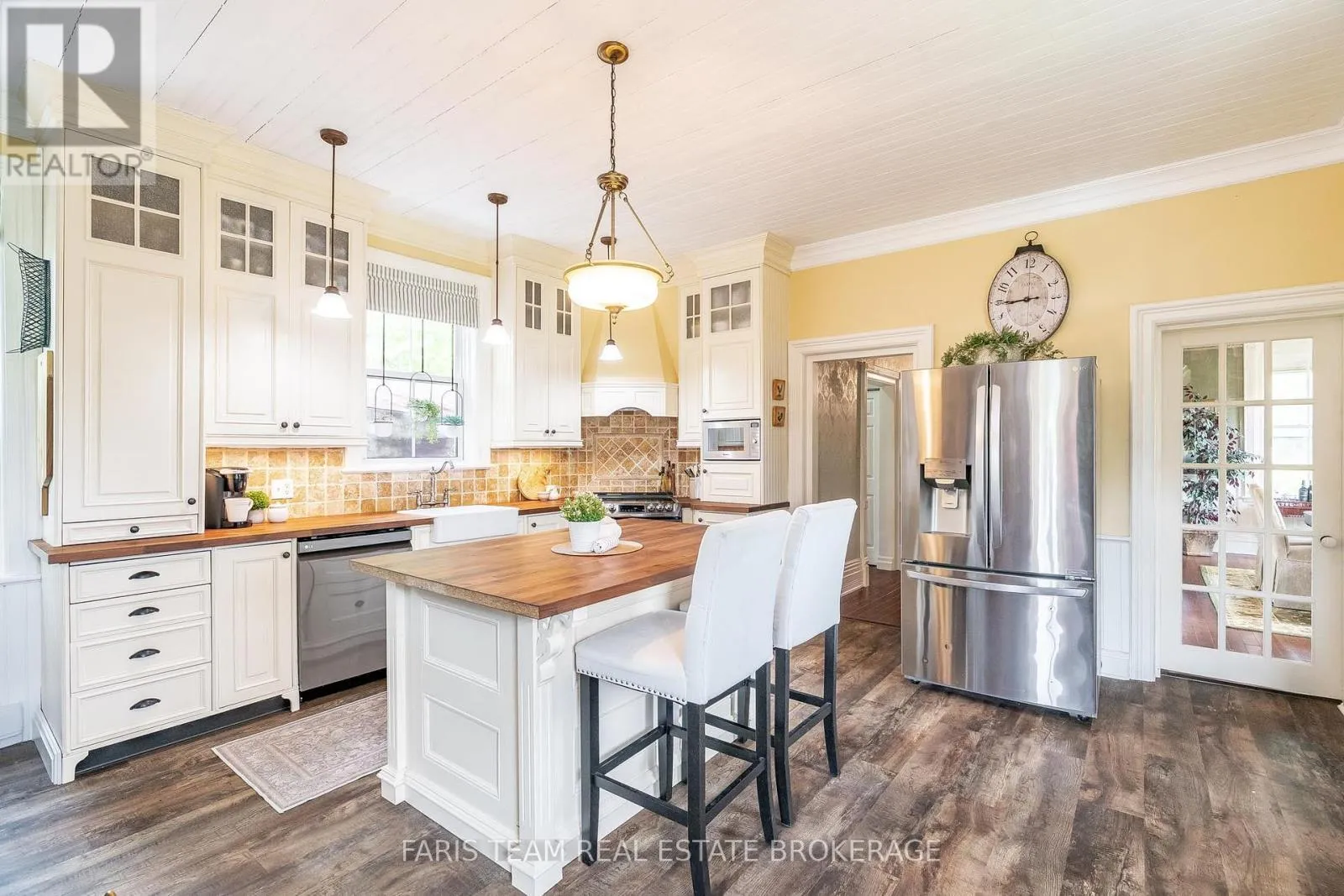 5th Side Rd/County Rd 56 Top 5 Reasons You Will Love This Home: 1) Venture into a piece of history with this timeless century home, originally built in 1883, featuring beautifully preserved architectural details, including wainscoting, crown moulding, ceiling medallions, and a striking cranberry-stained glass front door 2) Designed for elegant entertaining, the home delivers formal dining and living spaces, with the living room anchored by custom white built-ins and a cozy fireplace that invites warm gatherings 3) The main level combines heritage charm with thoughtful updates, including a convenient laundry area and a stylishly renovated bathroom complete with a walk-in shower, updated tile work, and classic wainscoting 4) At the heart of the home, the kitchen impresses with tall cabinetry that reaches the high ceilings, a generous island, stainless steel appliances, and the rustic touch of a wood stove for added warmth and character 5) Escape to your own private outdoor sanctuary in the beautifully landscaped backyard, featuring two gazebos and lush greenery, all tucked away just minutes from the hospital and everyday amenities including the Nottawasaga Inn, golf courses, Walmart, grocery stores, shops, restaurants, and a short drive to Highway 400. 2,359 above grade sq.ft. plus a crawlspace. (id:27476)