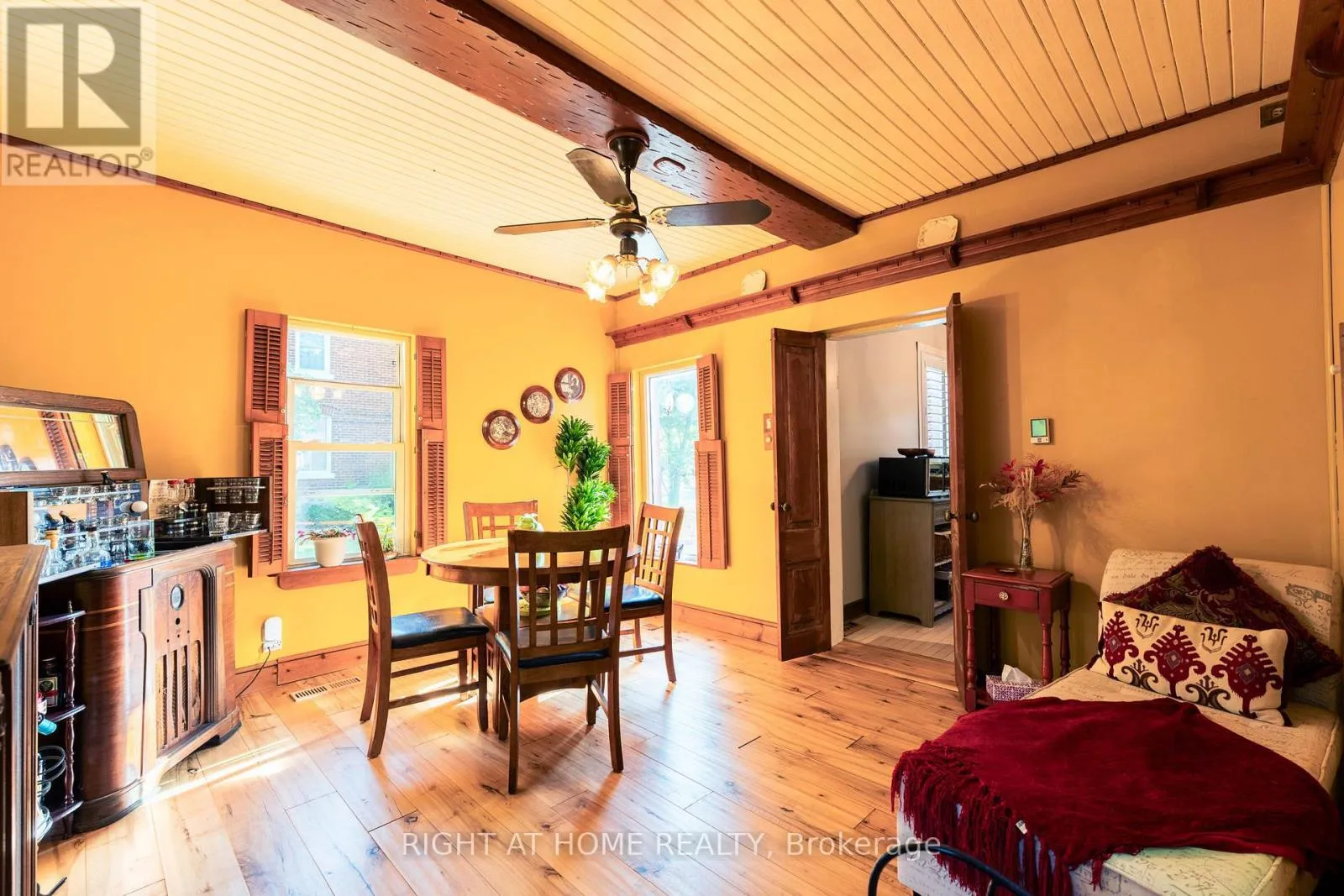 Cross Streets: Innisfil Beach Road. ** Directions: William Street / Barrie Street. Welcome to this charming century home, where soaring 9-foot ceilings and timeless character create an inviting first impression. Rich with history and warmth, the home showcases unique brick flooring, one-of-a-kind tin ceilings, and classic wood mouldings. The kitchen is full of old-world charm, featuring custom wood-detailed ceilings, craftsman-style cabinetry, and abundant natural light. Just off the kitchen, the cozy dining room with heated floors offers the perfect setting for family meals and intimate gatherings. The bright and welcoming living room highlights hardwood floors and elegant California shutters, blending comfort with style. Completing the main floor is a spacious 4-piece bathroom with heated floors, a separate shower, and a luxurious bubble tub. An added convenience the main floor laundry room provides direct access to the backyard oasis-ideal for both everyday living and entertaining. Upstairs, the spacious primary bedroom features a private 2-piece ensuite and an oversized attached den, perfect for a home office, reading nook, or walk-in closet. Two additional well-sized bedrooms complete the upper level, offering flexibility for family or guests. Step outside to the true showpiece of the property: an expansive backyard oasis. Enjoy a thoughtfully designed courtyard, tranquil water feature, mature gardens, and towering trees. For hobbyists or outdoor enthusiasts, the impressive 24' x 20' workshop provides endless possibilities-ideal for storing toys and tools, or transforming into a studio or creative retreat. Located just minutes from local amenities and a short drive to Barrie or Innisfil, this home seamlessly blends rural charm with modern convenience. And as a delightful bonus, you're only a short walk to the beloved local ice cream parlour and community centre.Recent updates include: Main House Roof (2025/2022), House, Workshop Roof (2022), Hot Water Tank (Owned, 2023), Painted Workshop (2025), Gas Furnace (2021) (id:27476)