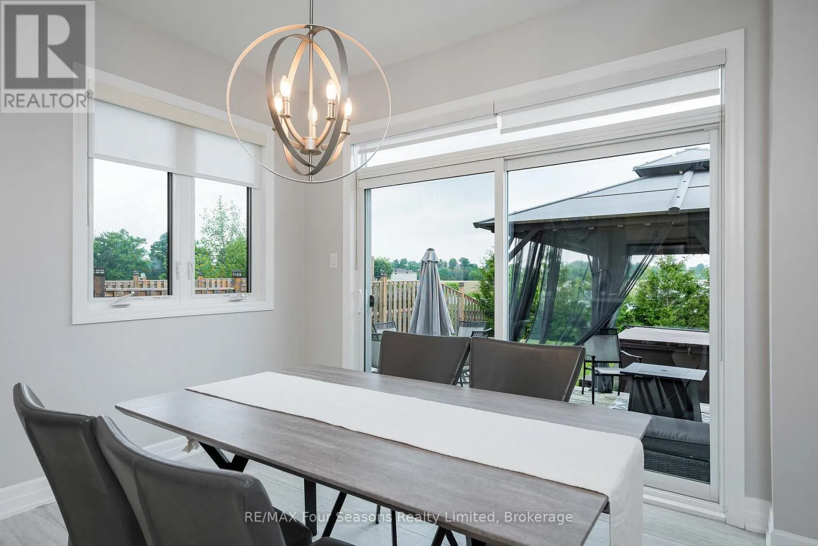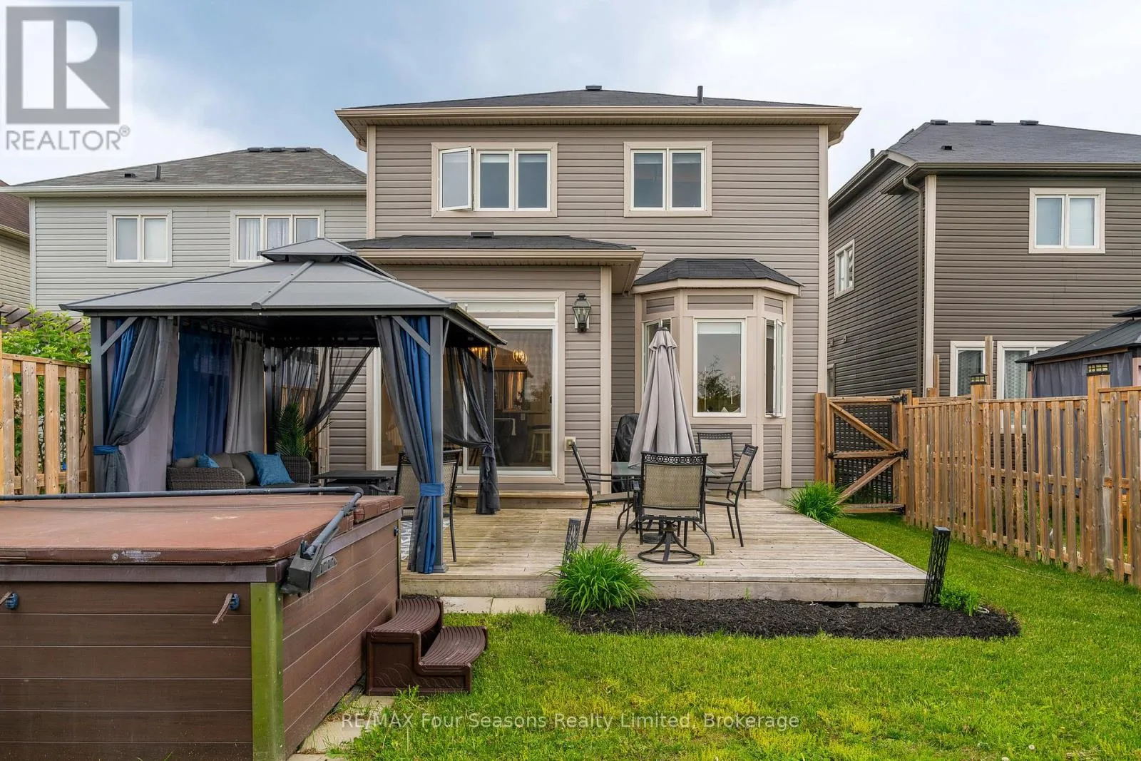 Cross Streets: Fifth Line, Mike Hart. Wagner. ** Directions: 5th Line to Mark Hart Drive, Left on Wagner to #29. Elegance Meets Comfort with no Neighbours behind! Discover this stunning 4-bedroom, 3-bathroom ( Rough In for 4th Bath in Basement) home offering 2322 space) of thoughtfully designed finished living space in a highly sought-after, family-friendly neighborhood. Surrounded by scenic community parks, serene trails along the Nottawasaga River, and just minutes from shopping, schools, and essential amenities, this property offers the perfect balance of lifestyle and convenience. Sun drenched rooms with soaring 9-foot ceilings create a bright, open atmosphere. This home features numerous upgrades throughout and seamlessly combines style and functionality FEATURES: 1~Modern Kitchen~*upgraded cabinetry *sleek glass inserts *quartz countertops *spacious island *stainless steel appliances *gas stove/ hood fan *walk in pantry *undermount lighting *quartz back splash *12 X 24 ceramic tile *Walk out from breakfast area (8ft patio door) to spacious deck (21X21 ft) with gazebo 2~Spacious Great Room~ *impressive oak staircase *upgraded durable laminate *tasteful light fixtures *pot lights *linear fireplace with custom built ins *bright bay window with cozy window seat 3~ Private Primary Suite~ *luxurious retreat with scenic views *5 pc Ensuite *double sinks *quartz countertops *luxurious soaker tub *separate shower/glass door *walk in closet 4~Second Floor~ 3 additional bright bedrooms *4 pc Bath *double linen closets *pot lights 5~ Professionally fin. lower level (oversized windows) is perfect for entertaining and recreational activities (create a lower level spa/ rough in for 4th bath) 6~Convenient Main Floor~ *powder room *laundry room *mud room with inside entry to double garage and parking for 3 cars in driveway (no sidewalk) * Custom 8ft barn door closet treatment in front foyer. This premium lot offers incredible curb appeal, enhanced privacy with no rear neighbors, beautiful landscaping and a fully fenced backyard. (id:27476)