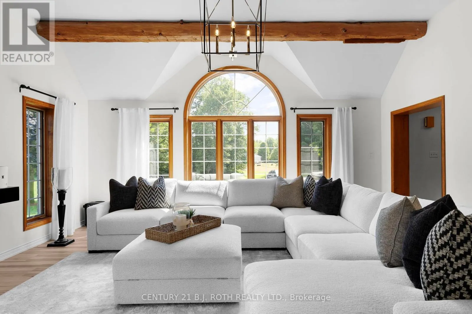 19TH SIDE ROAD / DENNEY Introducing 256 Denney Drive, a beautifully crafted residence nestled on a nearly 2 acre private, professionally landscaped lot in one of Essa's most desirable neighborhoods. This exquisite property offers the perfect blend of elegance, space, and tranquility, making it a true sanctuary just minutes from Barrie, Angus, and Alliston. Spanning over 3,500 sq. ft. of finished living space, this stunning home features 4+1 bedrooms and 4 bathrooms, thoughtfully designed to accommodate both family living and stylish entertaining. As you arrive, a generous driveway welcomes you, leading to an oversized garage -- ideal for vehicles, storage, and workshop needs. Mature trees and lush landscaping frame the home, offering both privacy and striking curb appeal. Step inside to discover a residence where pride of ownership is immediately evident. The timeless color palette, paired with custom finishes throughout, sets a warm and inviting tone. The gourmet kitchen boasts elegant cabinetry, a charming bay window, and direct access to an expansive patio -- perfect for hosting gatherings or enjoying serene morning coffees. The living room is truly the heart of the home, featuring soaring 12' ceilings, exposed natural wood beams, and a stunning chandelier surrounded by large windows that flood the space with natural light. Downstairs, a fully finished basement expands your living potential, offering a large rec room, additional bedroom, and ample space to customize to your needs -- whether its a home gym, office, or media room. Step outside and unwind in your private backyard oasis, complete with a beautiful inground pool, surrounded by mature landscaping that creates a resort-like atmosphere all summer long. 256 Denney Drive is more than a home -- its a lifestyle. If you're seeking space, privacy, and understated luxury in a prime location, this property is a must-see. Don't miss this exceptional opportunity to own a truly one-of-a-kind home in Essa. (id:27476)