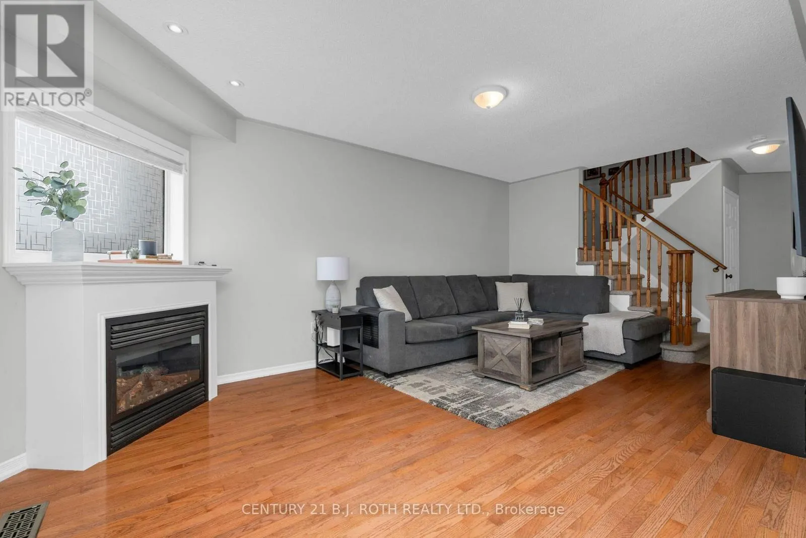 Gold Park/Greenwood/Mccann This well maintained 3+1 bedroom end-unit townhome-attached only at the garage-is ideally situated in the heart of Essa. The bright, open-concept main floor features a welcoming foyer with a large closet, convenient garage access, hardwood flooring, and abundant natural light throughout. The kitchen is equipped with stainless steel appliances, a stylish backsplash, a breakfast area, and ample cabinetry. The living room offers a cozy gas fireplace and a walkout to a private backyard with patio-perfect for relaxing or entertaining. Upstairs, the primary bedroom boasts a walk-in closet and a private ensuite. Two additional bedrooms, a full 4-piece bathroom, and convenient second-floor laundry complete this level. The fully finished basement adds excellent living space with a large recreation room, an additional bedroom, a 3-piece bathroom, and generous storage. Located within walking distance to a park and close to all amenities-this is one you won't want to miss. Book your showing today! (id:27476)
