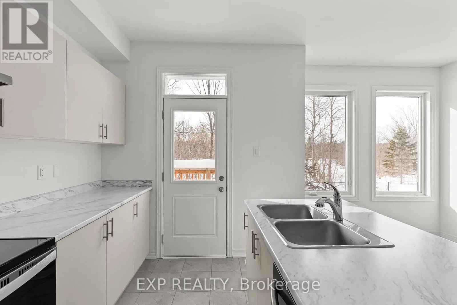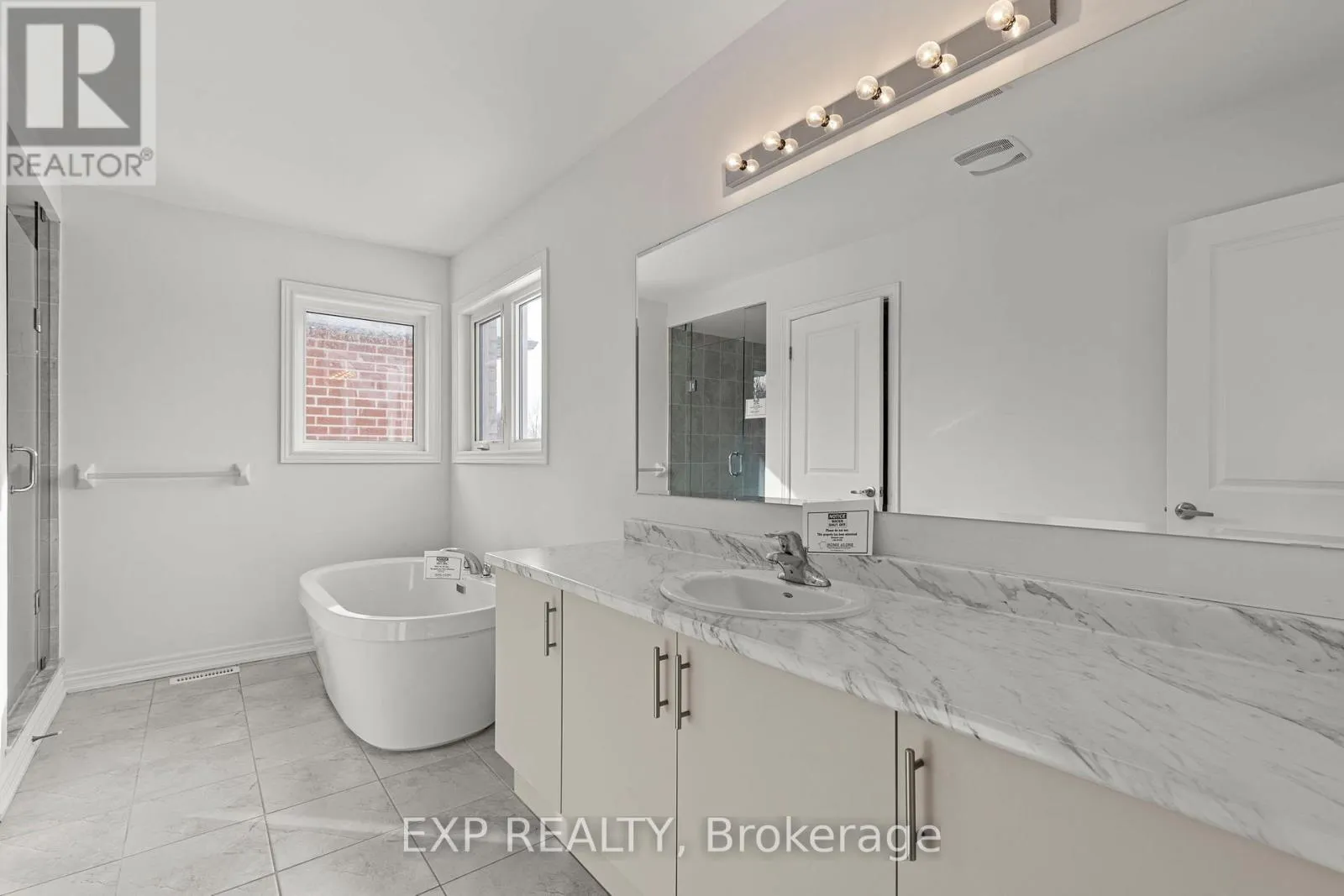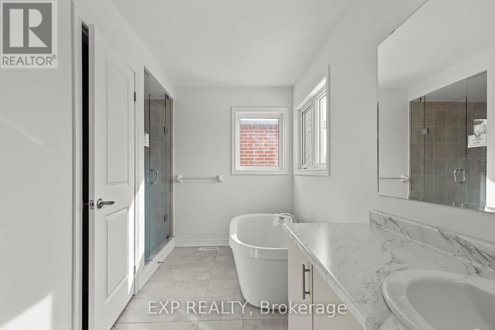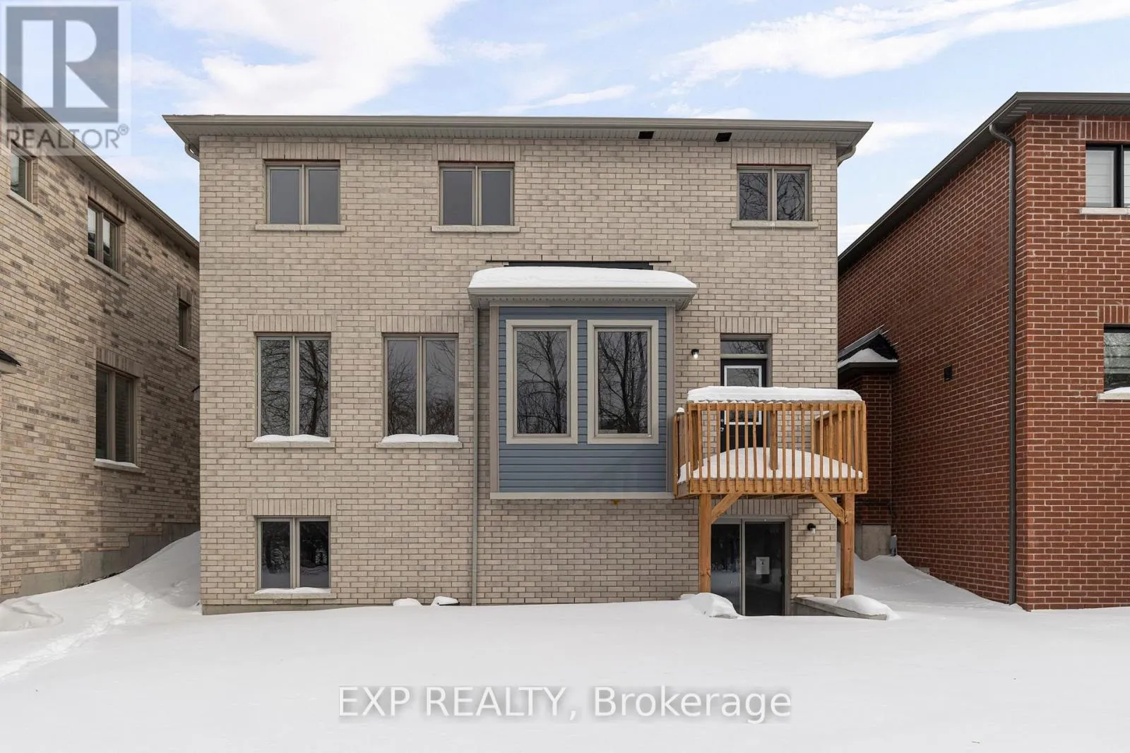 Centre St/Baycroft Blvd Newly built in 2024, this impressive two-storey home offers approximately 2,599 sq. ft. of above-grade living space, ideally positioned on a ravine lot with no direct rear neighbours. Located in a growing, modern community, the property combines contemporary construction with privacy and future potential. The main level features 9-foot ceilings and a bright, open-concept layout designed for both everyday living and entertaining. The kitchen flows seamlessly into the living area, anchored by a gas fireplace and complemented by hardwood and tile flooring throughout. A separate dining area and additional family space provide flexibility for hosting or home office use. Inside entry from the attached double-car garage adds everyday convenience, while the double-wide driveway accommodates multiple vehicles. Upstairs, the primary bedroom offers a walk-in closet and a well-appointed ensuite with an extended vanity, glass shower, and soaker tub. Two additional bedrooms with double closets are serviced by a full main bathroom with an extended vanity and tiled tub/shower. A second-floor laundry room with built-in cabinetry and utility sink completes the upper level. The unfinished lower level features full ceiling height, exposed steel beam construction, and an oversized window. With a walk-out to the backyard, this space presents excellent potential for future living area or recreational use. The all-brick exterior offers low-maintenance appeal, while the upper-level balcony overlooks the ravine setting. The unspoiled rear yard provides a blank canvas for landscaping or outdoor customization. (id:27476)