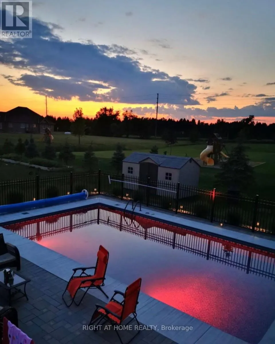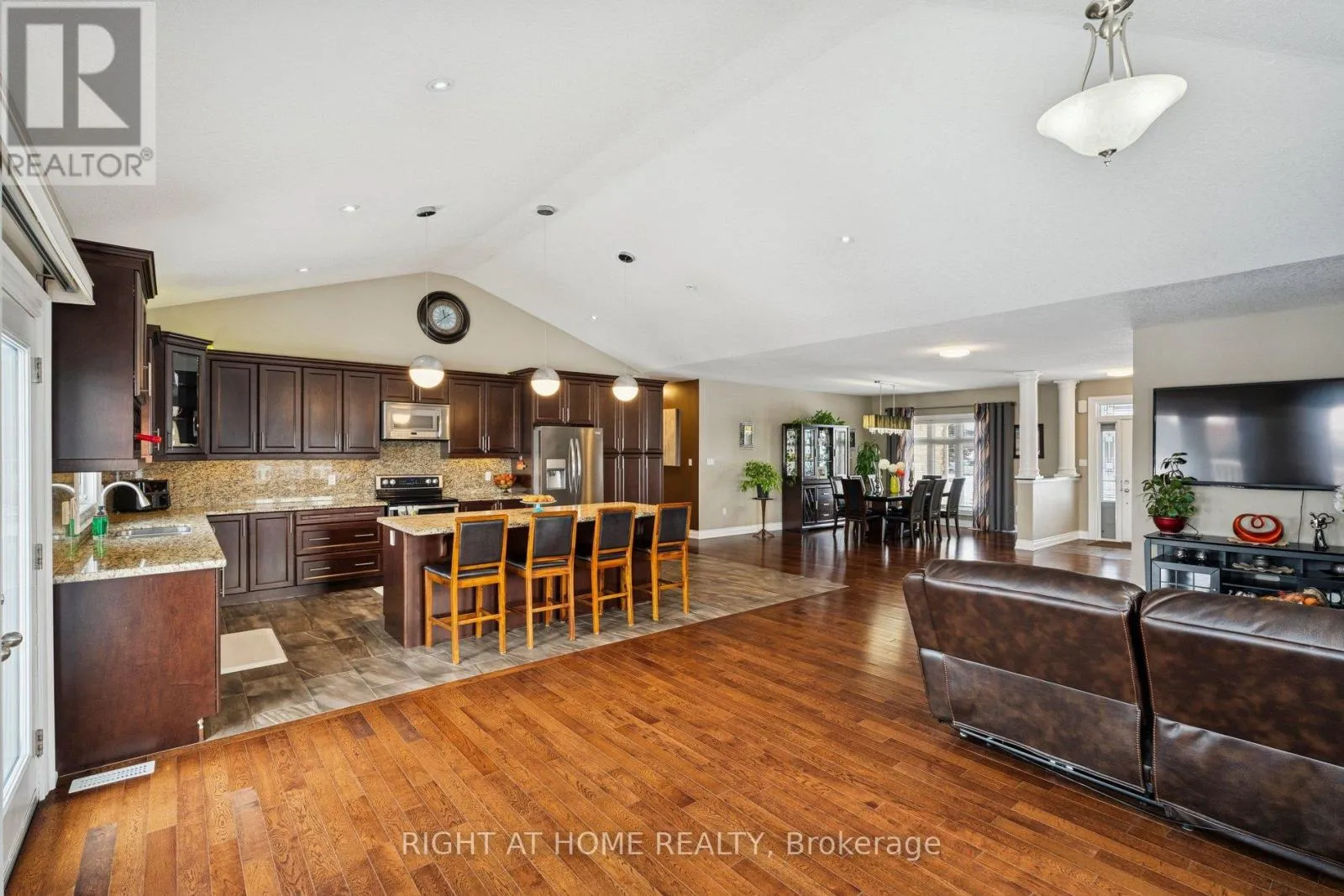 Cross Streets: 10th Side Rd / Brolley. ** Directions: E. Welcome to an extraordinary custom-built bungalow offering nearly 5,000 sq. ft. of impeccably finished living space, set in an exclusive neighborhood of just 14 distinguished properties. This home is a rare blend of elegant, thoughtful design, and, resort-inspired living. From the moment you enter, you will be wowed by the striking vaulted ceiling, and the luxurious heart of the home. The gourmet custom kitchen is appointed with premium stainless-steel appliances, granite countertops, a large statement island, and elegant bay windows that bathe the space in natural light. The seamless flow into the formal dining room and sophisticated living room is designed for both grand entertaining and refined everyday living. The master bedroom is a private sanctuary, featuring direct access to an expansive deck overlooking the meticulously landscaped grounds. Step outside to your own secluded oasis - framed by mature spruce trees for exceptional privacy - complete with a heated saltwater pool and generous entertaining spaces designed for unforgettable gatherings or serene relaxation. The fully finished walk-out lower level, with its own private entrance, elevates this home's versatility and value. A stunning custom-built bar anchors the space, creating an upscale entertainment lounge atmosphere. With its expansive layout, this level offers outstanding potential for a luxury in-law suite, multi-generational living, or a 3-bedroom income-generating suite - an exceptional opportunity for additional revenue without compromising privacy. Every detail of this private resort reflects quality craftsmanship, and prestige. It is a gem that masterfully blends luxury and sensibility. Add to that the investment potential, and this in indeed one remarkable home. (id:27476)
