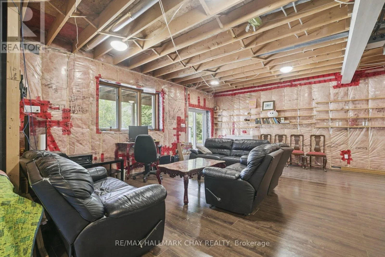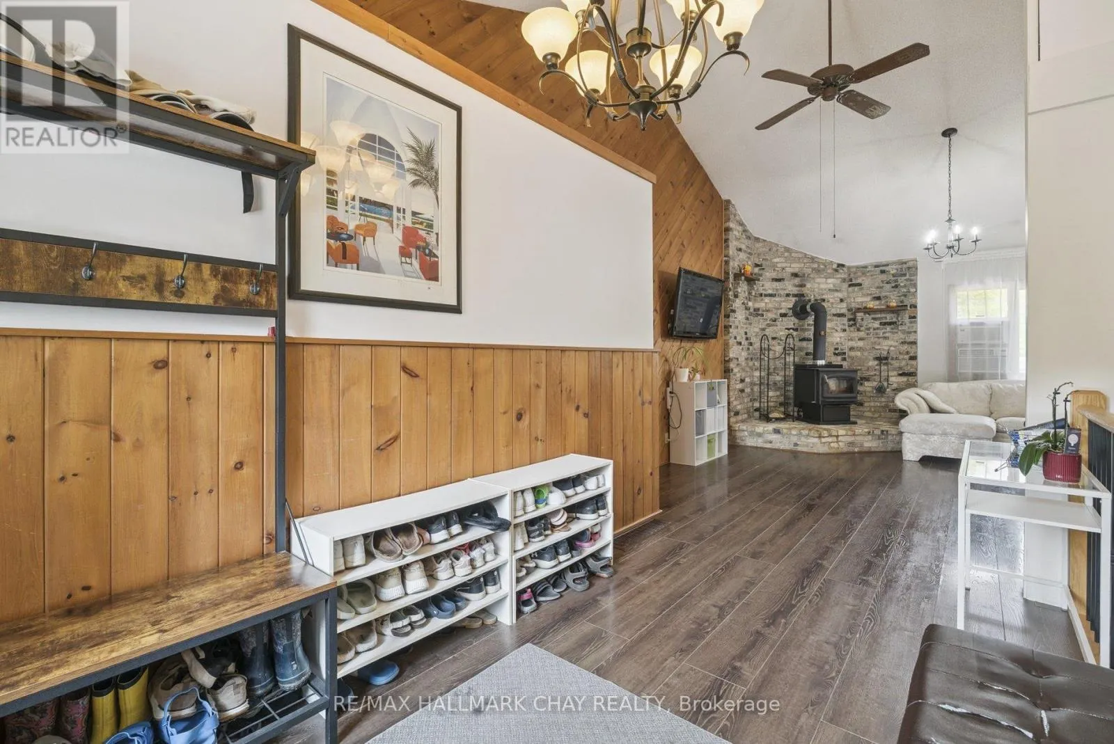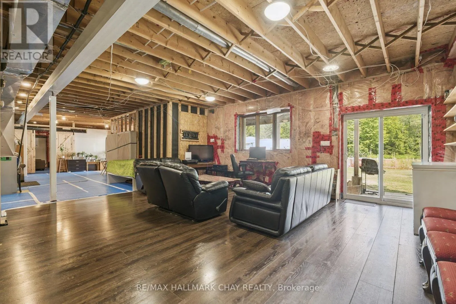 Cross Streets: Hw 90/County Rd 10 Before 20th St. ** Directions: Hwy 90/Cty Rd 10 before 20th Sd Rd. Rare 1.84-Acre Bungalow Offering Space, Privacy, And Outstanding Future PotentialSet On A Sprawling 200 X 400 Ft Lot In The Heart Of Peaceful Essa Township, This Exceptional Property Delivers The Kind Of Space And Opportunity That Is Increasingly Hard To Find. Enjoy The Freedom Of Nearly Two Acres Of Land While Remaining Just Minutes To Schools, Hospital, Shopping, Golf, And The Scenic Nottawasaga River Trail.Surrounded By Mature Trees, The Home Offers A Private, Estate-Like Setting With An Expansive Wrap-Around Deck Ideal For Entertaining, Family Gatherings, Or Quiet Evenings Outdoors. An Extra-Wide Driveway, Metal Roof, And Oversized Two-Car Garage With Loft Or Lift Potential Provide Practicality And Room To Grow.Inside, The Open-Concept Main Floor Features Vaulted Ceilings, Warm Wood Accents, Laminate Flooring, And A Cozy Wood-Burning Fireplace That Anchors The Living Space. The Bright Kitchen With Eat-In Area And Enclosed Porch Walkout Seamlessly Connects Indoor And Outdoor Living. The Primary Suite Offers A Walk-In Closet, Five-Piece Semi-Ensuite, And A Private Deck Walkout Overlooking The Grounds. Three Additional Bedrooms-Including One With Laundry And Walkout-Complete The Level.The Partially Finished Basement Boasts Approximately 10-Foot Ceilings, Three Separate Entrances, And Direct Garage Access-An Ideal Layout For An In-Law Suite, Rental Opportunity, Or Multi-Generational Living.With Essa Zoning Allowing Up To Two Additional Residential Units (ARUs), Subject To Municipal Approvals, This Property Presents Exceptional Upside For Those Seeking To Create Value, Expand Living Options, Or Invest In A Versatile Rural Holding. A Truly Unique Opportunity Offering Land, Lifestyle, And Long-Term Potential-All Within Easy Reach Of Everyday Amenities. (id:27476)