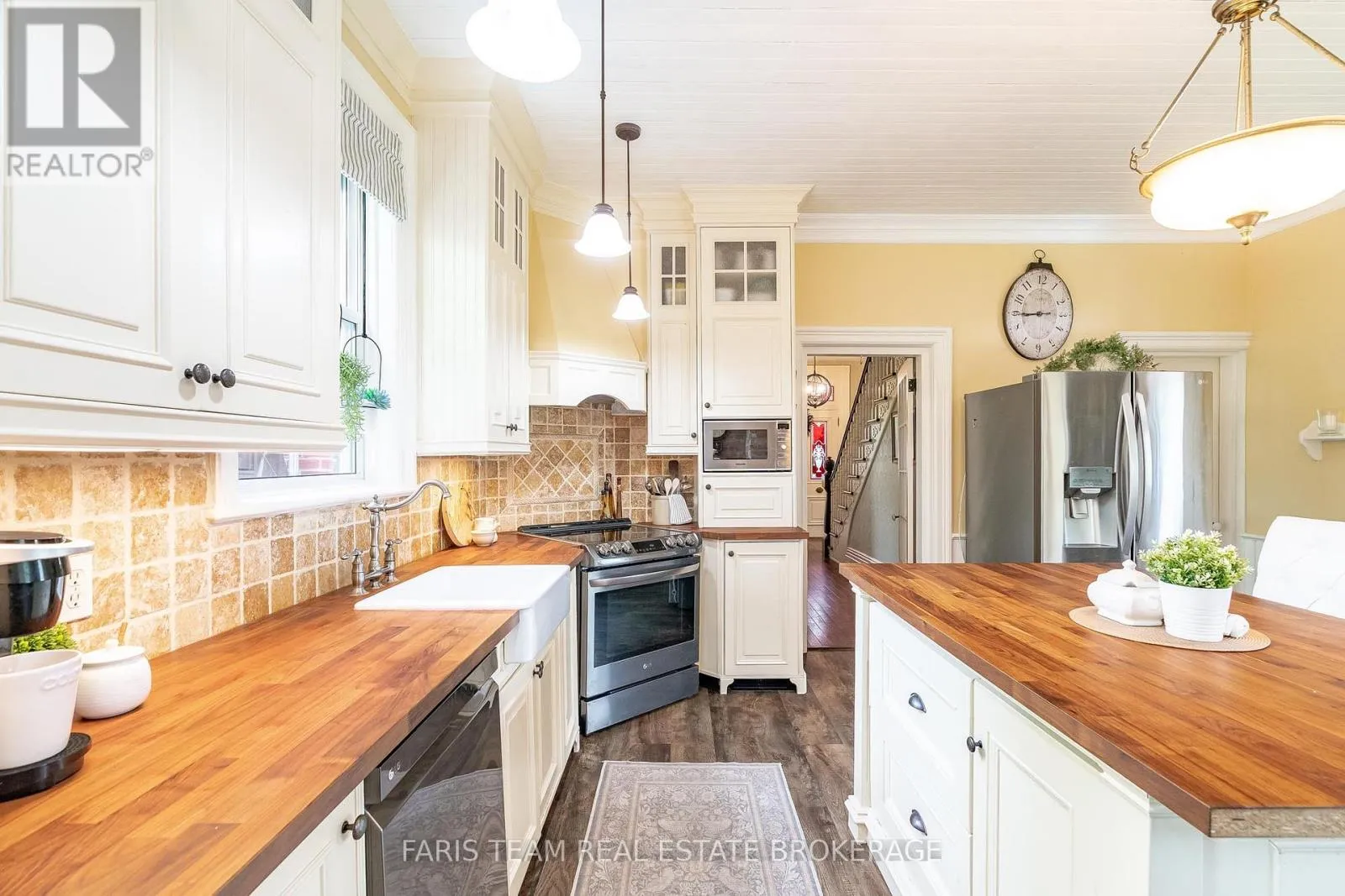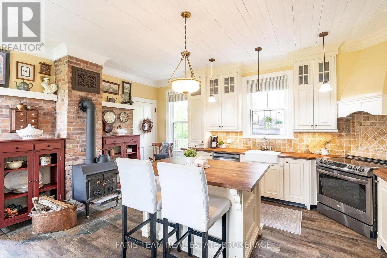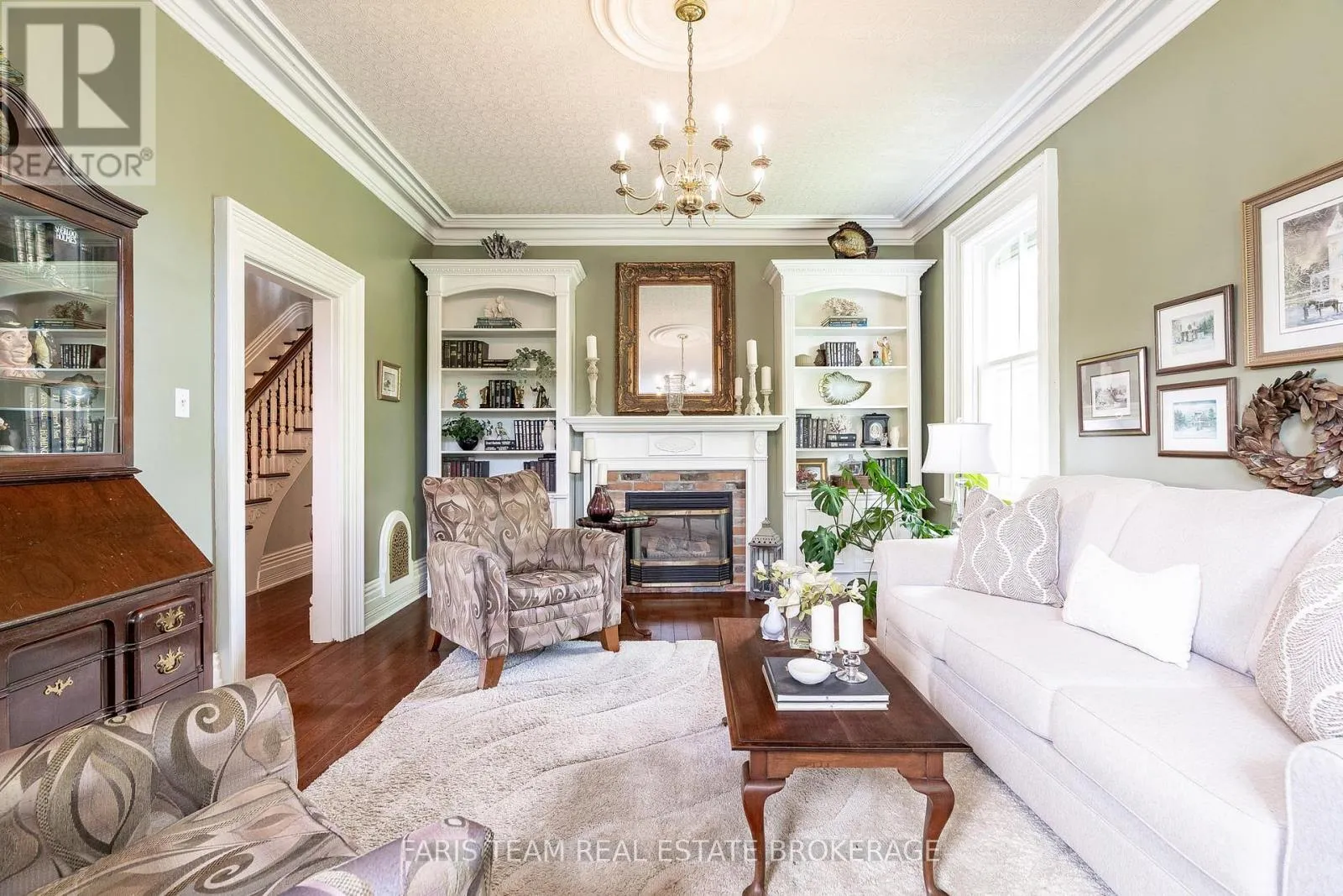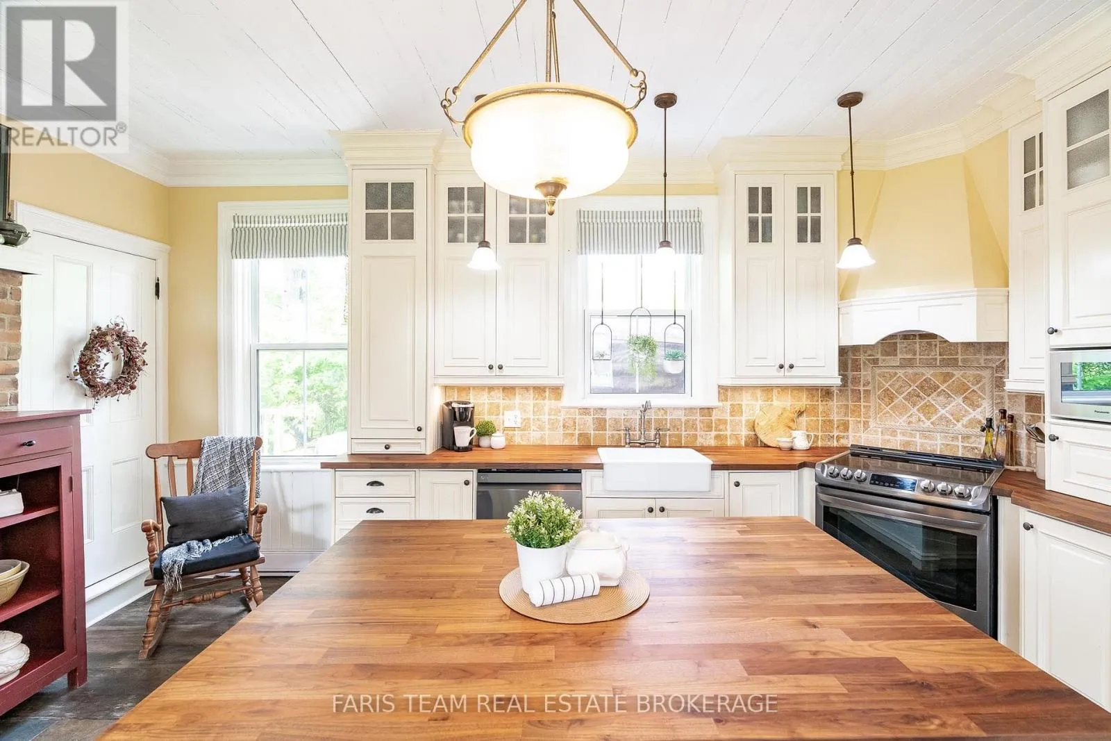 5th Side Rd/County Rd 56 Top 5 Reasons You Will Love This Home: 1) Venture into a piece of history with this timeless century home, originally built in 1883, featuring beautifully preserved architectural details, including wainscoting, crown moulding, ceiling medallions, and a striking cranberry-stained glass front door 2) Designed for elegant entertaining, the home delivers formal dining and living spaces, with the living room anchored by custom white built-ins and a cozy fireplace that invites warm gatherings 3) The main level combines heritage charm with thoughtful updates, including a convenient laundry area and a stylishly renovated bathroom complete with a walk-in shower, updated tile work, and classic wainscoting 4) At the heart of the home, the kitchen impresses with tall cabinetry that reaches the high ceilings, a generous island, stainless steel appliances, and the rustic touch of a wood stove for added warmth and character 5) Escape to your own private outdoor sanctuary in the beautifully landscaped backyard, featuring two gazebos and lush greenery, all tucked away just minutes from the hospital and everyday amenities including the Nottawasaga Inn, golf courses, Walmart, grocery stores, shops, restaurants, and a short drive to Highway 400. 2,359 above grade sq.ft. plus a crawlspace. (id:27476)