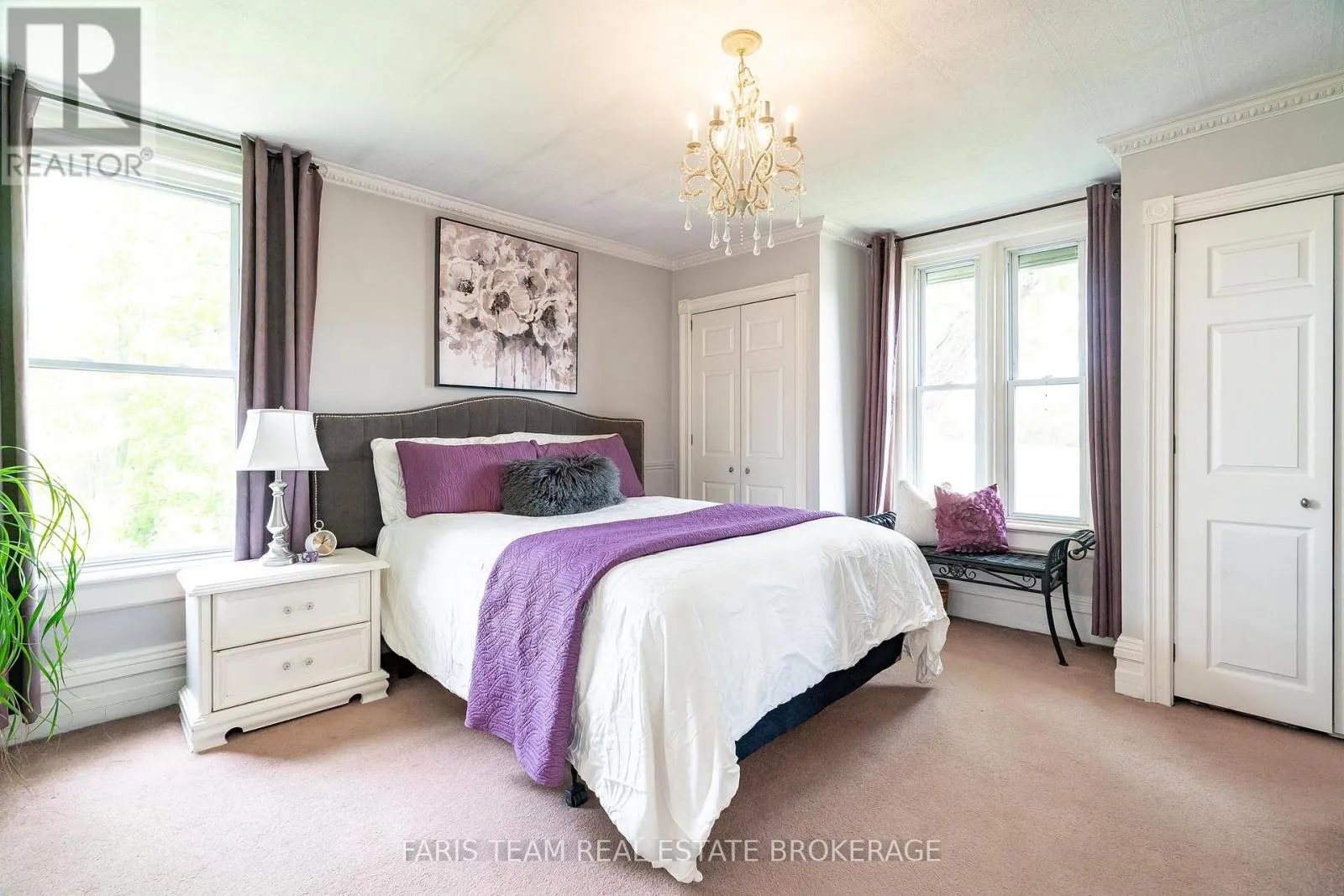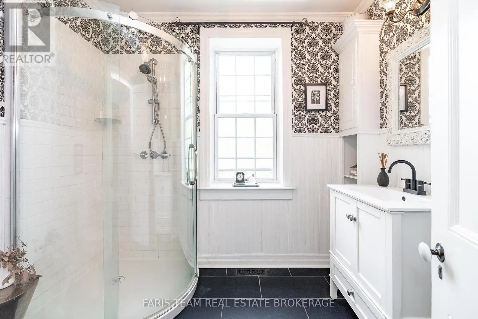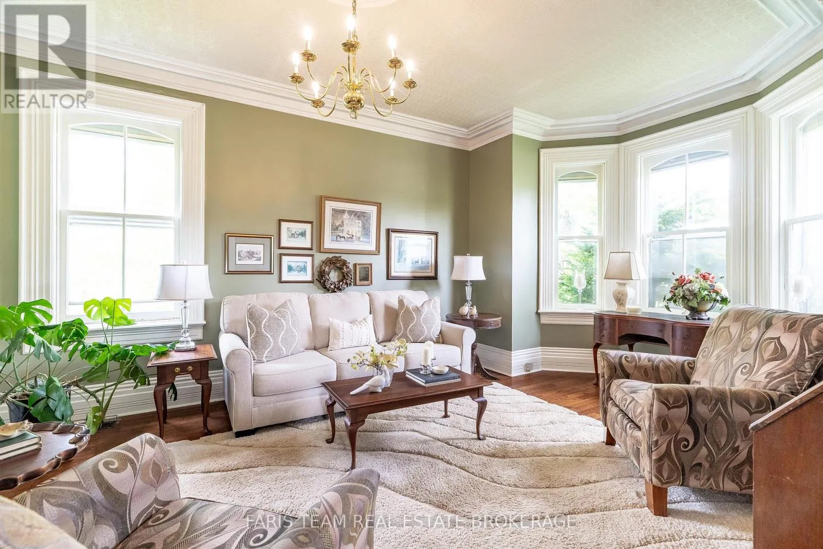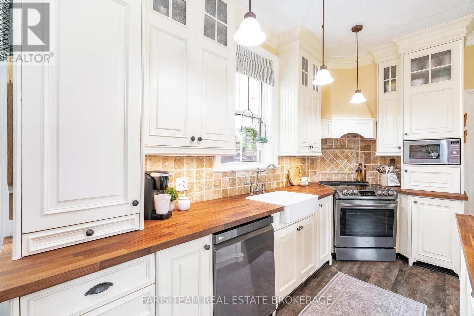 5th Side Rd/County Rd 56 Top 5 Reasons You Will Love This Home: 1) Venture into a piece of history with this timeless century home, originally built in 1883, featuring beautifully preserved architectural details, including wainscoting, crown moulding, ceiling medallions, and a striking cranberry-stained glass front door 2) Designed for elegant entertaining, the home delivers formal dining and living spaces, with the living room anchored by custom white built-ins and a cozy fireplace that invites warm gatherings 3) The main level combines heritage charm with thoughtful updates, including a convenient laundry area and a stylishly renovated bathroom complete with a walk-in shower, updated tile work, and classic wainscoting 4) At the heart of the home, the kitchen impresses with tall cabinetry that reaches the high ceilings, a generous island, stainless steel appliances, and the rustic touch of a wood stove for added warmth and character 5) Escape to your own private outdoor sanctuary in the beautifully landscaped backyard, featuring two gazebos and lush greenery, all tucked away just minutes from the hospital and everyday amenities including the Nottawasaga Inn, golf courses, Walmart, grocery stores, shops, restaurants, and a short drive to Highway 400. 2,359 above grade sq.ft. plus a crawlspace. (id:27476)
