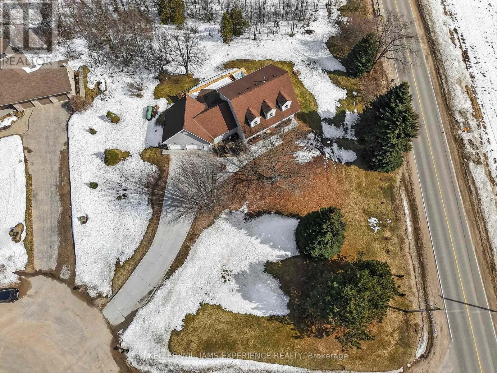 Side Rd 25 / Algonquin Heights Set on a picturesque 0.736-acre lot in Thornton, this spacious family home offers privacy, scenic views, and room for your family to truly settle in. Surrounded by rolling fields and mature greenery, the property provides a peaceful backdrop while still being close to town amenities. Inside, the home features 4+1 bedrooms and 4 full bathrooms, offering plenty of space for a growing family or multi-generational living. The living room is warm and inviting with a classic wood-burning fireplace, while the family room offers a second fireplace and a walkout to the 3-season sunroom, creating the perfect place to enjoy your morning coffee or unwind while taking in the views. The kitchen is thoughtfully designed with ample cabinetry, high-end appliances, and a pantry, along with a charming chalkboard wall to help keep the household organized. A formal dining room sits just off the kitchen, offering a dedicated space for family dinners, holiday meals, and larger get-togethers. A main floor bedroom provides excellent flexibility-ideal for guests, those who prefer to avoid stairs, or as a bright and inspiring home office overlooking the surrounding landscape. Upstairs, the oversized primary bedroom offers plenty of room to relax, complete with double closets and a recently renovated 4-piece ensuite featuring heated floors, a frameless glass shower, and dual shower heads. Two additional generously sized bedrooms share a well-appointed 3-piece bathroom, completing the upper level of this spacious family home. The lower level extends the living space with a large rec room, perfect for movie nights or family gatherings, along with a fifth bedroom and a generous 3-piece ensuite with heated floors, making it an excellent retreat for guests or teens. Step outside to a backyard designed for both relaxation and entertaining. Enjoy evenings in your swim spa overlooking open fields or host friends and family on the newer deck, all while taking in the peaceful rural setting. (id:27476)