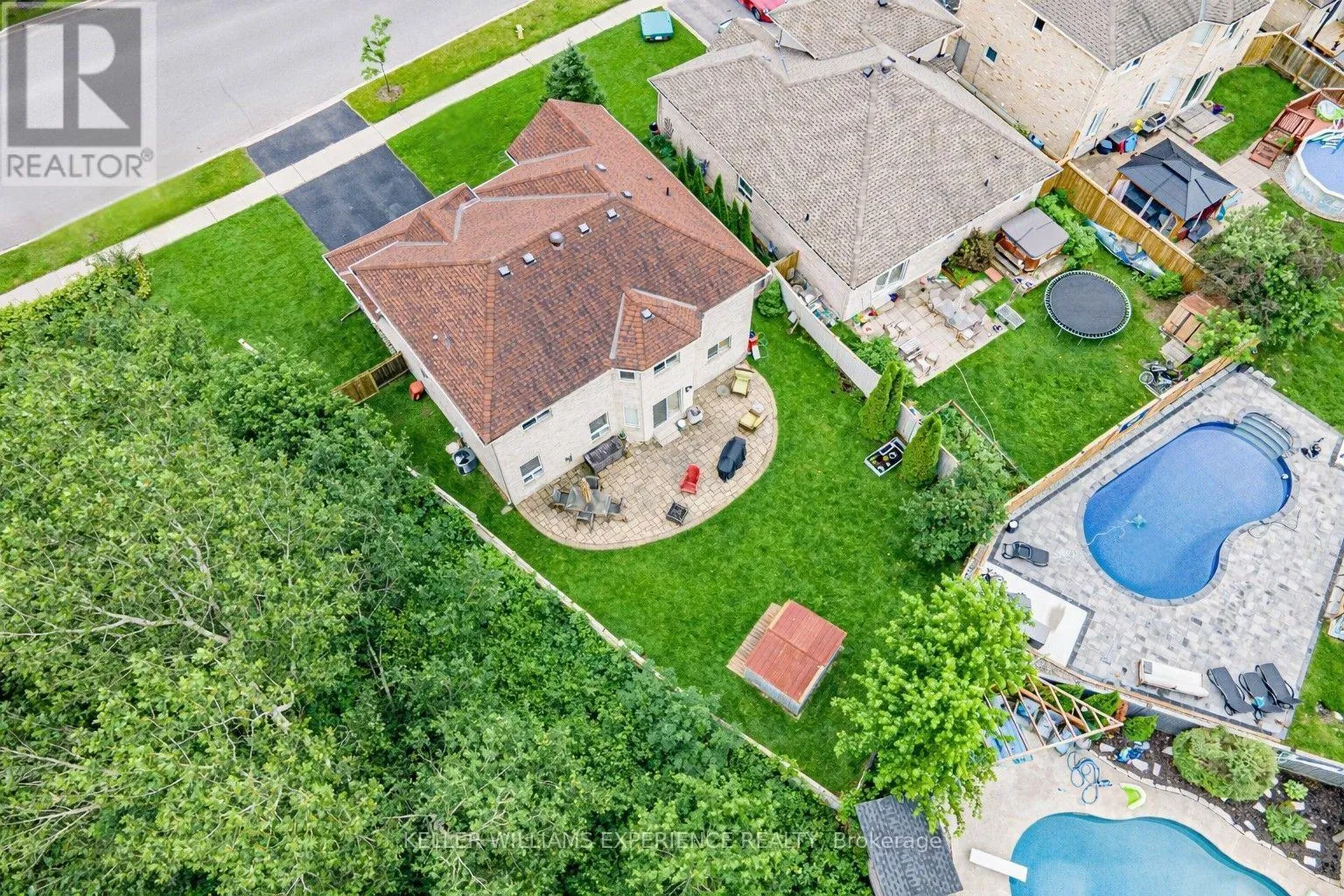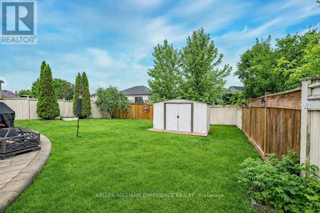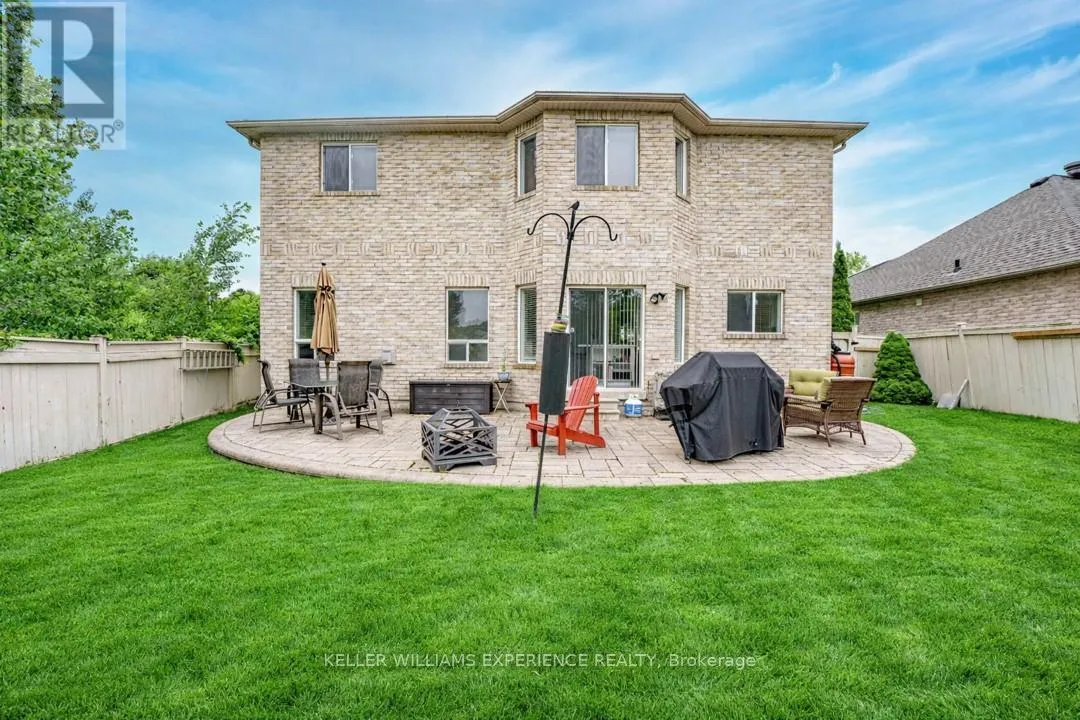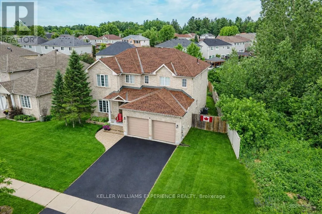 Cross Streets: 5th Line/Gold Park Gate. ** Directions: 5th Line to Gold Park Gate. Discover this exceptionally well-maintained, all-brick family home at 4 Gold Park Gate in Angus. Boasting over 2800 sq. ft. of fully finished living space on great lot. This spacious and bright home features a double-door entry, 9-ft ceilings, and a formal living and dining room with hardwood floors and pot lighting. The beautifully renovated eat-in kitchen (2022) showcases quartz counters, a stylish backsplash, new appliances, pot lighting, a breakfast bar, and a walkout to a stone patio and fenced yard with a garden shed. The cozy family room offers a gas fireplace and hardwood flooring. A main floor laundry with garage access and a powder room add convenience. Upstairs, the refinished primary suite includes a walk-in closet, an ensuite with a new vanity and shower, and a relaxing corner jet tub. Three additional generously sized bedrooms complete the second floor. The finished basement features a large rec room, a 2-pc bath, and ample storage. Upgrades include new garage doors (2021), central air (2024), and a water softener. (id:27476)