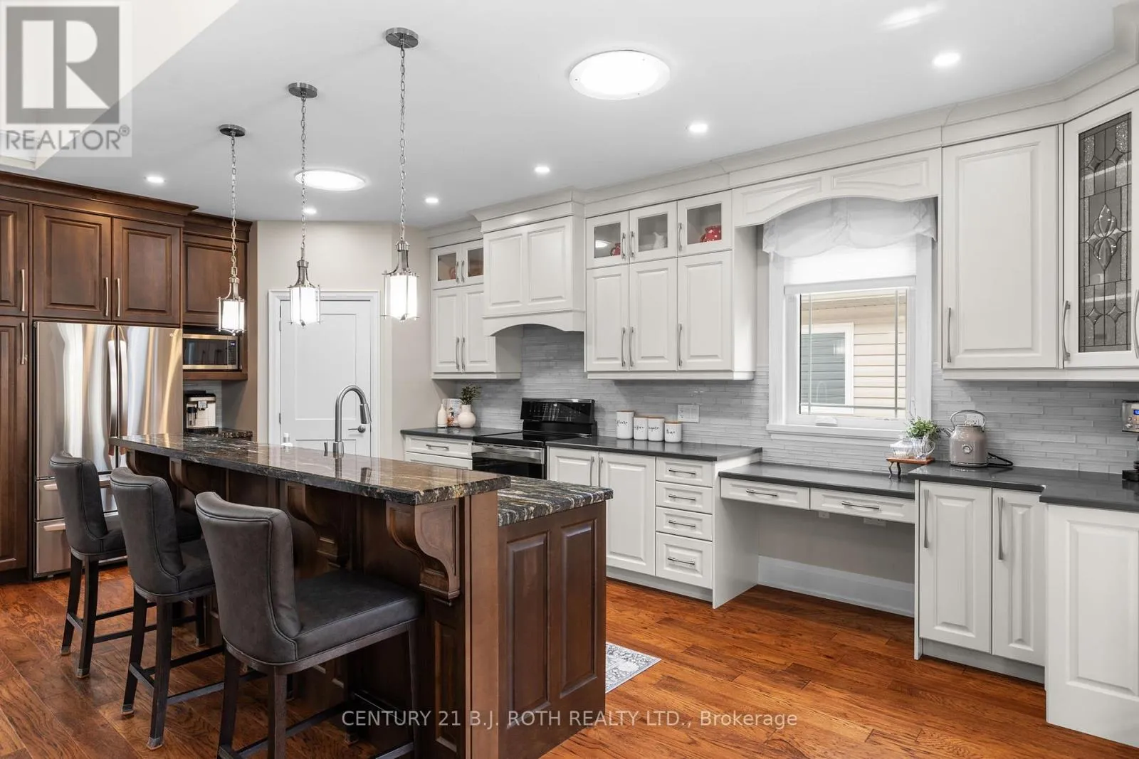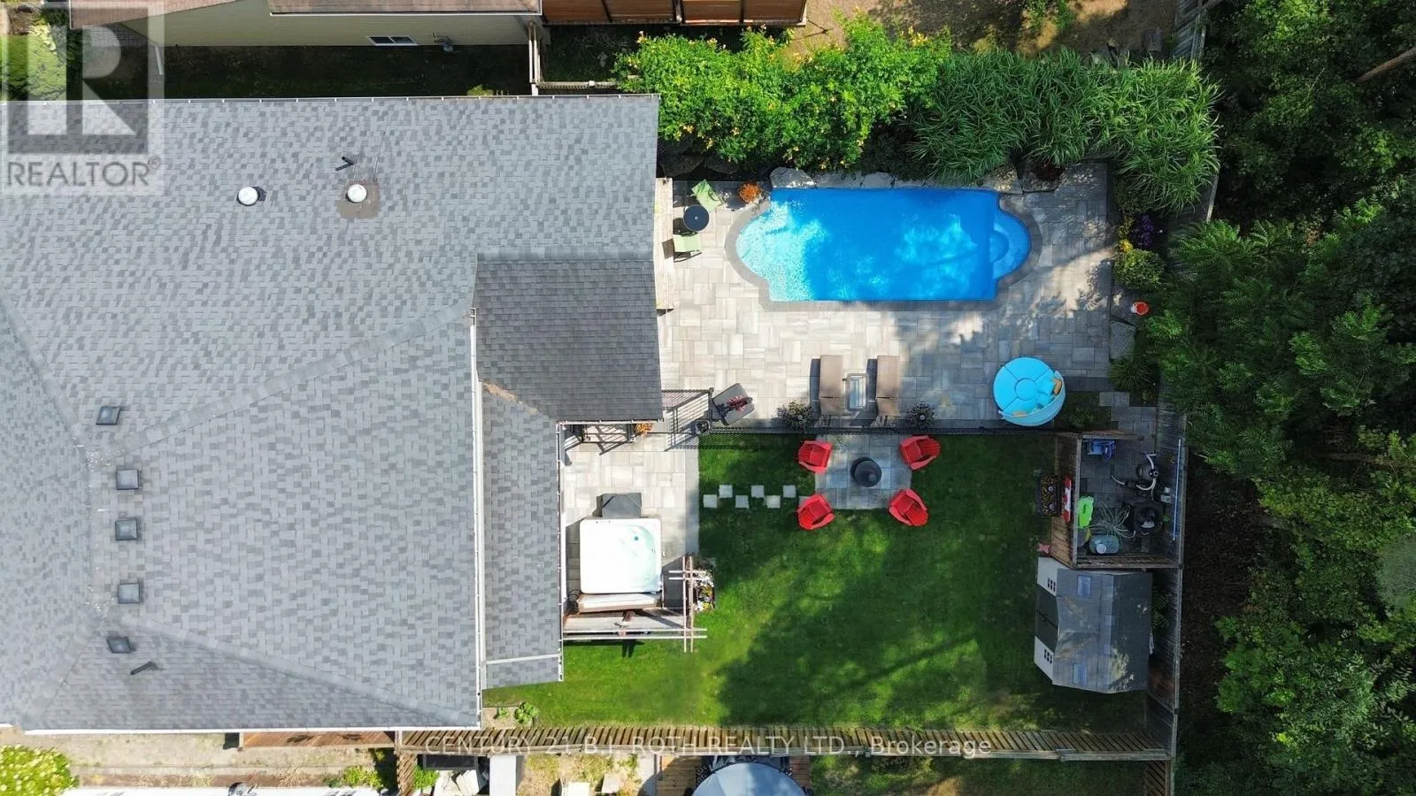 Mill St To Margaret To Osborn Welcome to a truly one-of-a-kind, custom-built home offering the perfect blend of luxury, functionality, and multi-generational living complete with your own private backyard retreat and stunning in-ground pool. Offering over 4,000 sq.ft of immaculately finished living space, this property is packed with thoughtful details at every turn. From the moment you arrive, you'll appreciate the spacious double car garage with soaring ceilings and an 8-car driveway perfect for families, guests, and entertaining. Inside, you're welcomed by engineered hardwood floors throughout the main and upper levels, elegant wainscoting, crown moulding, bell arch details, and 9 ft ceilings throughout, with even higher ceiling heights in select areas. The open concept kitchen and dining area is a showstopper, featuring stainless steel appliances, floor-to-ceiling custom two-tone cabinetry, granite countertops, a walk-in pantry, wine fridge, and wheelchair accessibility. The primary bedroom is conveniently located on the main floor with a generous walk-in closet and a luxurious en-suite boasting a floating soaker tub and stand-up shower. Upstairs offers two more spacious bedrooms, while the fully finished basement includes a large entertaining space, dedicated craft room, luxury laminate flooring, and coffered ceilings. Step outside to your beautifully landscaped, private backyard oasis overlooking mature trees complete with a large covered deck, in-ground pool, hot tub, and charming shed. This property also includes a full 1-bedroom apartment/in-law suite with a private entrance, terrace, contemporary kitchen, bathroom, furnace, A/C, and outdoor space perfect for multi-generational families, guests, or rental income. Homes like this are rare , don't miss your chance! (id:27476)