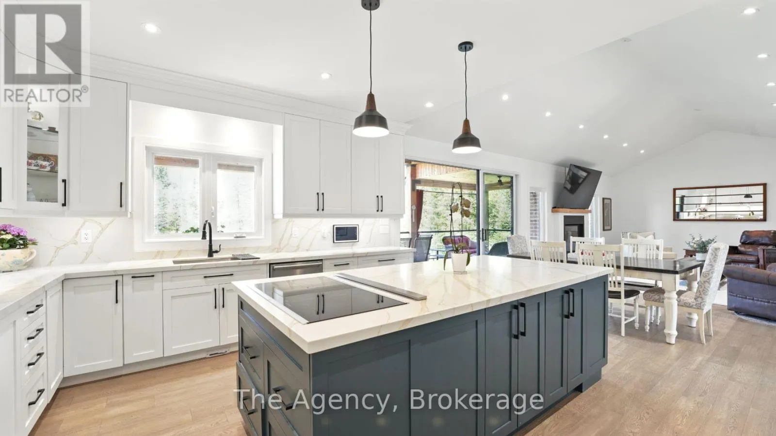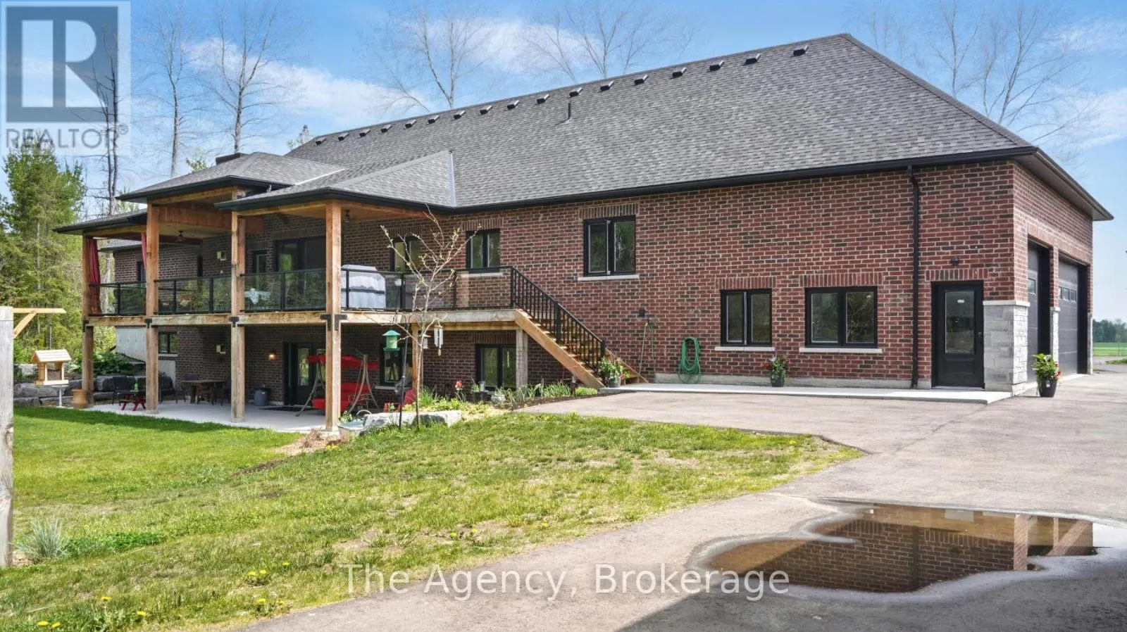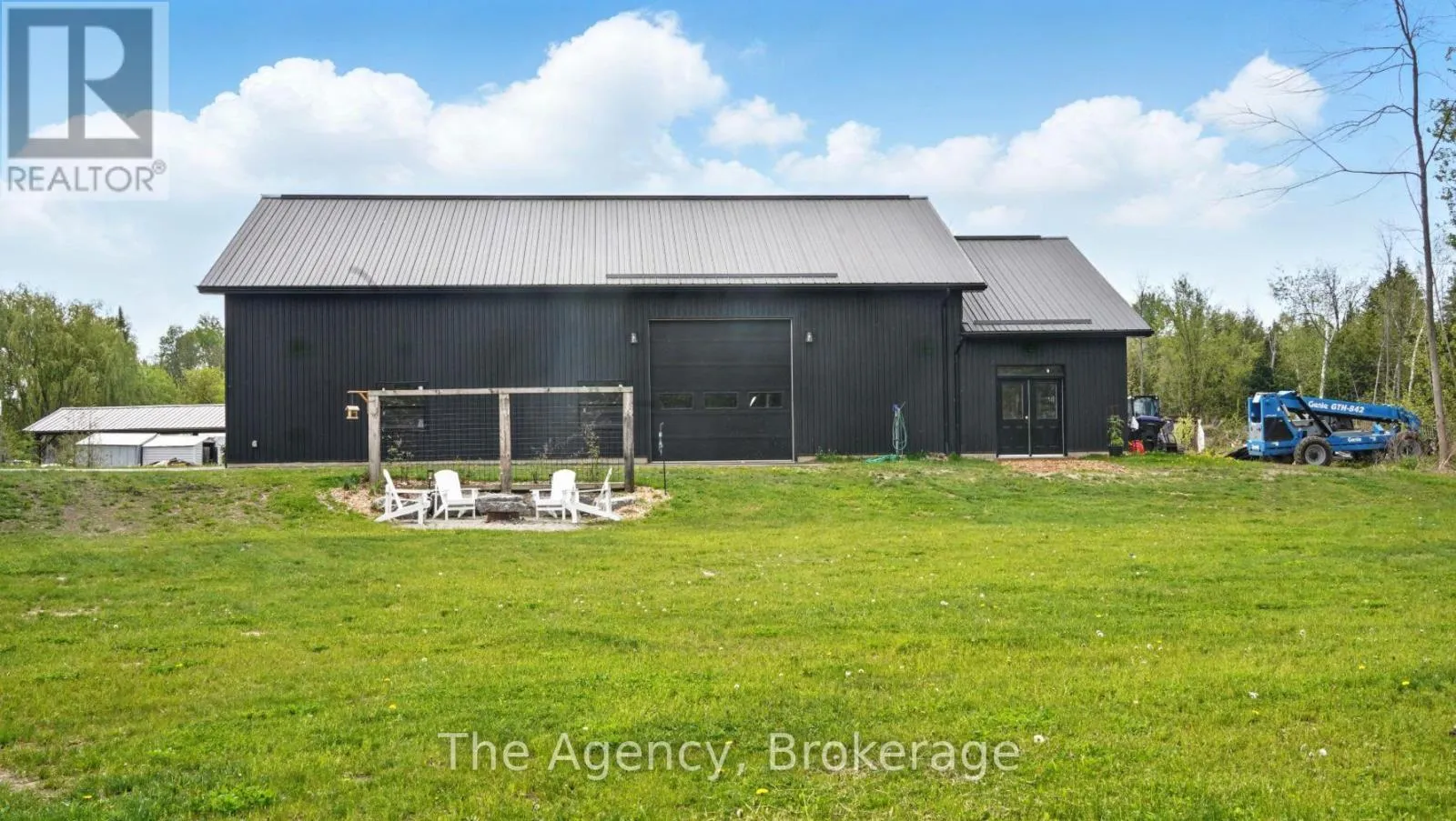 County Rd 21/ County Rd 10 Exceptional craftsmanship displayed in this true multigenerational estate on 10 acres in Essa, just minutes from Alliston. This full-brick home with Maybec siding offers thoughtful design and upscale finishes throughout. The main level features 3 bedrooms, 3 bathrooms (two 3-pc and one 4-pc), hardwood floors, and 9 ceilings. The vaulted-ceiling living room centers around a propane fireplace, while the chef's kitchen boasts Sezer stone countertops and premium appliances. The primary bedroom offers a coffered ceiling, an ensuite bath, and casement windows with retractable hideaway screens. Enjoy covered front and back outdoor living areas, both lined in red fir tongue-and-groove, with BBQ and exterior TV hookups. A private granny suite with a mini kitchen is ideal for extended family or guests. The walk-out basement is fully finished with 2 more bedrooms, a 2-pc and 3-pc bath, a full kitchen, laundry, a great room with a propane fireplace, and a built-in office. In-floor heating runs in 2 zones with a propane boiler. A 3-car garage features heated floors and direct access to the basement. Additional features include a 200-amp panel, water softeners, a propane furnace with a fresh air handler, a backup generator, and a septic system. The property also includes a 74x40 detached shop with two 14 x 14 overhead doors, metal roof and siding, insulated and lined metal interior, LED hybay lighting, 16 x 40 office, rough-in 3-pc bath, septic, water, and in-floor heat pipes. The fully paved driveway and drilled well complete this turn-key rural retreat. This is a rare opportunity to own aturn-key rural estate with every amenity for comfort, privacy, and lifestyle. Don't miss it! (id:27476)