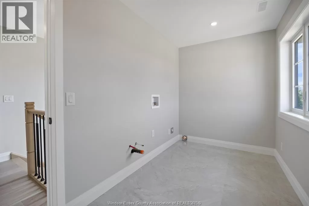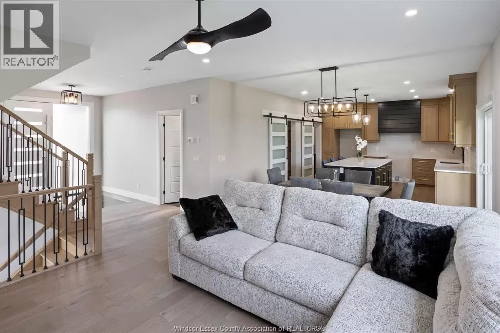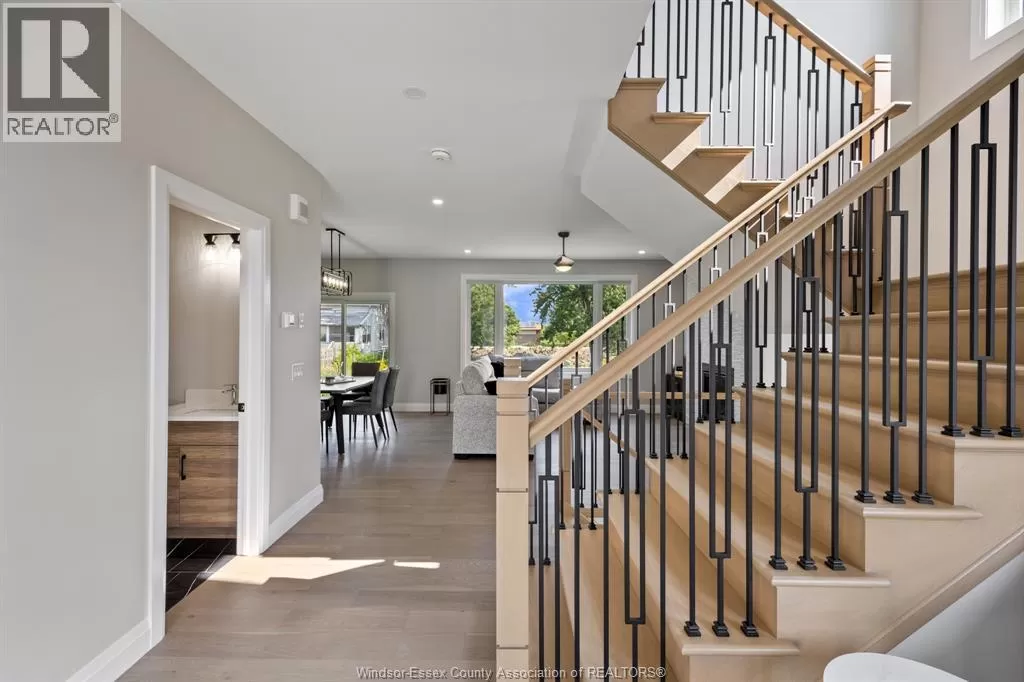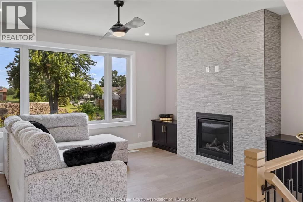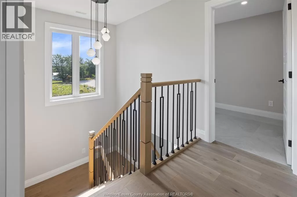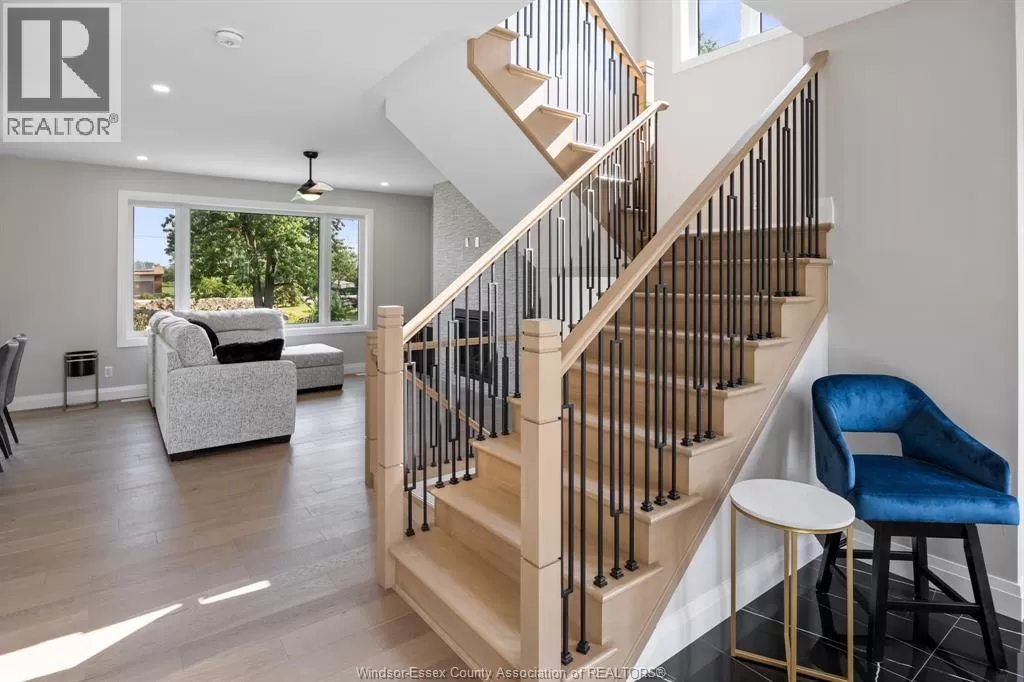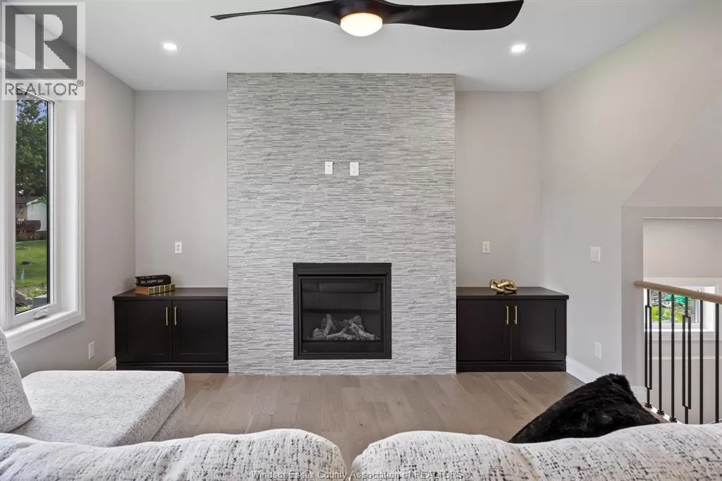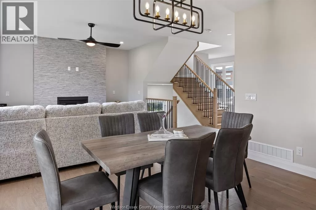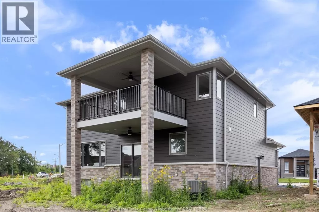 MAIDSTONE AVE. TO PETERS STREET (NEXT TO CANADIAN TIRE) TO BEAR STREET Builderâs model home by Bart DiGiovanni Construction in Essex Town Centre, ready to move in! This stunning 2-story home features 4 bedrooms, 2.5 baths, and a striking stone, brick, and hardboard façade. The main floor boasts 9â ceilings, a spacious great room with a gas fireplace, and an open-concept kitchen with ceiling-height cabinets, quartz countertops, an island, a walk-in butlerâs pantry and access to a covered patio. A mudroom is conveniently located at the daily entry. Upstairs, the hardwood staircase leads to 4 large bedrooms, including a primary suite with a walk-in closet, a covered balcony, and a luxurious ensuite with double sinks and a custom glass shower. The second floor also features a laundry room. Additional highlights include an insulated double garage with a side exit, a concrete driveway, and full basement. *BONUS Kitchen Backsplash and Composite Deck included plus 7-year Tarion warranty. (id:27476)